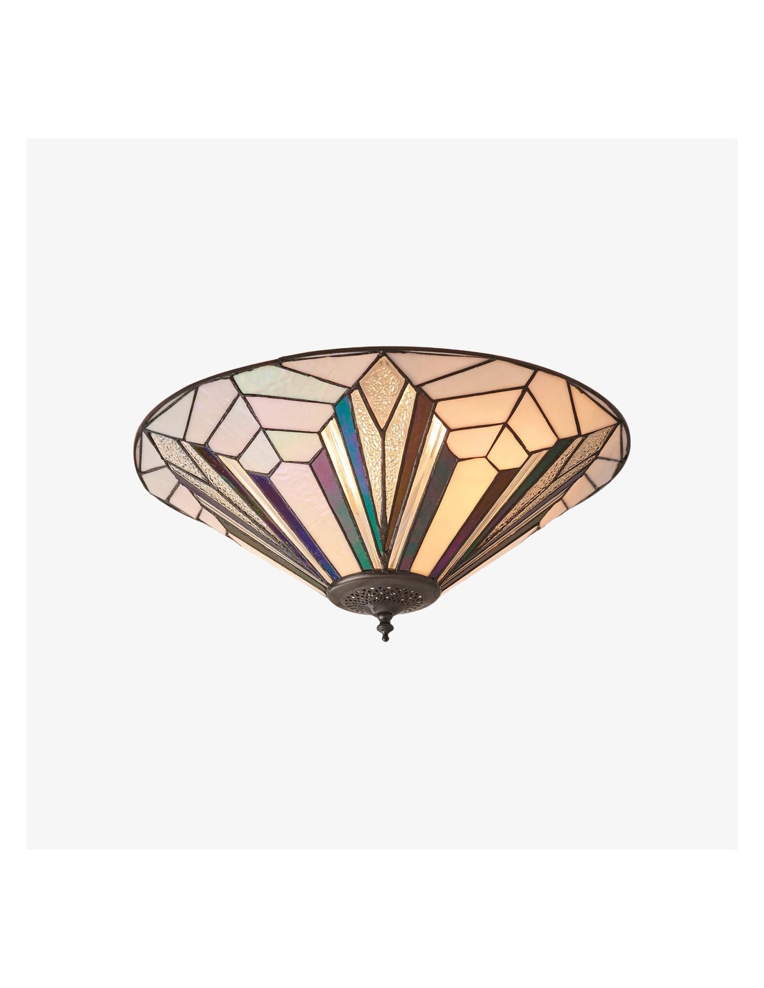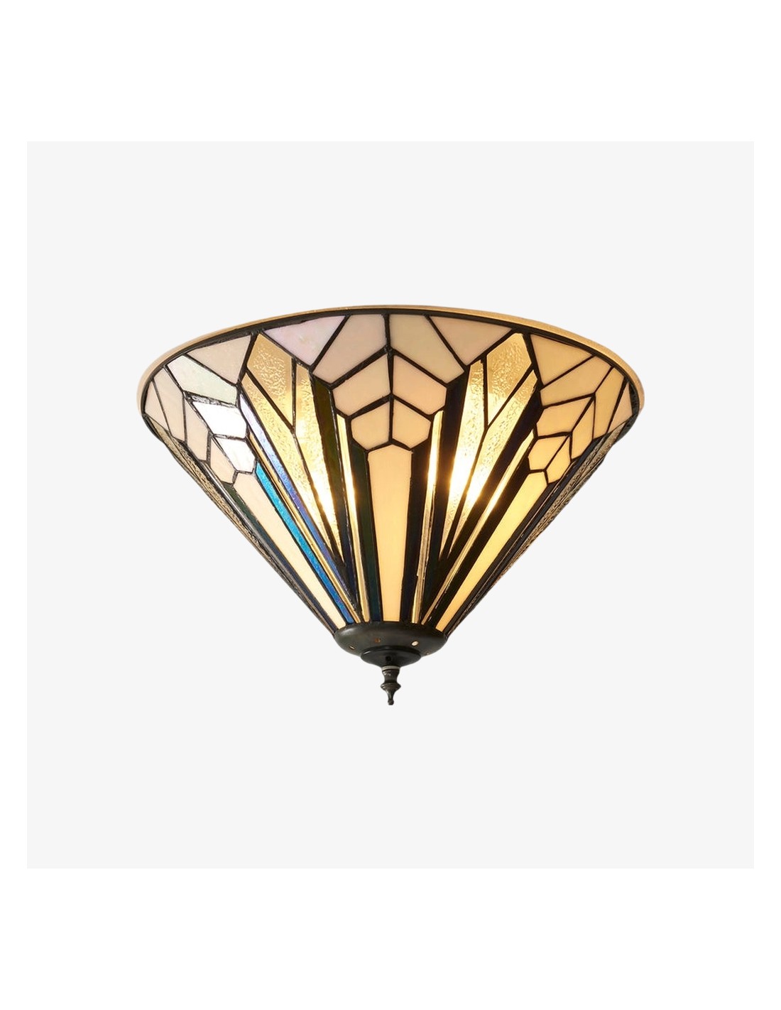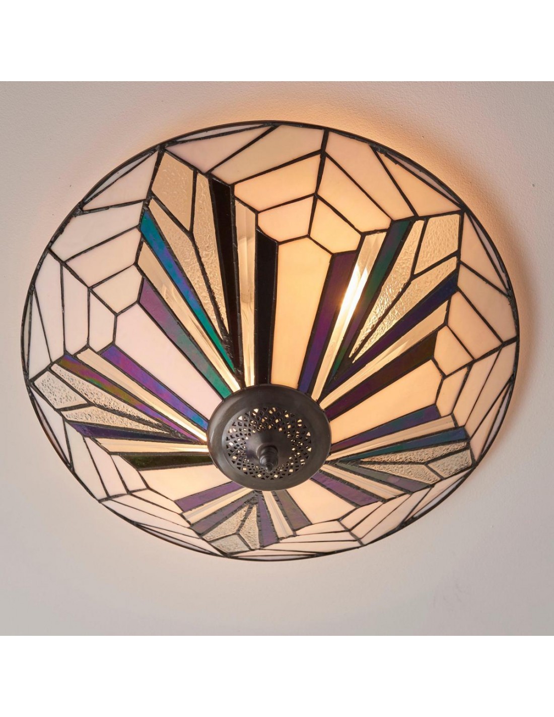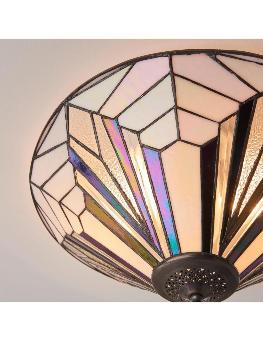 Questa plafoniera a filo è caratterizzata da pannelli in vetro lavorato a mano con texture trasparenti, bianco puro e vetro artistico iridescente. Il suo profilo sottile si adatta agli spazi moderni, conferendo un elegante tocco Art Déco a soggiorni, camere da letto, corridoi e altro ancora.