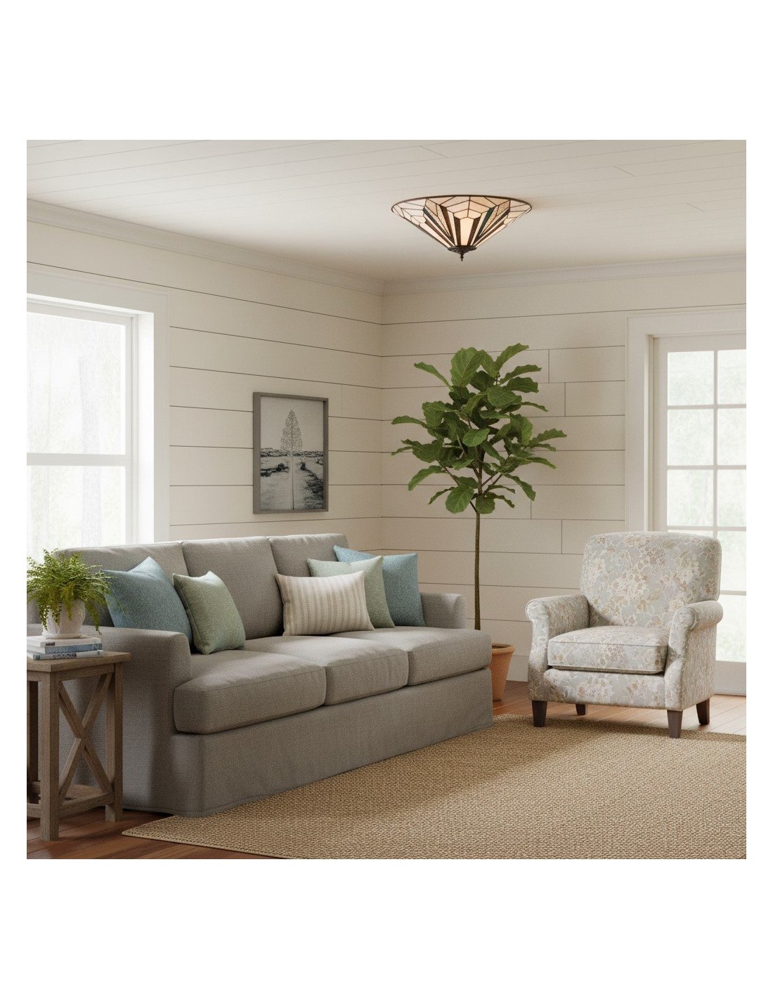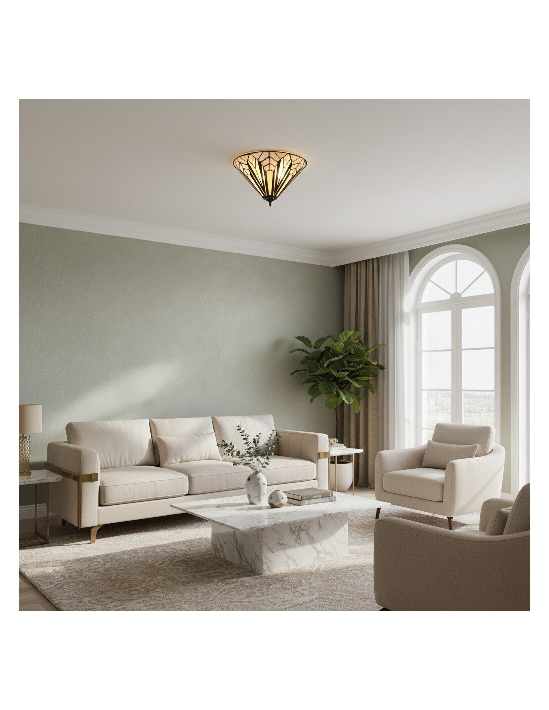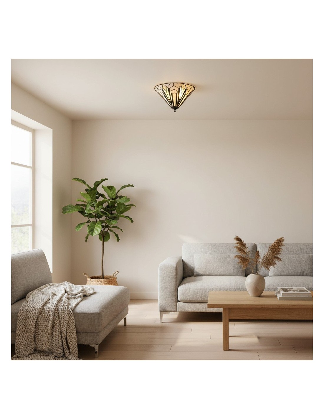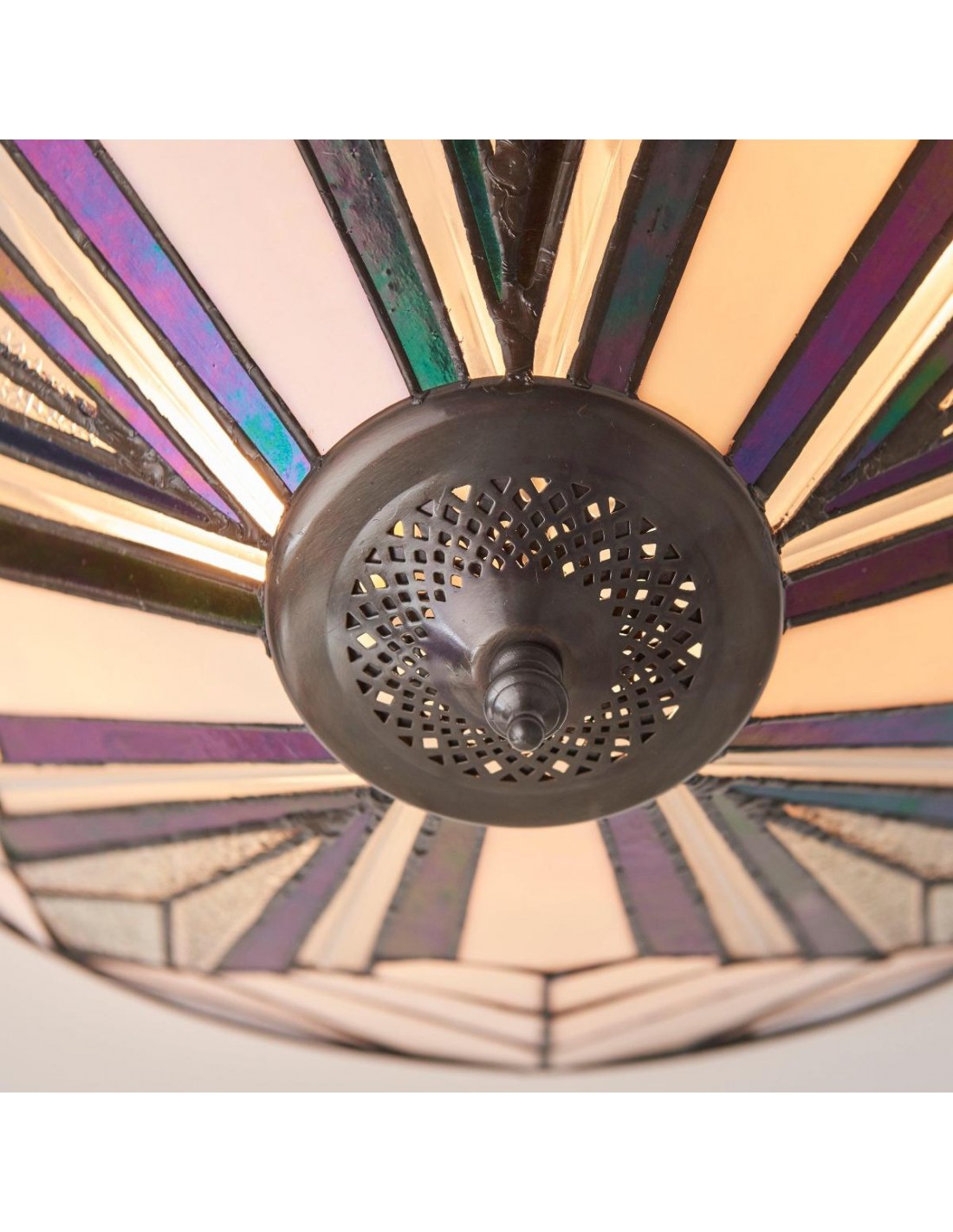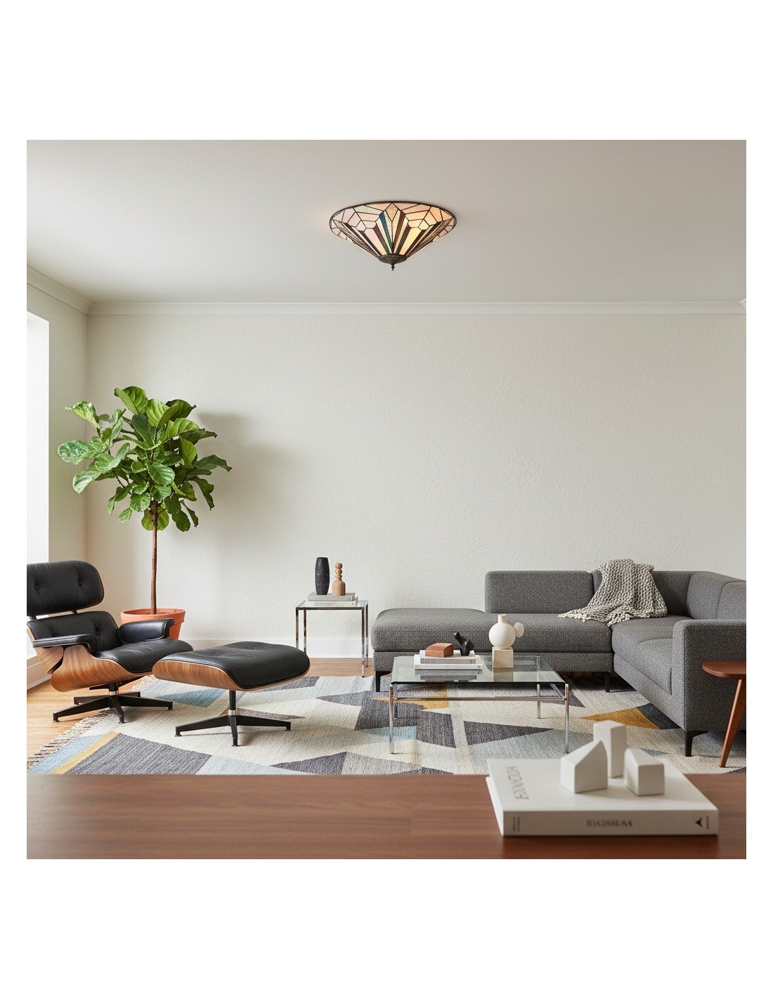 Questa plafoniera a filo è caratterizzata da pannelli in vetro lavorato a mano con texture trasparenti, bianco puro e vetro artistico iridescente. Il suo profilo sottile si adatta agli spazi moderni, conferendo un elegante tocco Art Déco a soggiorni, camere da letto, corridoi e altro ancora.