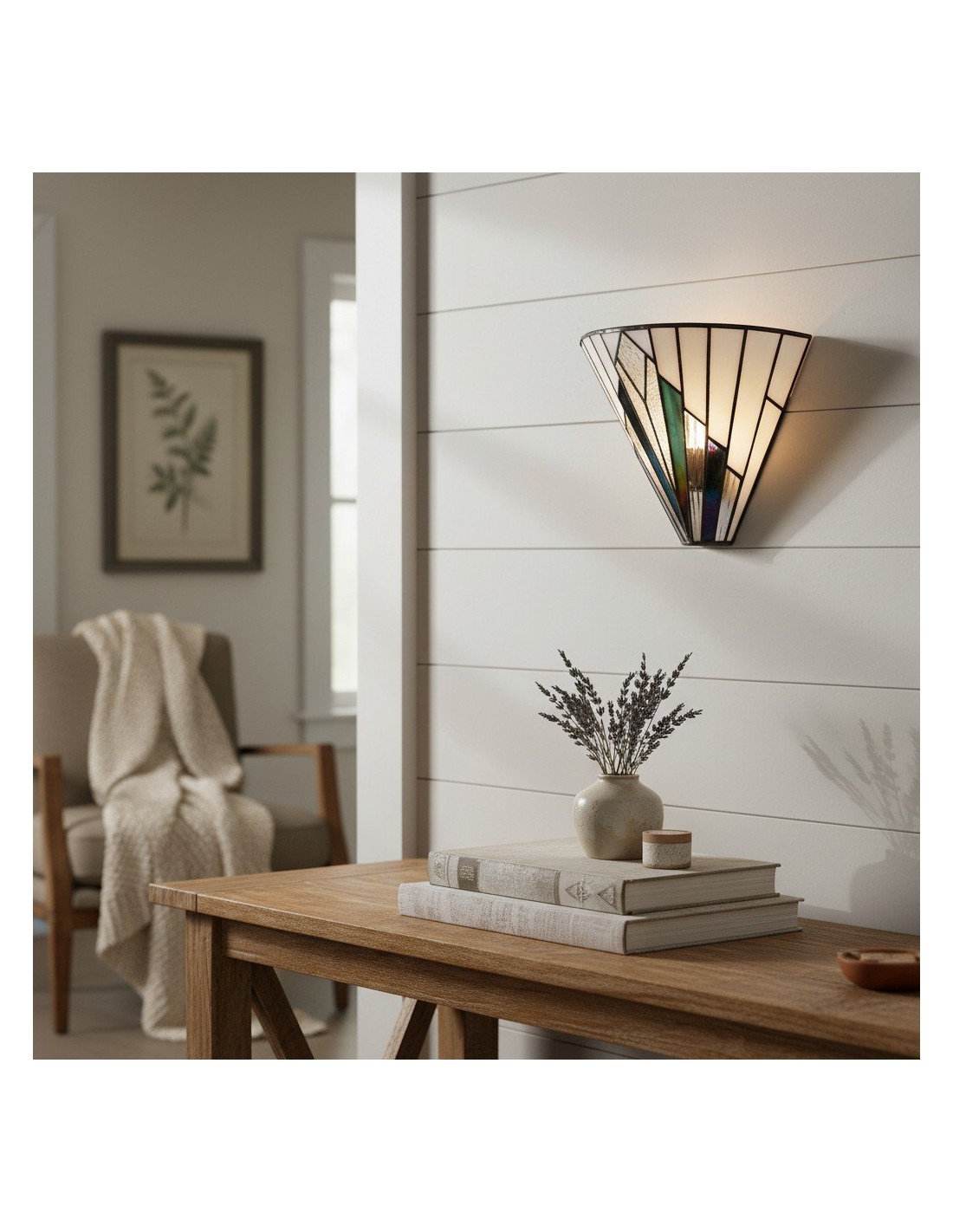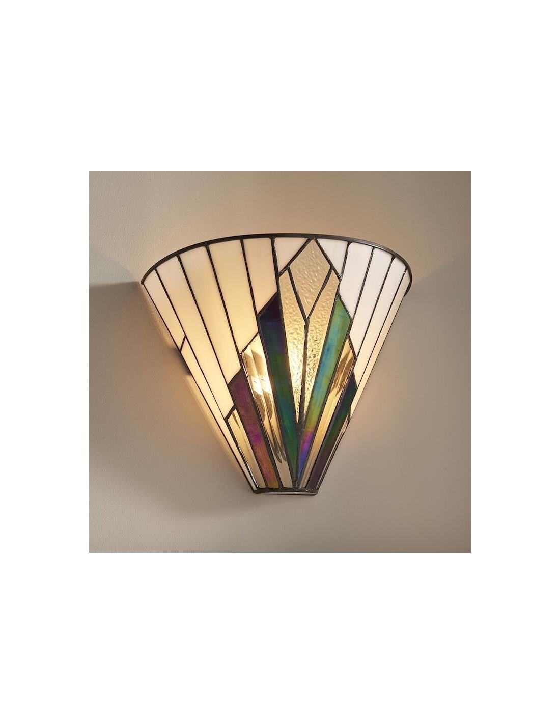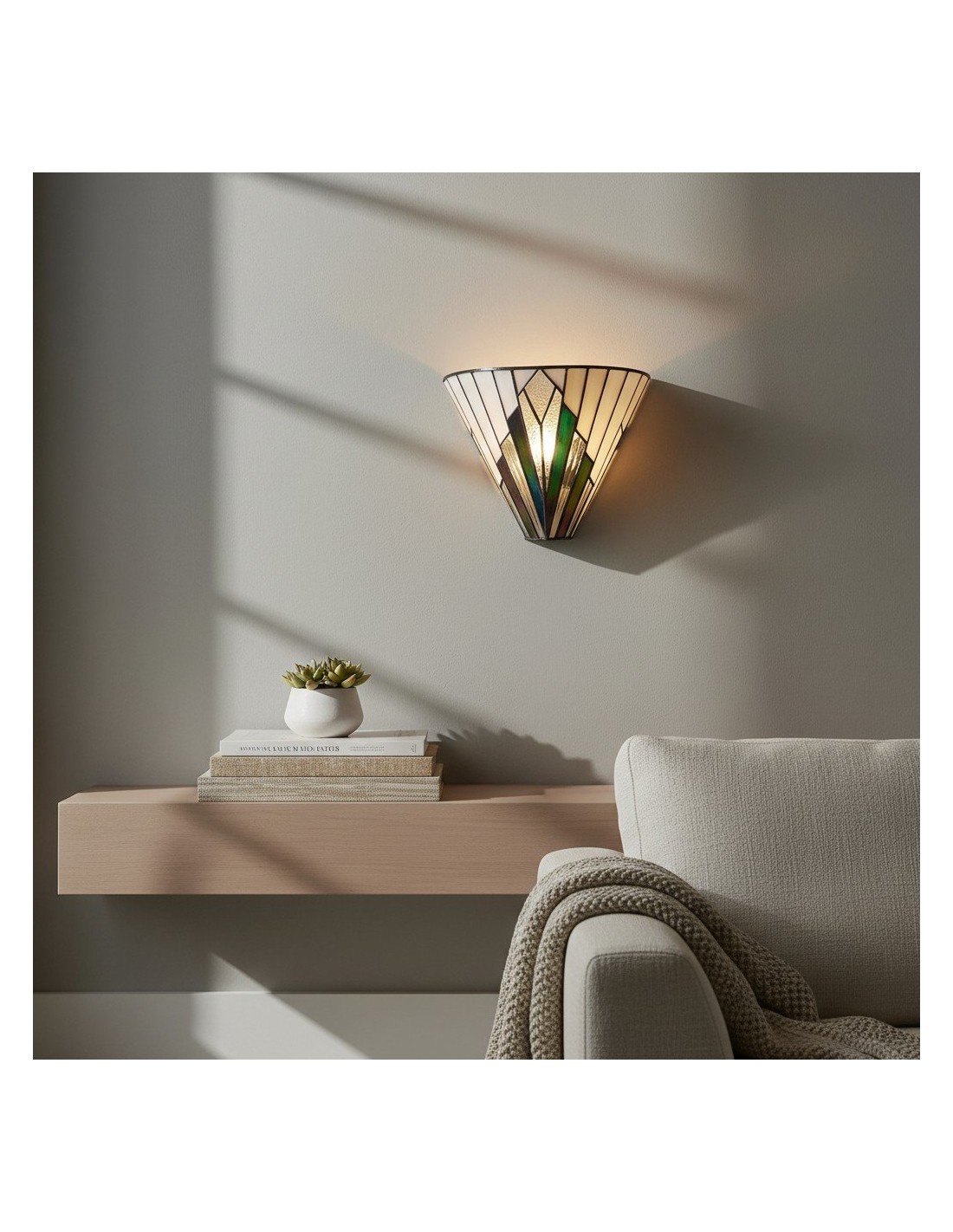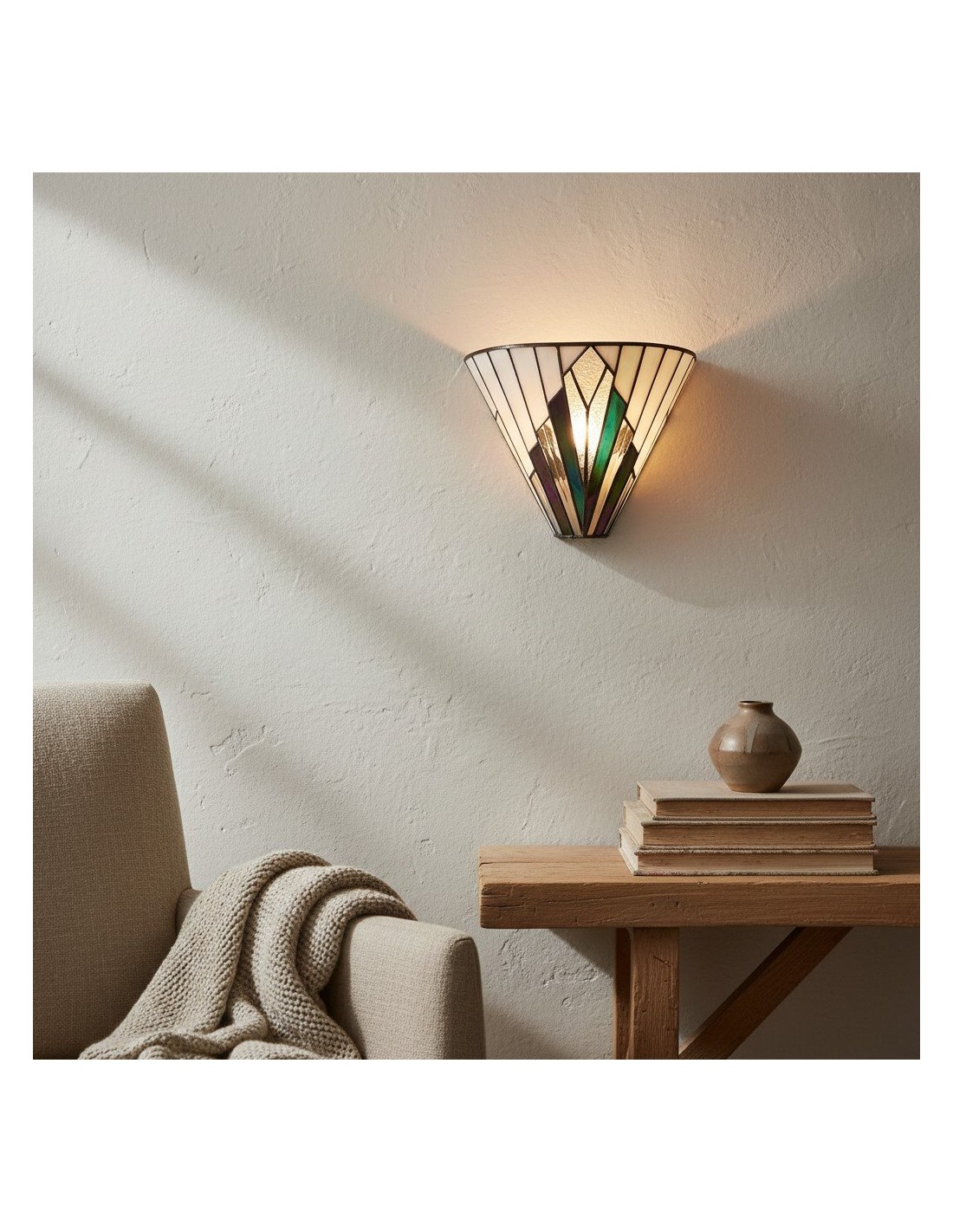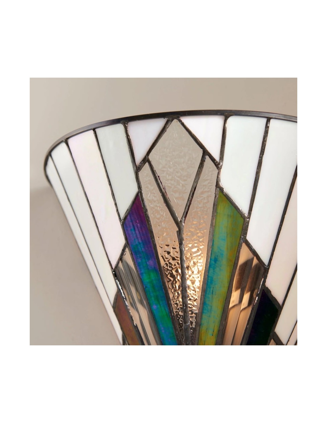 Scopri l'applique Astoria in stile Tiffany, un'elegante lampada da terra dal fascino sofisticato. Il suo sorprendente paralume a ventaglio è realizzato a mano in vetro artistico di alta qualità, ispirato alle audaci geometrie Art Déco. Emettendo una luce calda e avvolgente, questa applique aggiunge un tocco di glamour vintage a qualsiasi corridoio, soggiorno o camera da letto.