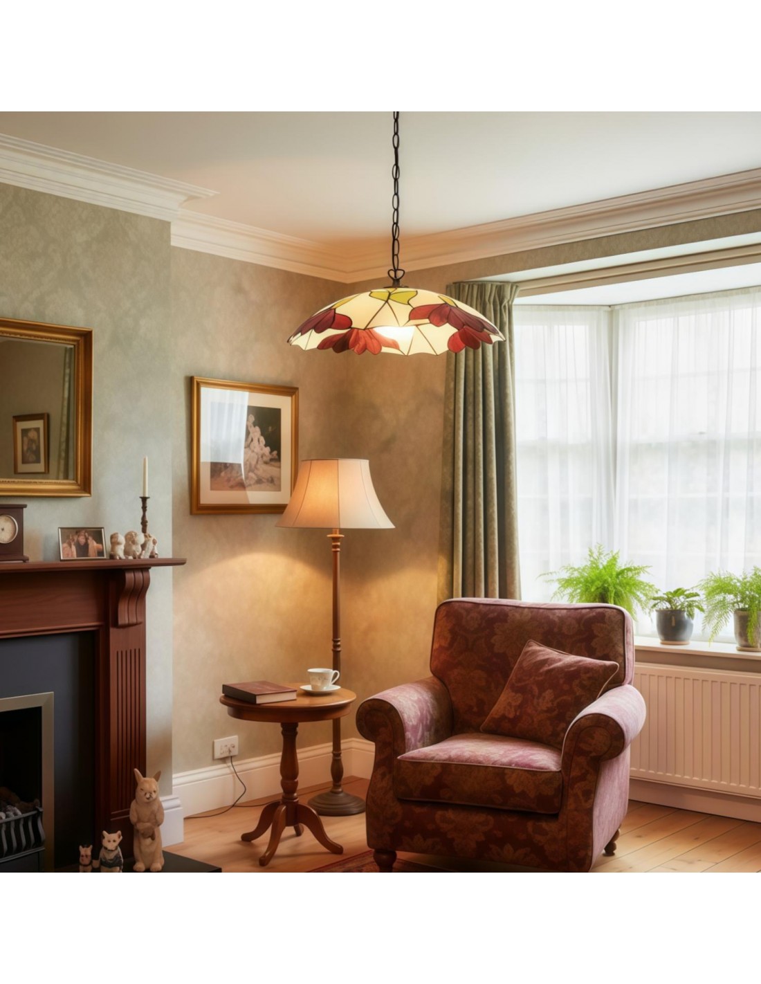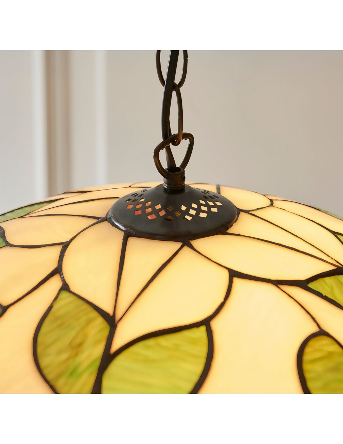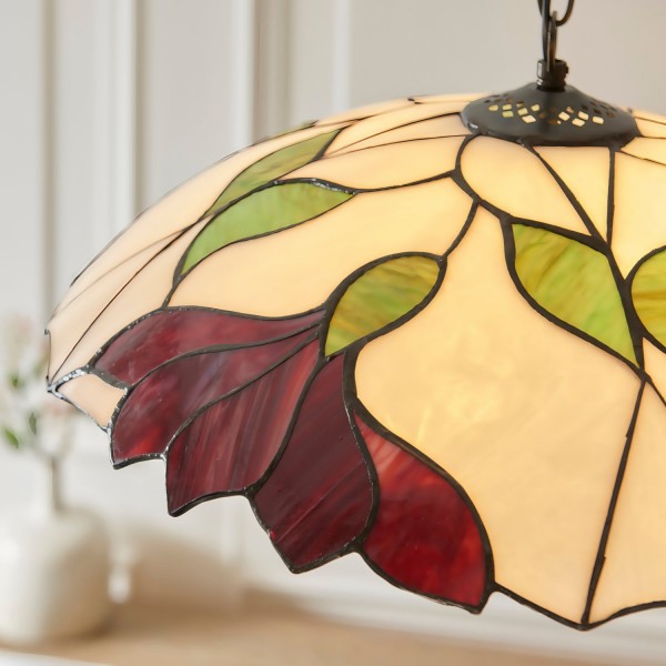 Questa lampada a sospensione in vetro floreale presenta un paralume in vetro lavorato a mano con motivi floreali in colori caldi e traslucidi, che proietta una luce morbida e invitante. L'elegante struttura in metallo e la catena offrono uno stile senza tempo e un'altezza di sospensione flessibile. Perfetta per soggiorni, sale da pranzo o cucine, aggiunge fascino artistico e illuminazione d'ambiente a qualsiasi spazio.