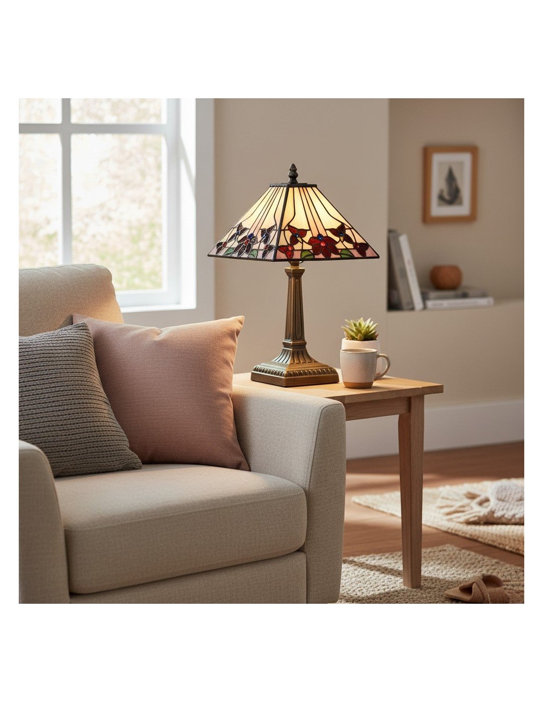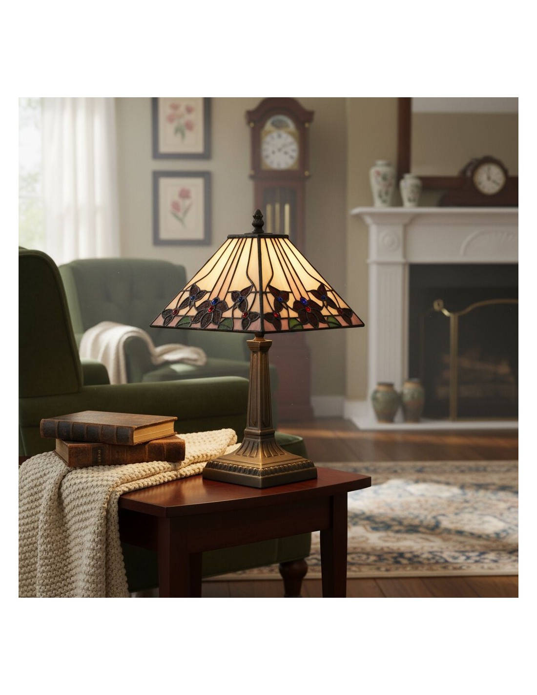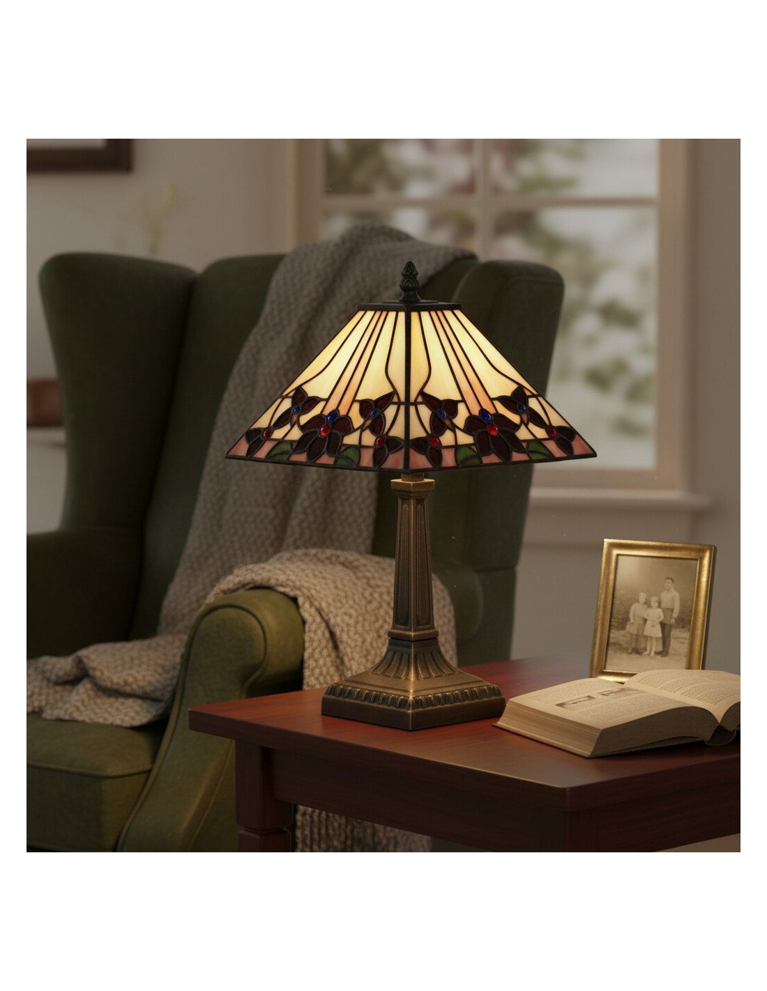 La lampada da tavolo TF Camillo è caratterizzata da un paralume in vetro colorato lavorato a mano che emette una calda luce. La sua elegante base in metallo con finitura vintage aggiunge un tocco di raffinatezza a qualsiasi ambiente, rendendola un pezzo senza tempo che si adatta a diversi stili di arredamento.