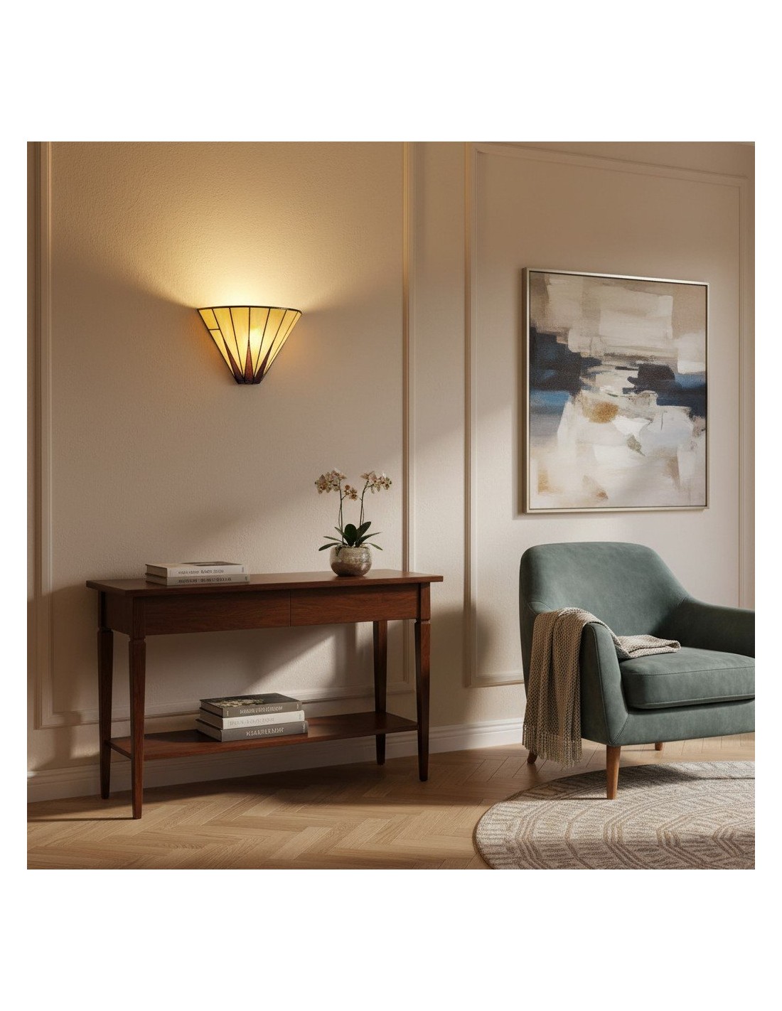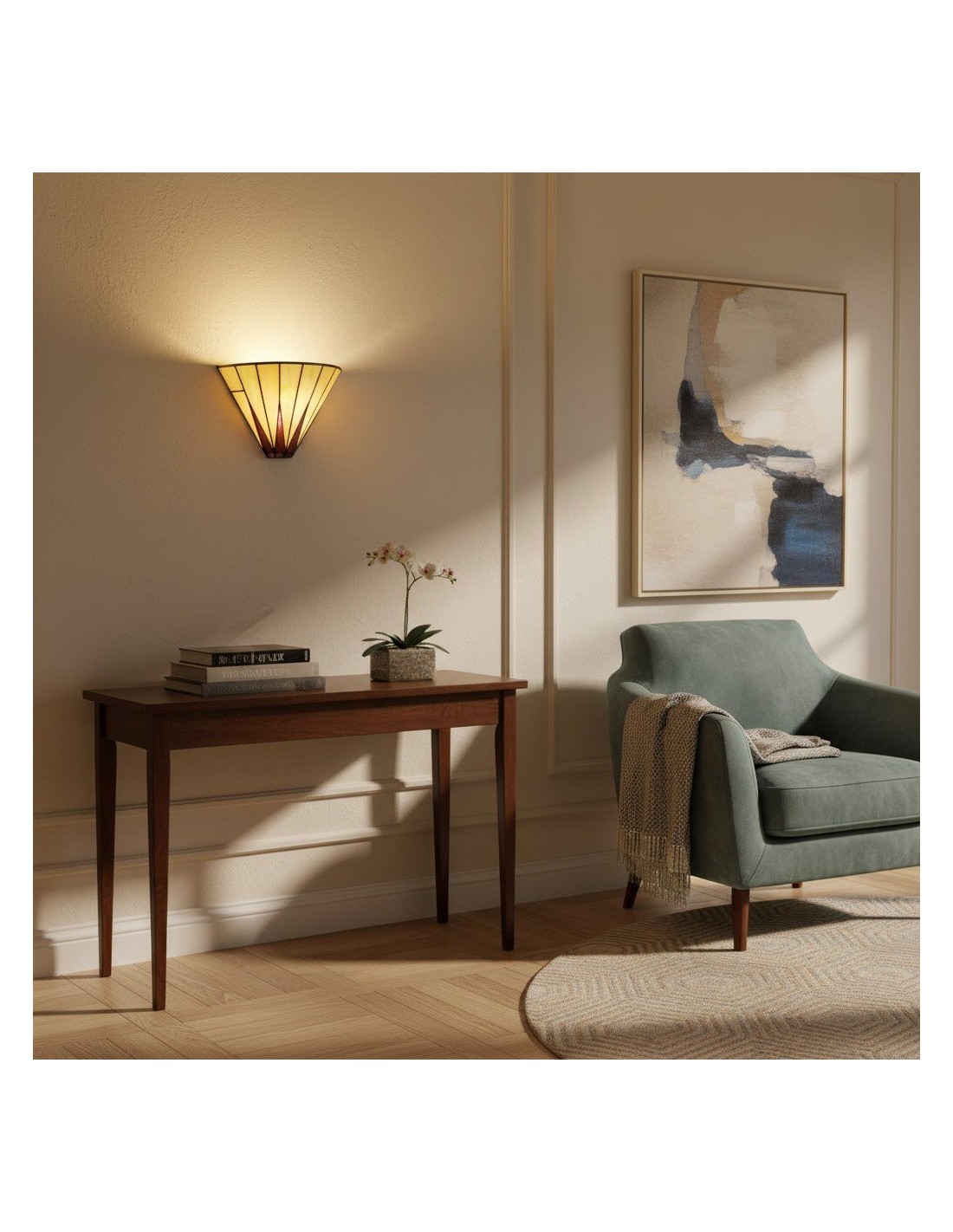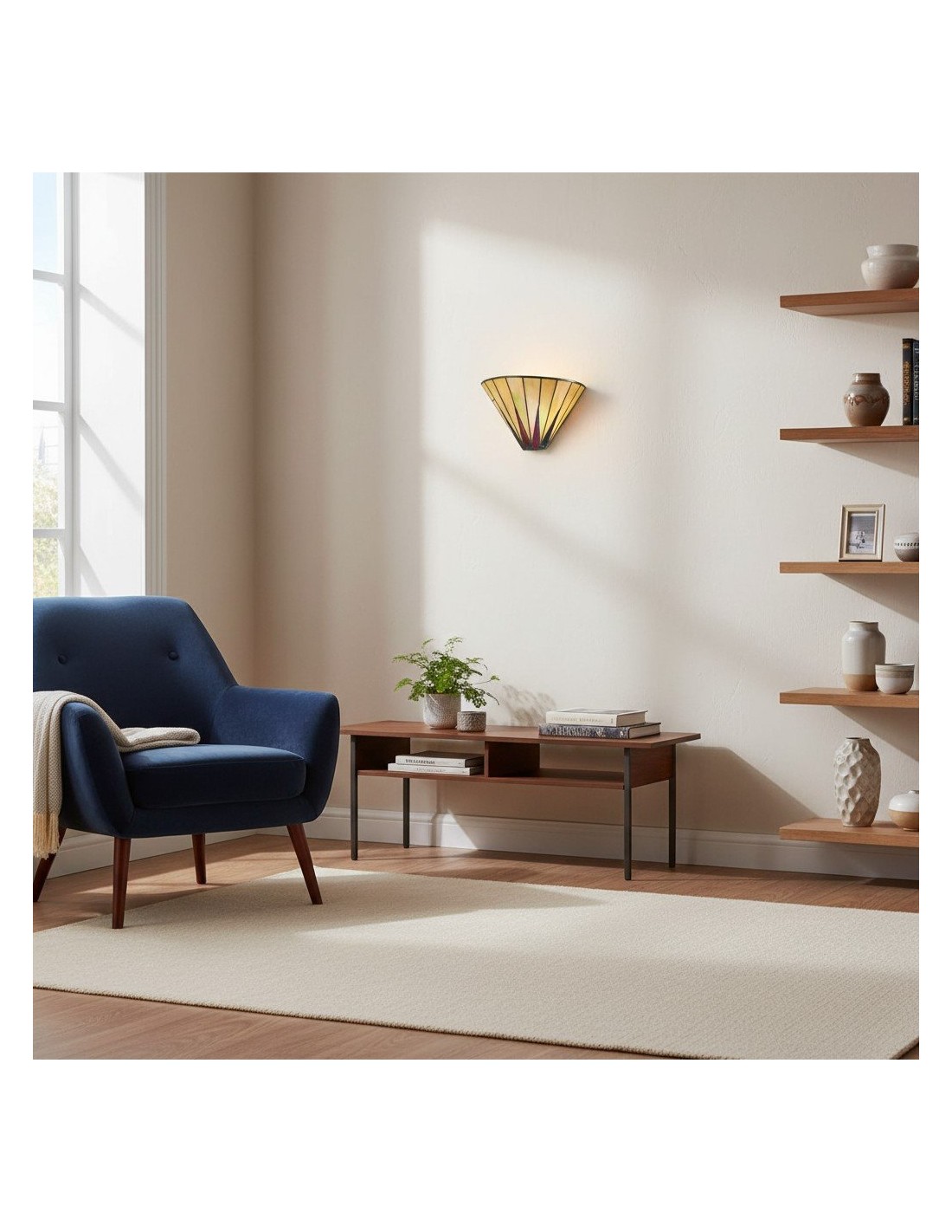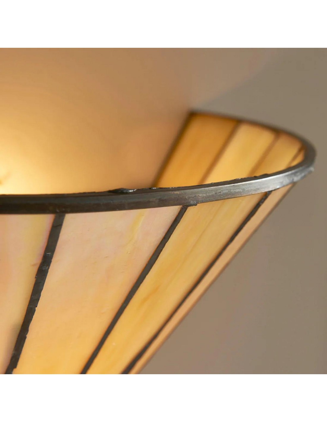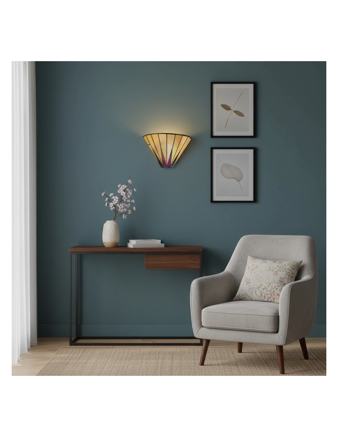 Illumina il tuo spazio con il fascino celestiale della nostra lampada da parete Dark Star Tiffany. Questa squisita applique presenta un accattivante motivo a stella, realizzato a mano da singoli pezzi di vetro artistico di alta qualità in tonalità intense e contrastanti.