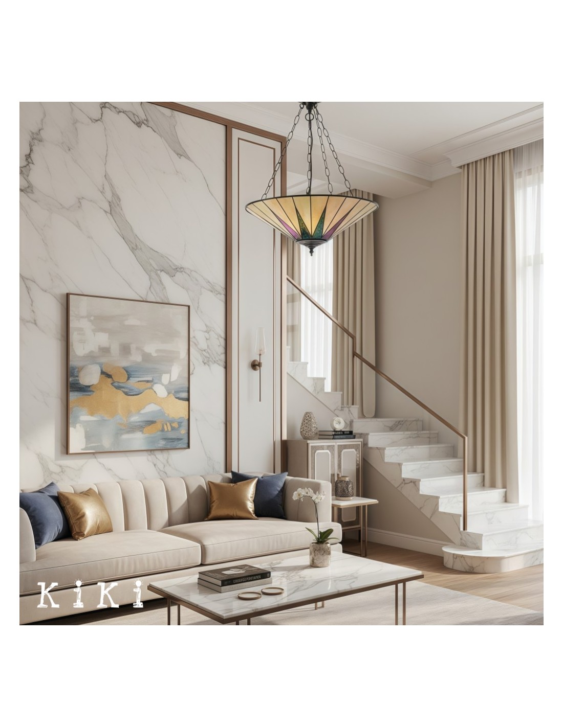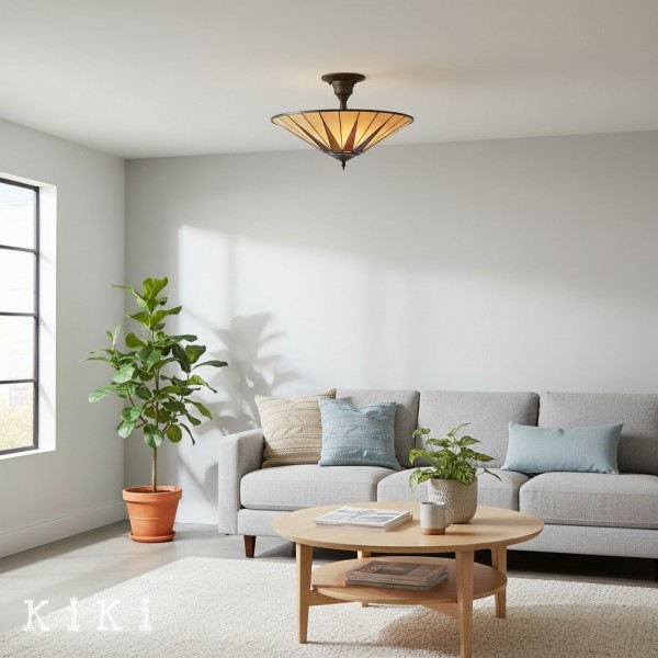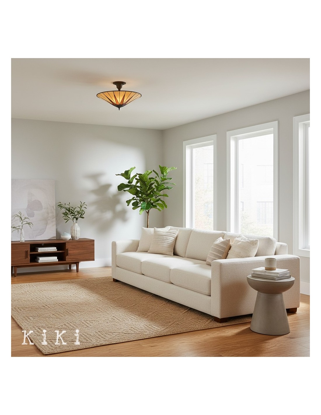 Illumina il tuo spazio con questa lampada da soffitto, caratterizzata da un luminoso motivo a stella realizzato in vetro colorato di alta qualità. I suoi pannelli intricati creano una luce calda e accogliente, perfetta per la zona giorno. Disponibile in configurazioni a semi-incasso, a filo o a sospensione.