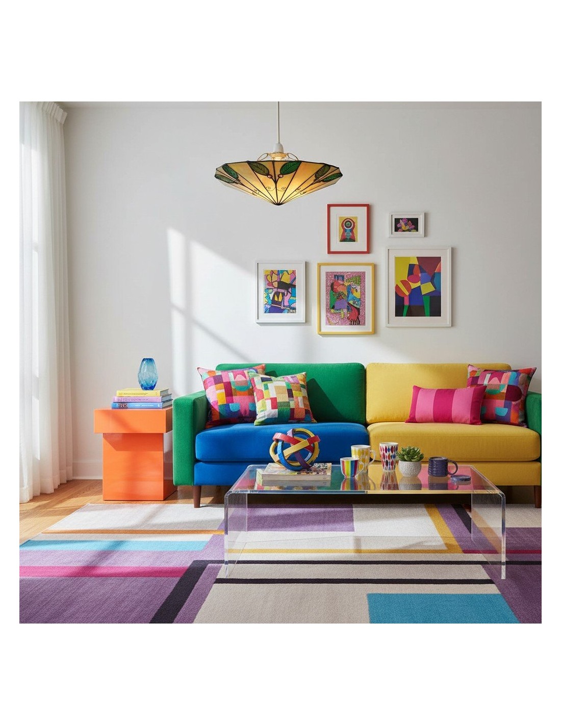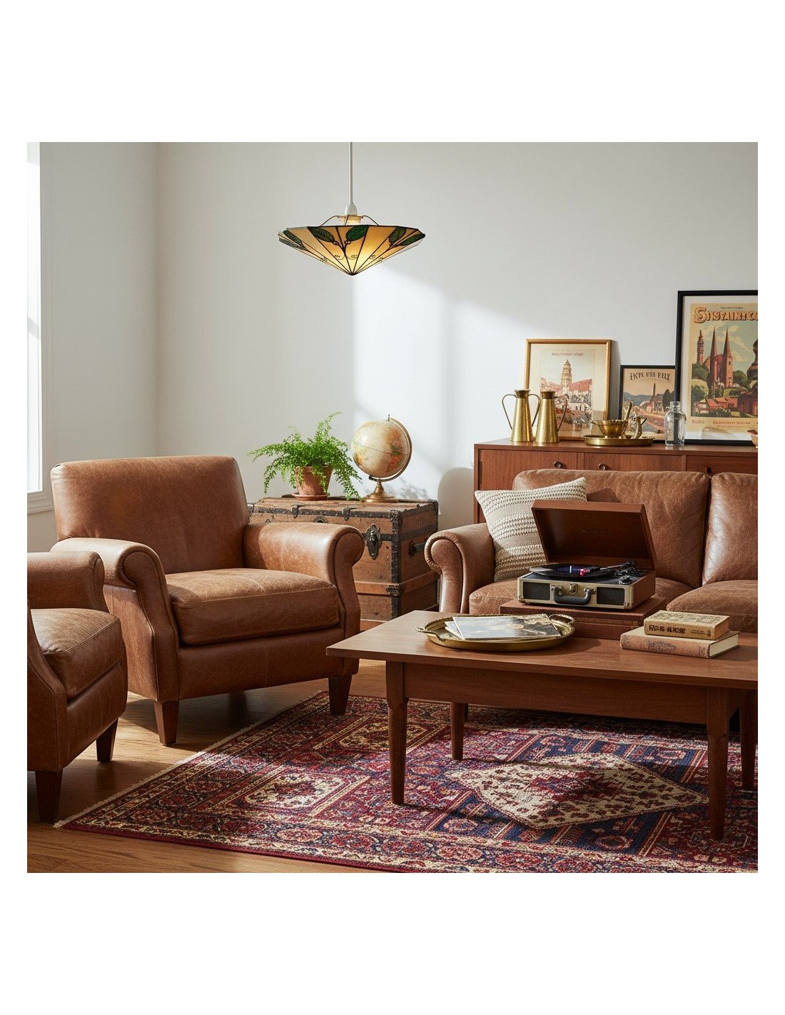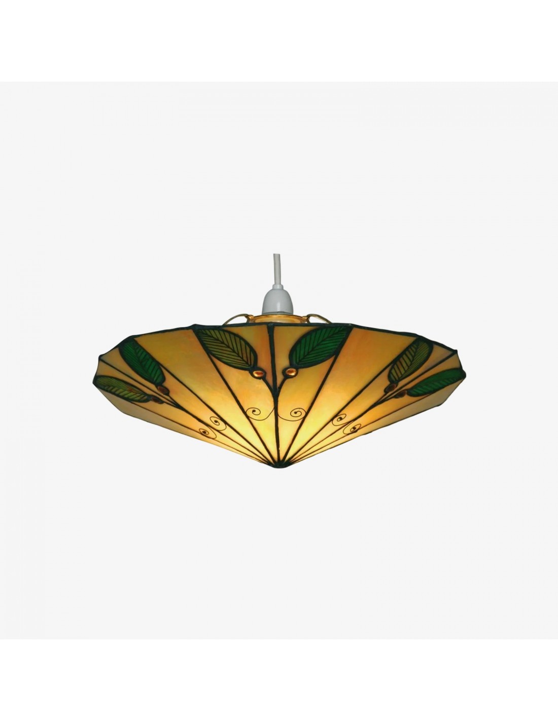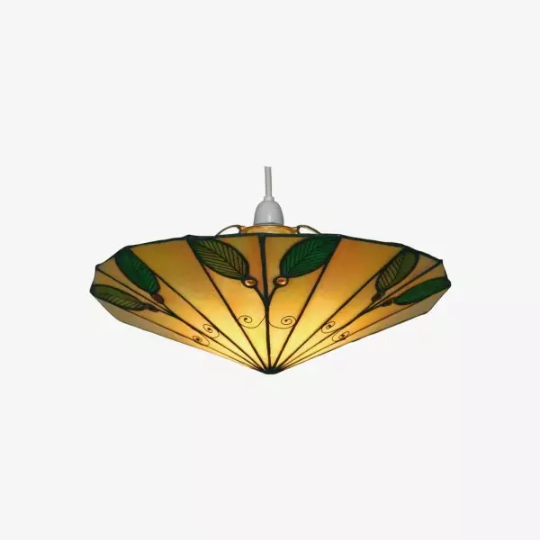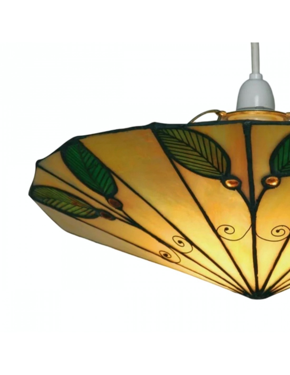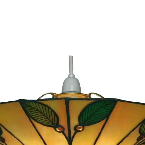 Trasforma i tuoi interni con questo splendido paralume in stile Tiffany di TF Harken. Realizzato a mano in vivaci vetrate colorate con un intricato motivo a foglie, diffonde una luce calda e colorata.