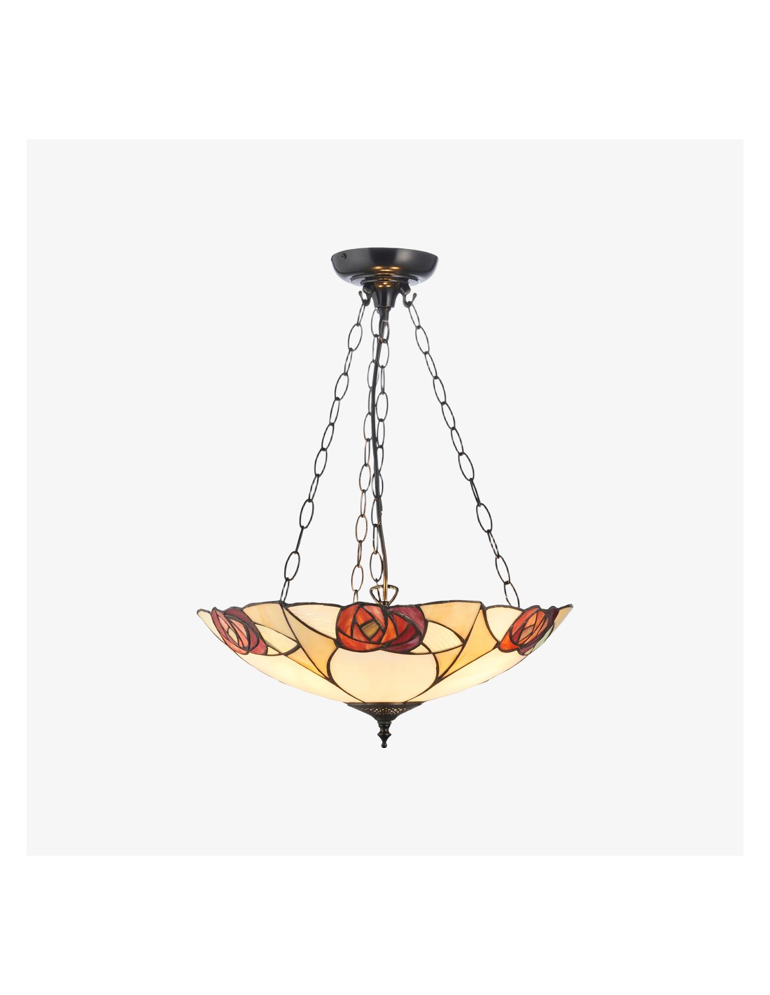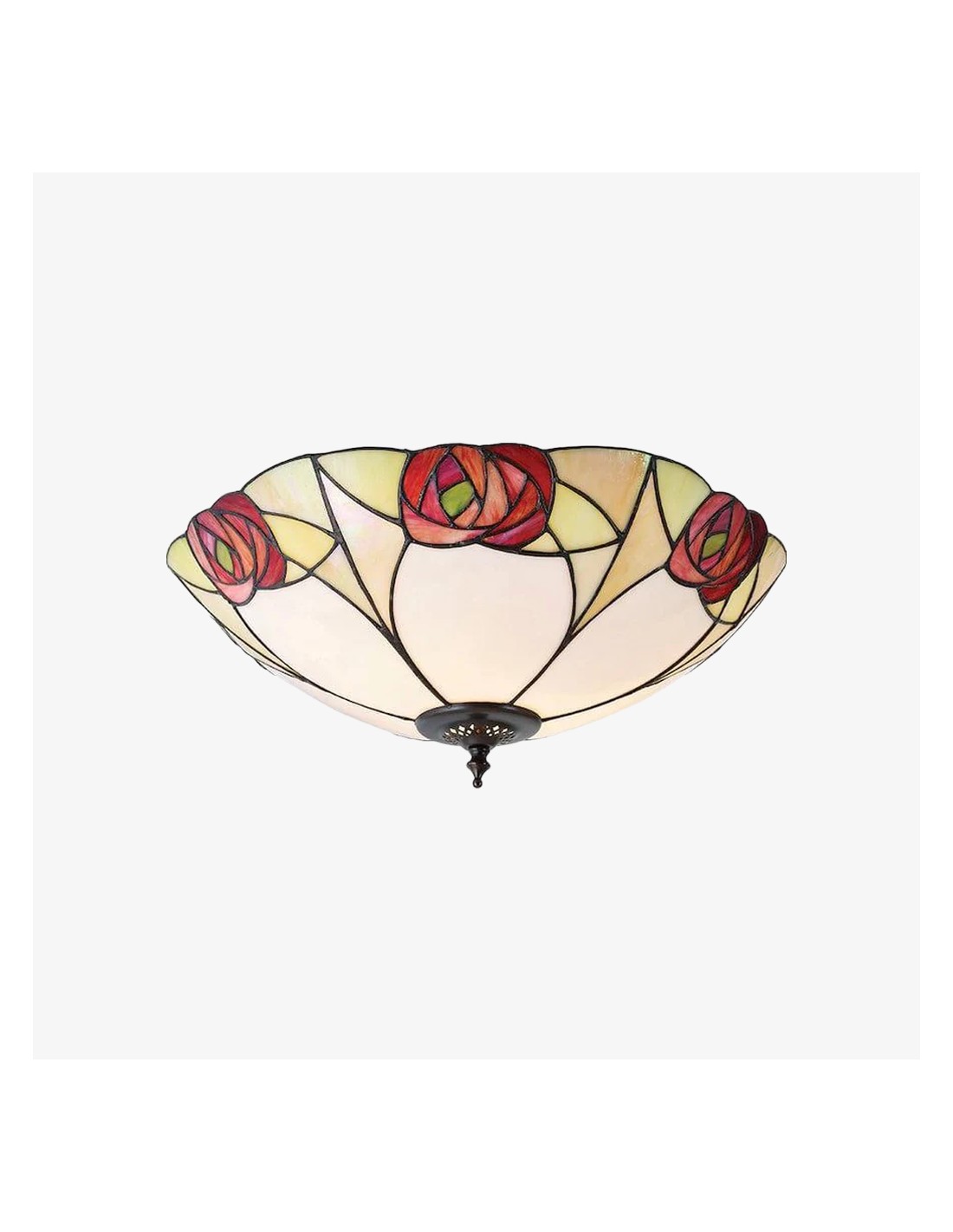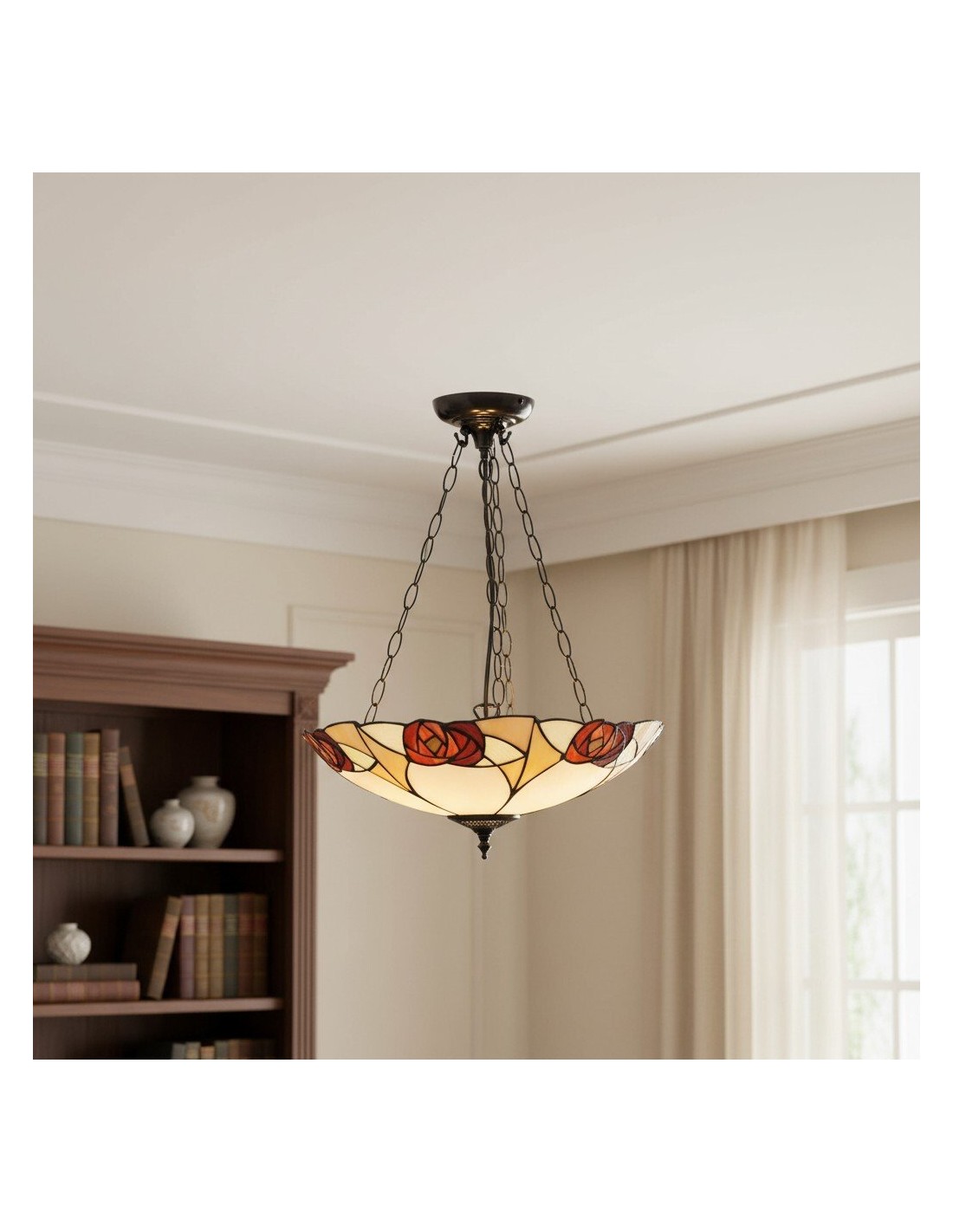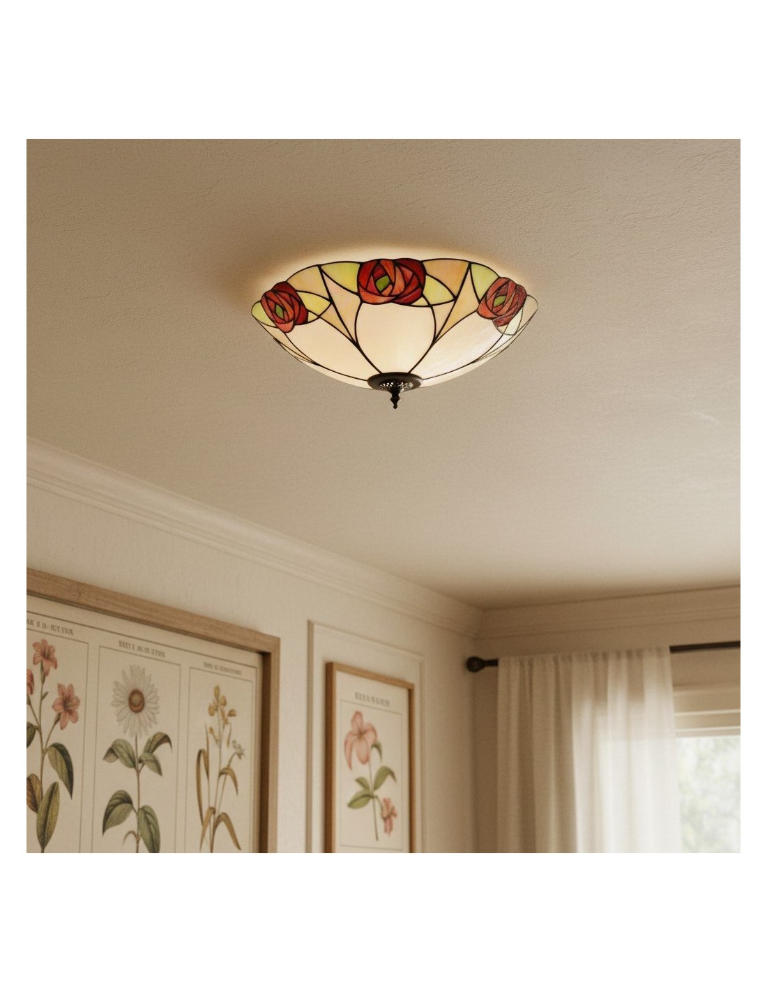 Ogni lampada da soffitto è un capolavoro di design geometrico, con pannelli di vetro colorato realizzati a mano, meticolosamente assemblati nel tradizionale stile Tiffany. I motivi intricati creano una luce calda e accogliente che trasforma qualsiasi spazio con il suo fascino vintage.