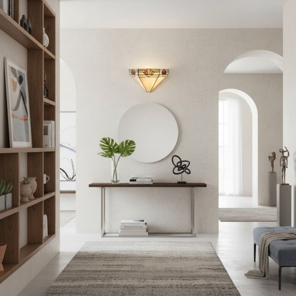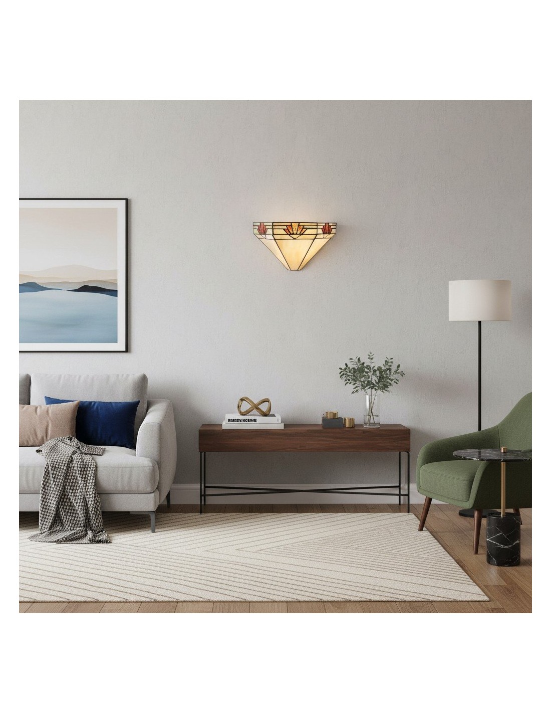 La lampada da parete TF Nevada aggiunge un tocco Art Déco a qualsiasi ambiente. Il suo sorprendente motivo piramidale e il paralume in vetro colorato proiettano una luce calda e decorativa. Compatta ma accattivante, questa lampada da parete è ideale per corridoi, salotti, camere da letto e hotel.