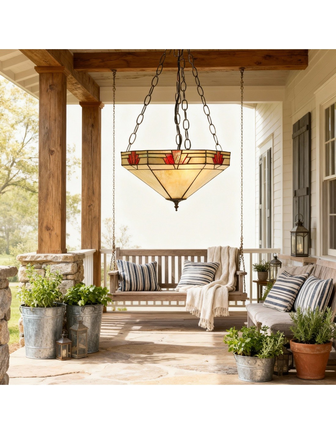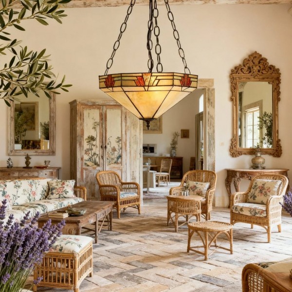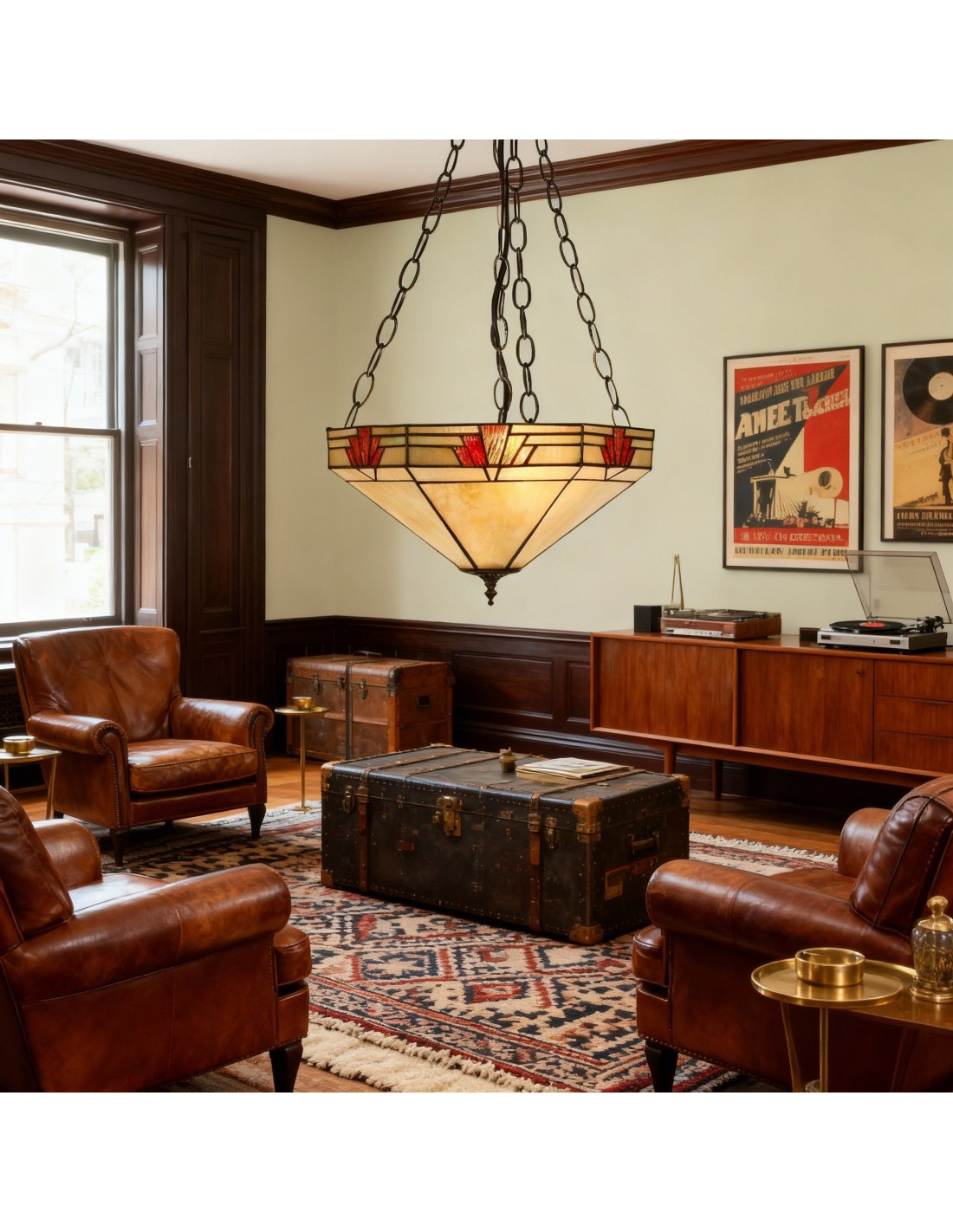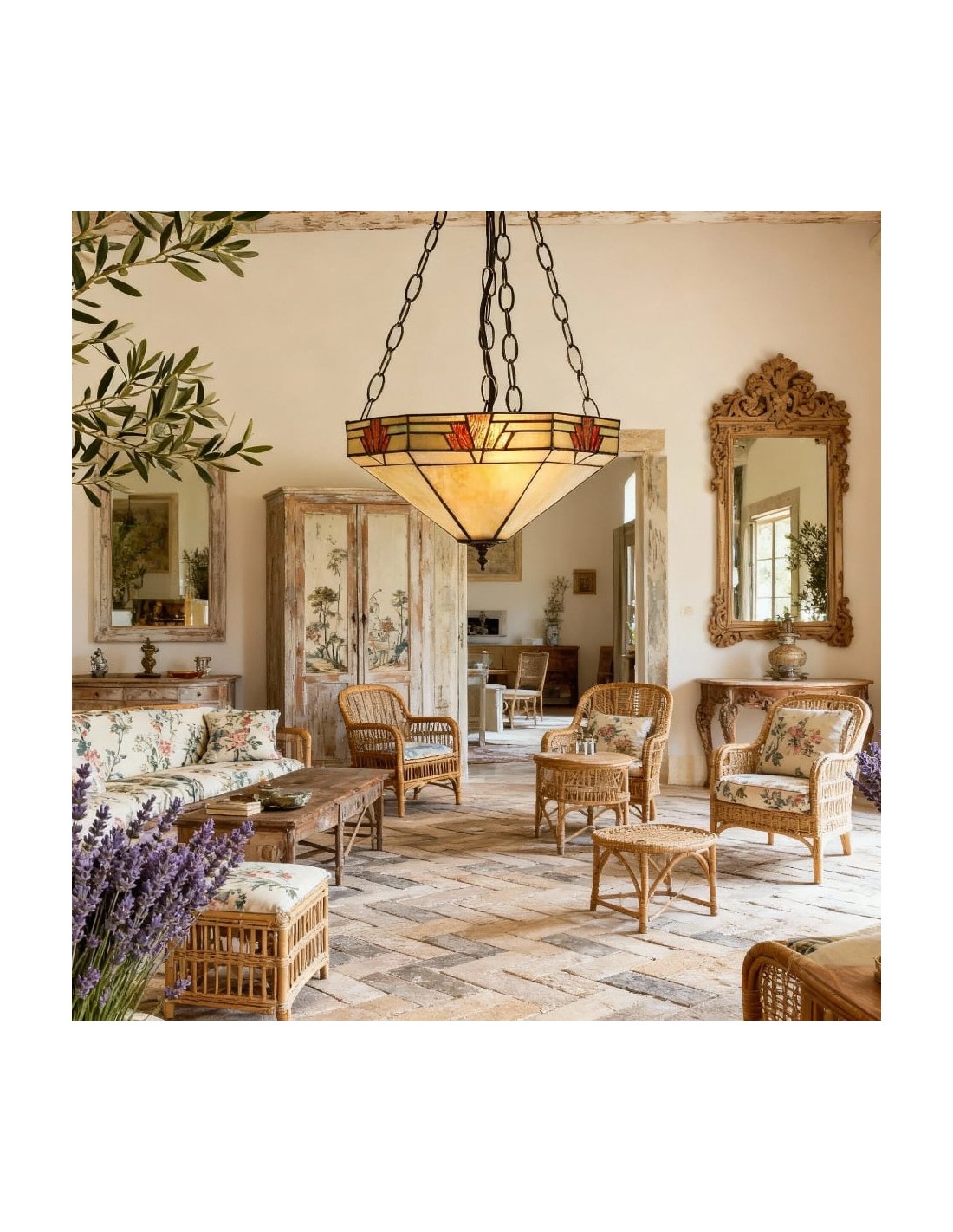 Questa lampada a sospensione capovolta presenta un paralume scolpito ispirato alle classiche opere in vetro Tiffany, rivisitato con una silhouette contemporanea che crea una luce calda e invitante. Il design capovolto aggiunge un tocco architettonico di grande impatto, rendendola un elemento centrale di grande impatto per sale da pranzo, cucine, ingressi o zone giorno.