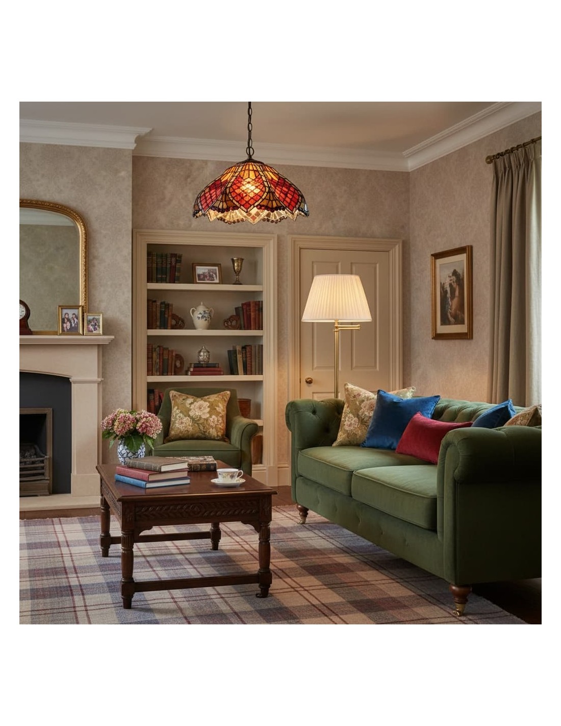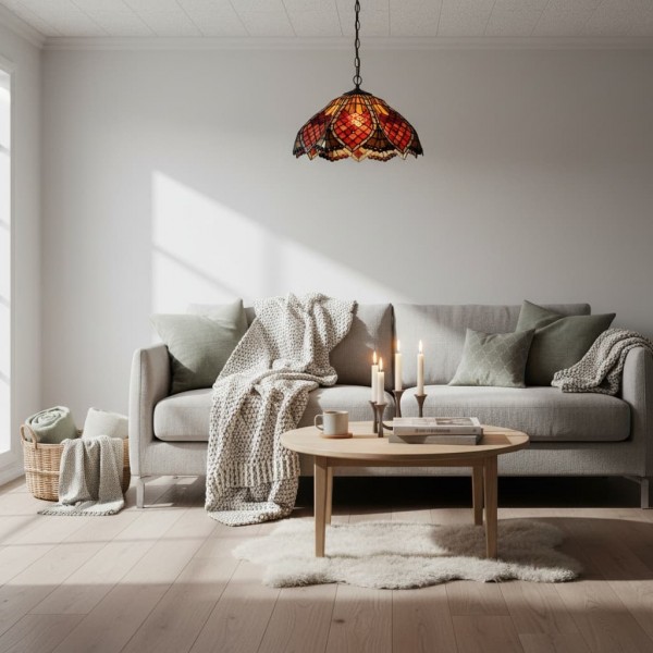 Realizzati a mano con vetrate colorate dalla texture ricca, in tonalità ambrate e delicatamente ondulate, ogni pezzo cattura l'eleganza artigianale, trasformando stanze ordinarie in spazi splendidamente illuminati, ricchi di fascino vintage e calore visivo.