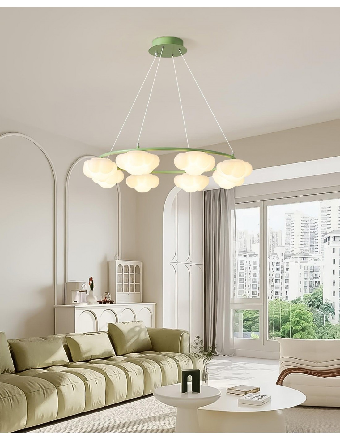 Il lampadario è un capolavoro di stile che porta la bellezza della natura in ogni stanza. Con il suo corpo verde e il paralume che ricorda soffici nuvole, questo lampadario raggiunge un accattivante equilibrio tra natura e arte. Lasciati incantare dal meraviglioso fascino di questo pezzo mentre illumina il tuo spazio con un bagliore morbido e invitante.