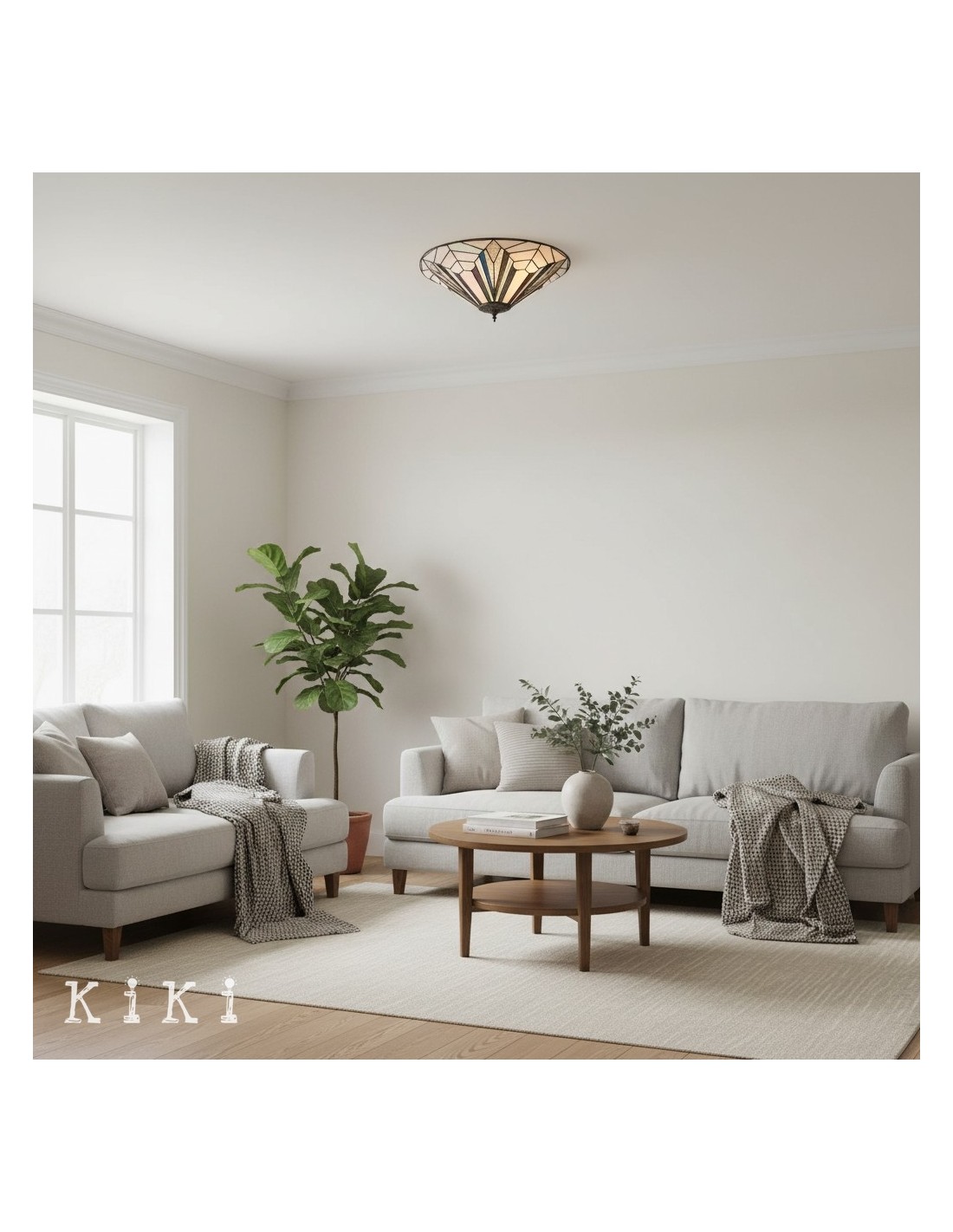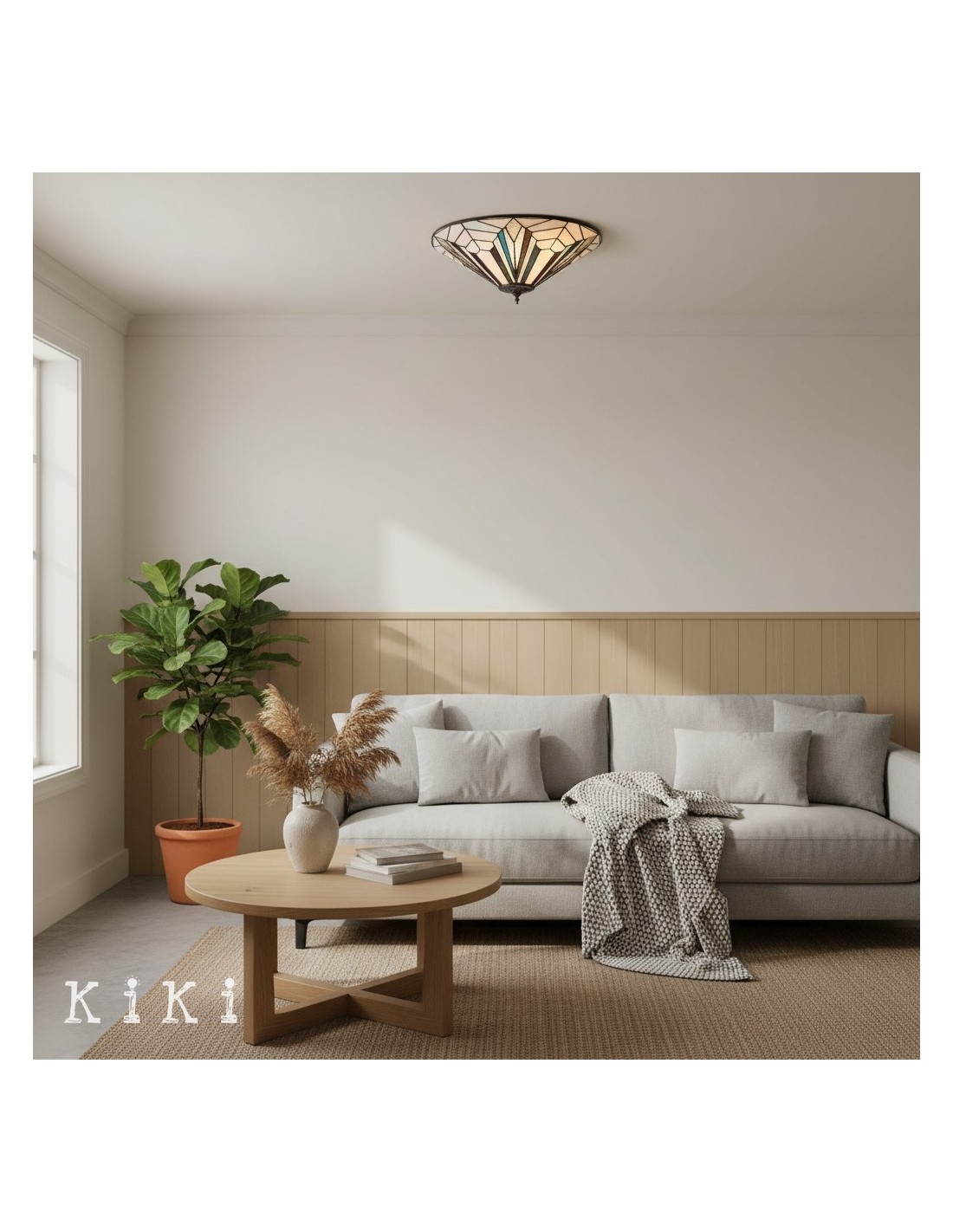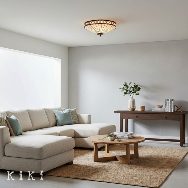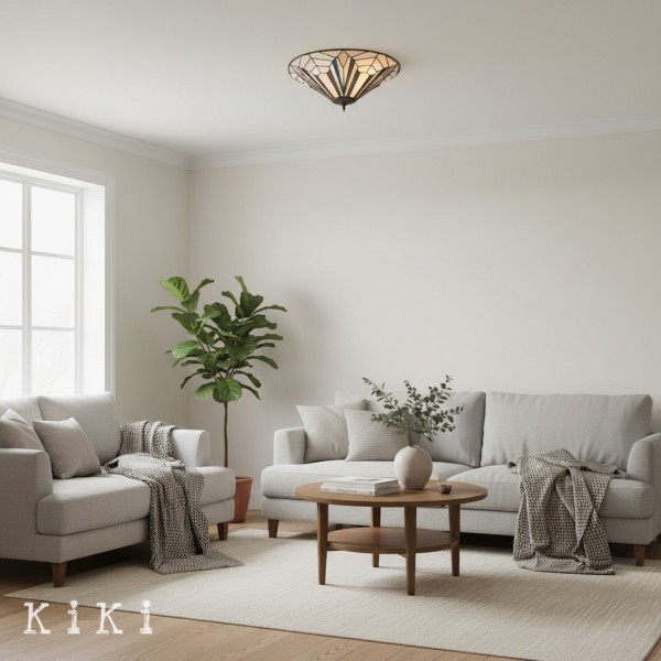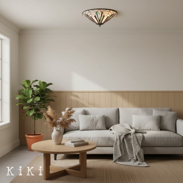 Aggiungi un tocco di stile senza tempo e un'illuminazione decorativa soffusa alla tua casa con questa plafoniera a filo in vetro artistico di ispirazione vintage. Il paralume in stile vetro colorato crea una luce calda e accogliente, aggiungendo texture visiva e fascino artigianale a qualsiasi interno.