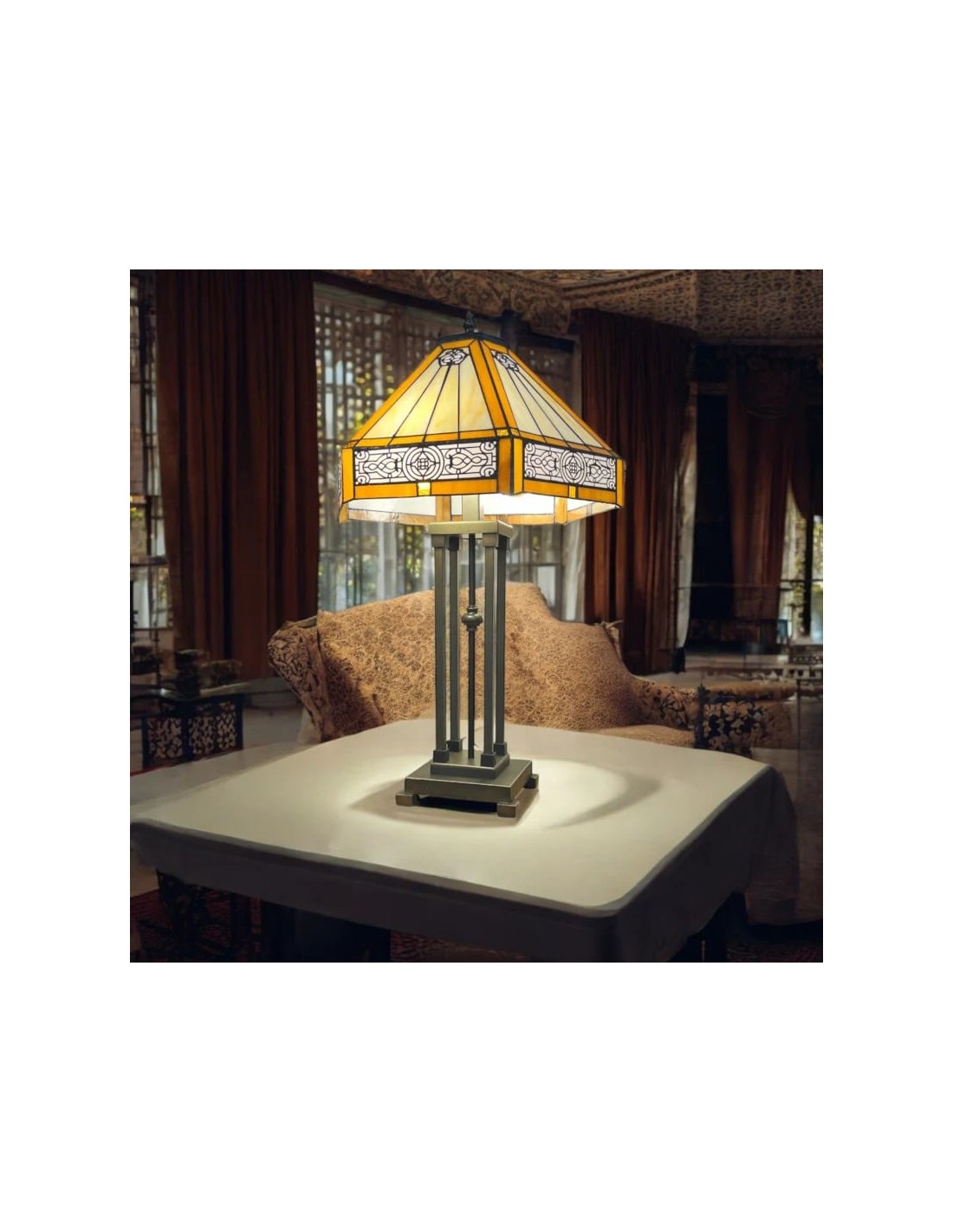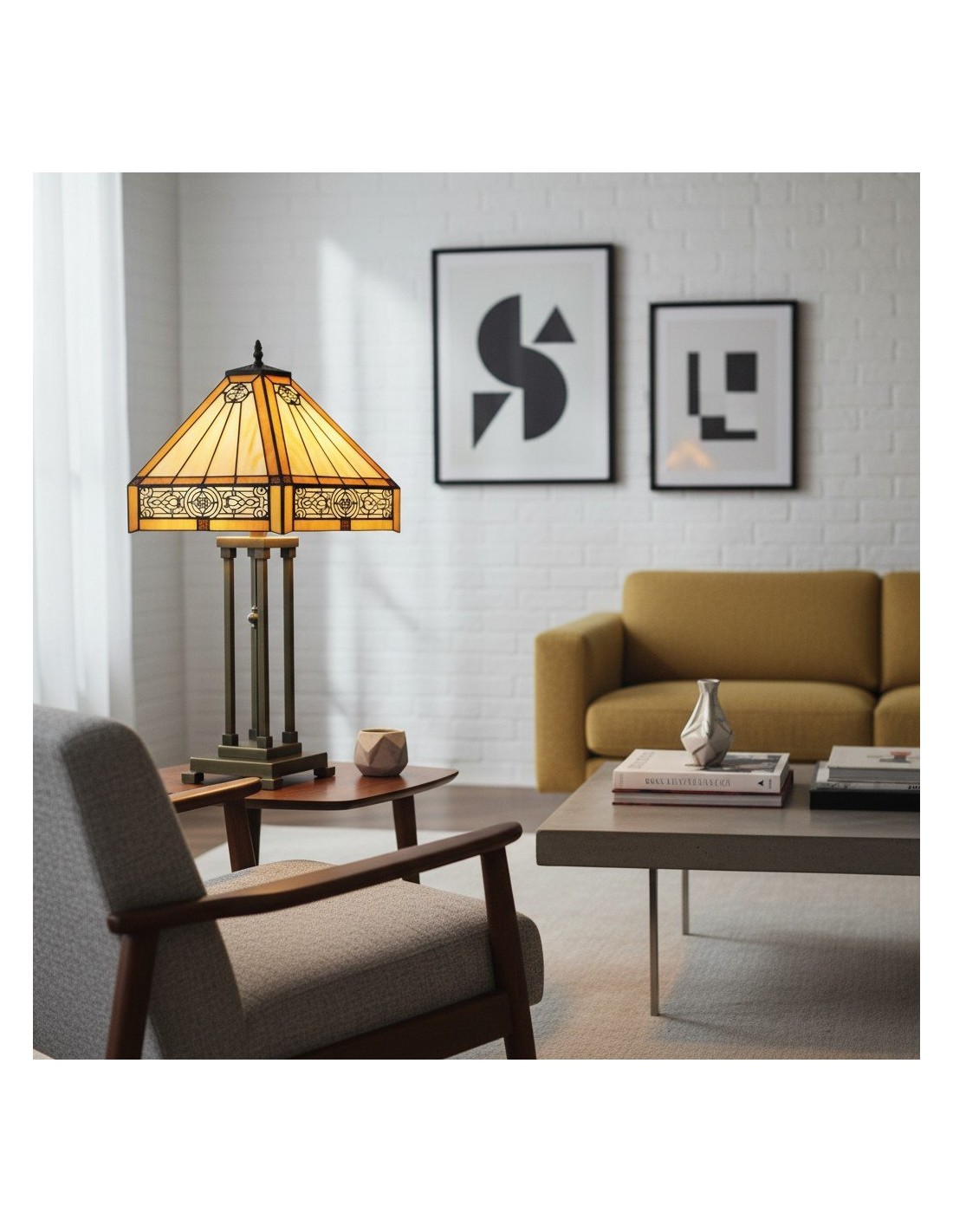 Illumina il tuo spazio con un'eleganza senza tempo. Questa lampada da tavolo Velora in stile Tiffany presenta uno splendido paralume in vetro colorato lavorato a mano con un intricato motivo floreale e a forma di libellula. La sua luce calda e vibrante crea un'atmosfera accogliente, mentre la base decorata di ispirazione vintage aggiunge un tocco di arte classica.