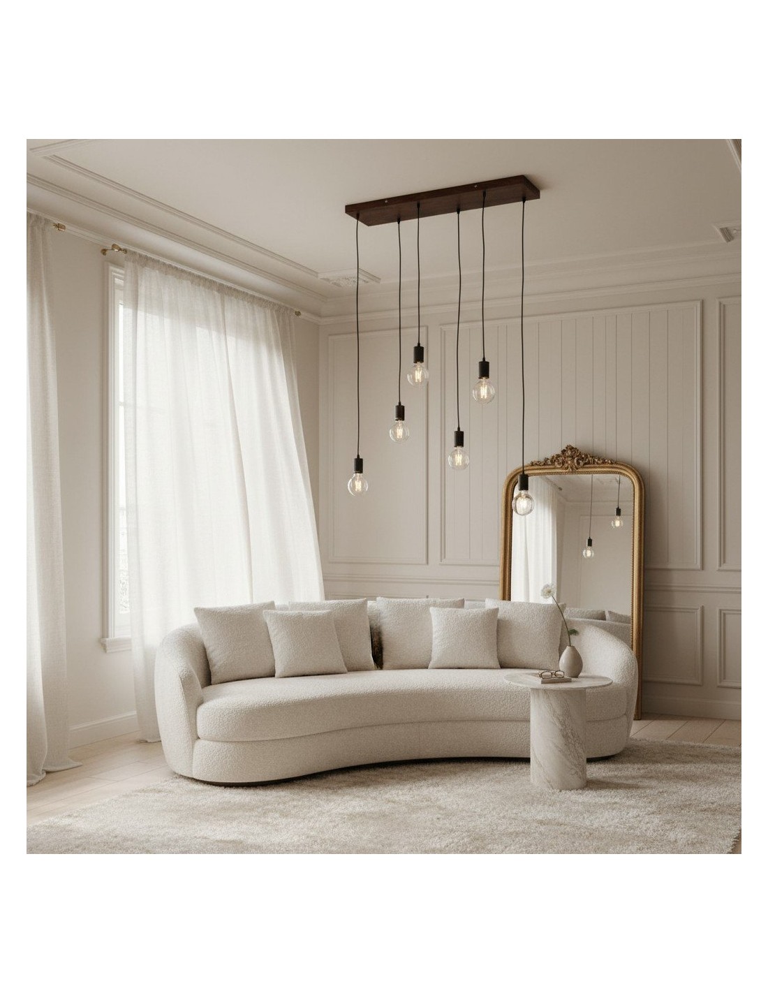 Una lampada a sospensione lineare a 6 luci che combina una silhouette pulita con finiture in materiali misti per adattarsi a molti stili di arredamento. La barra aerodinamica e gli apparecchi uniformemente distanziati creano un'illuminazione equilibrata ideale per isole da cucina, tavoli da pranzo, banconi per la colazione e piani di lavoro. Sospensione regolabile per un posizionamento perfetto.