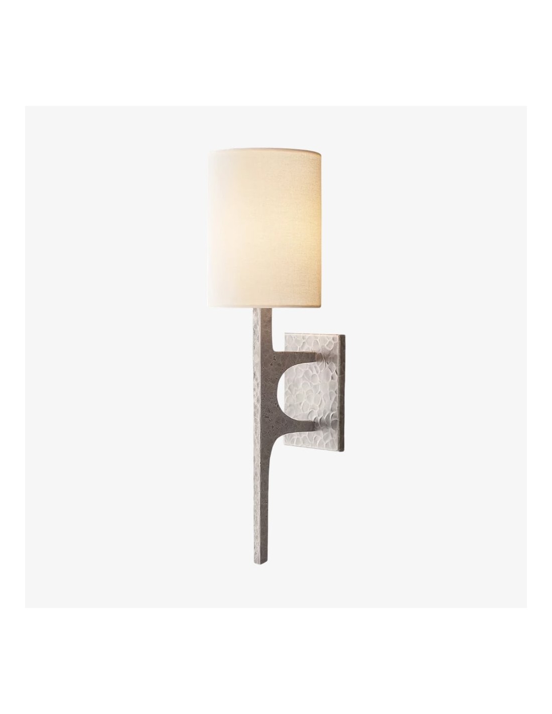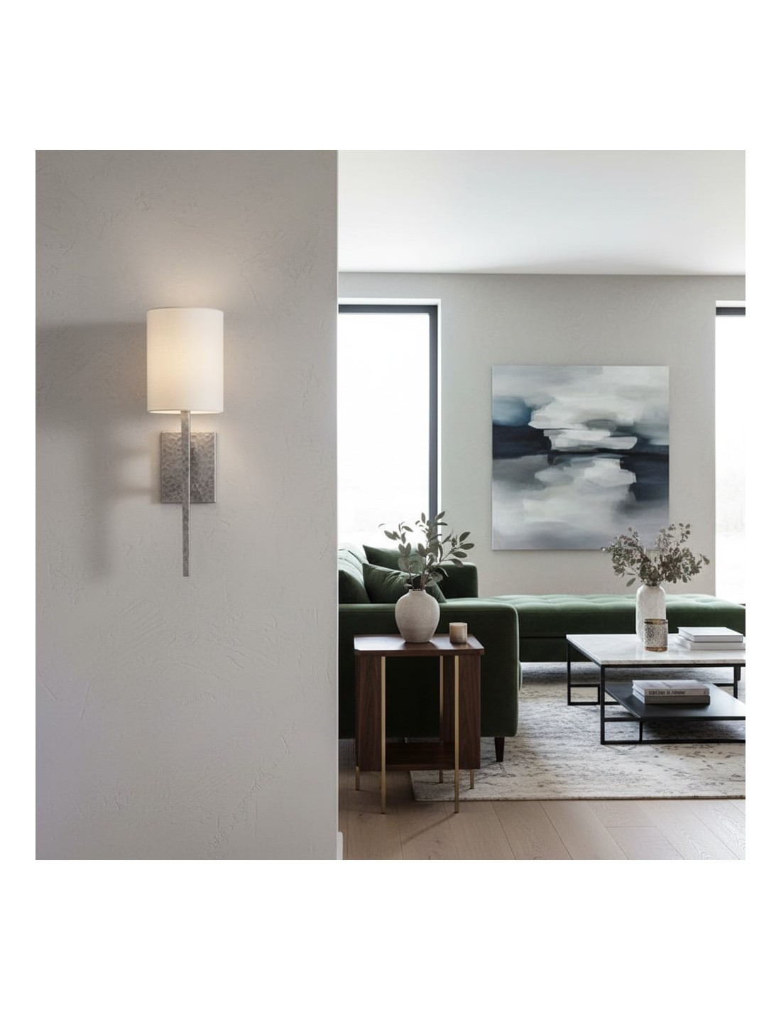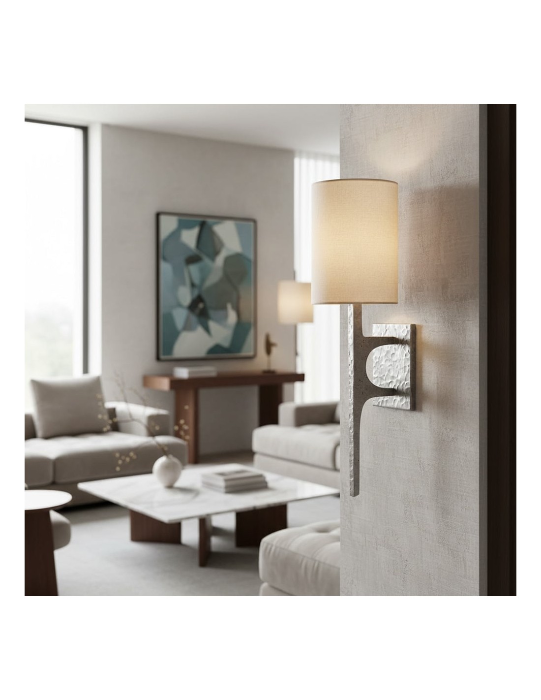 Scopri la lampada da parete lineare Texturoc - Modern Hammered Wall Sconce, un perfetto connubio tra stile e funzionalità. La struttura in metallo martellato e forgiato a mano è testimonianza di una lavorazione artigianale di alto livello. I bracci della struttura sono meticolosamente affusolati, creando un equilibrio armonioso. Il paralume cilindrico in lino e cotone bianco offre una distribuzione della luce morbida e uniforme.