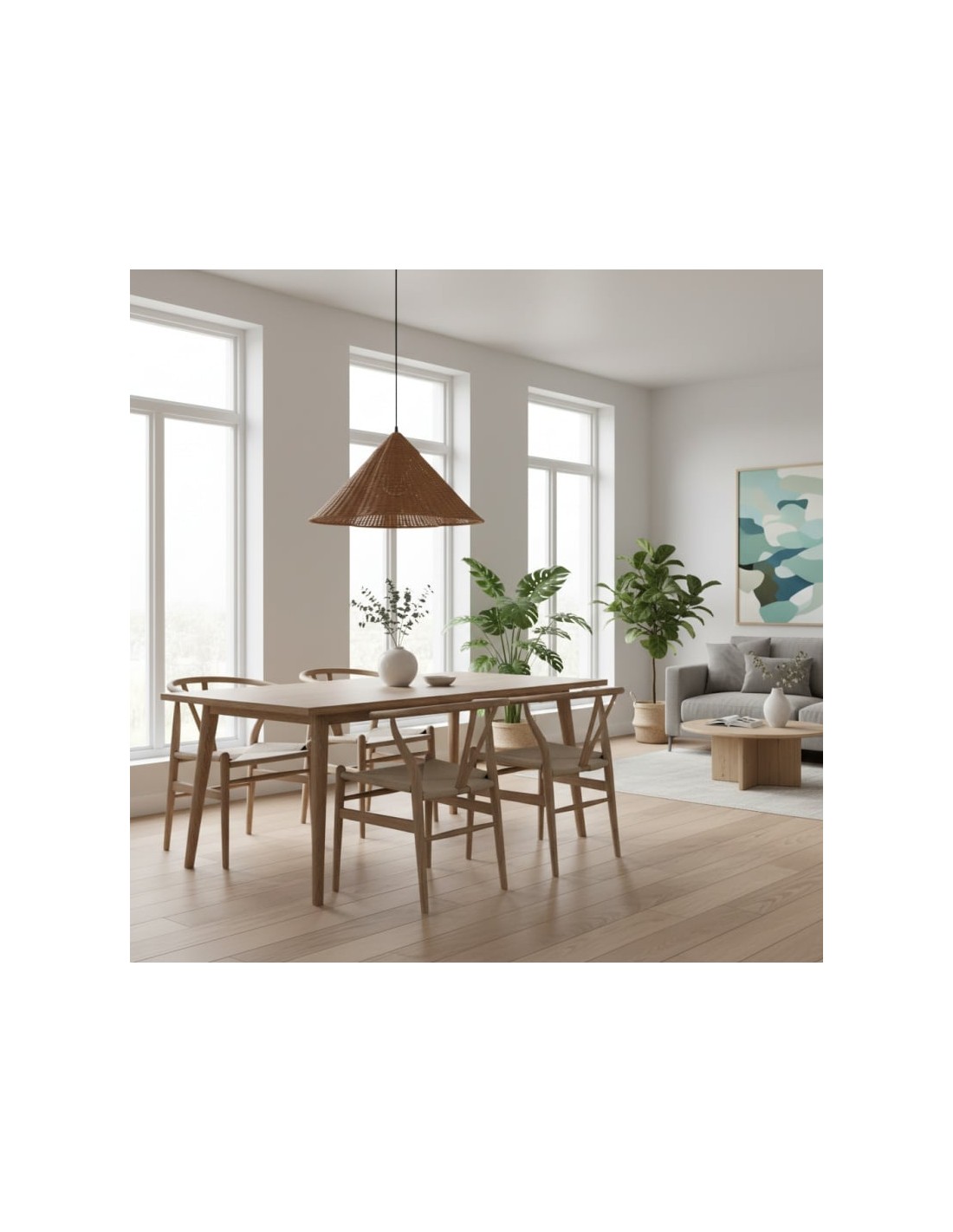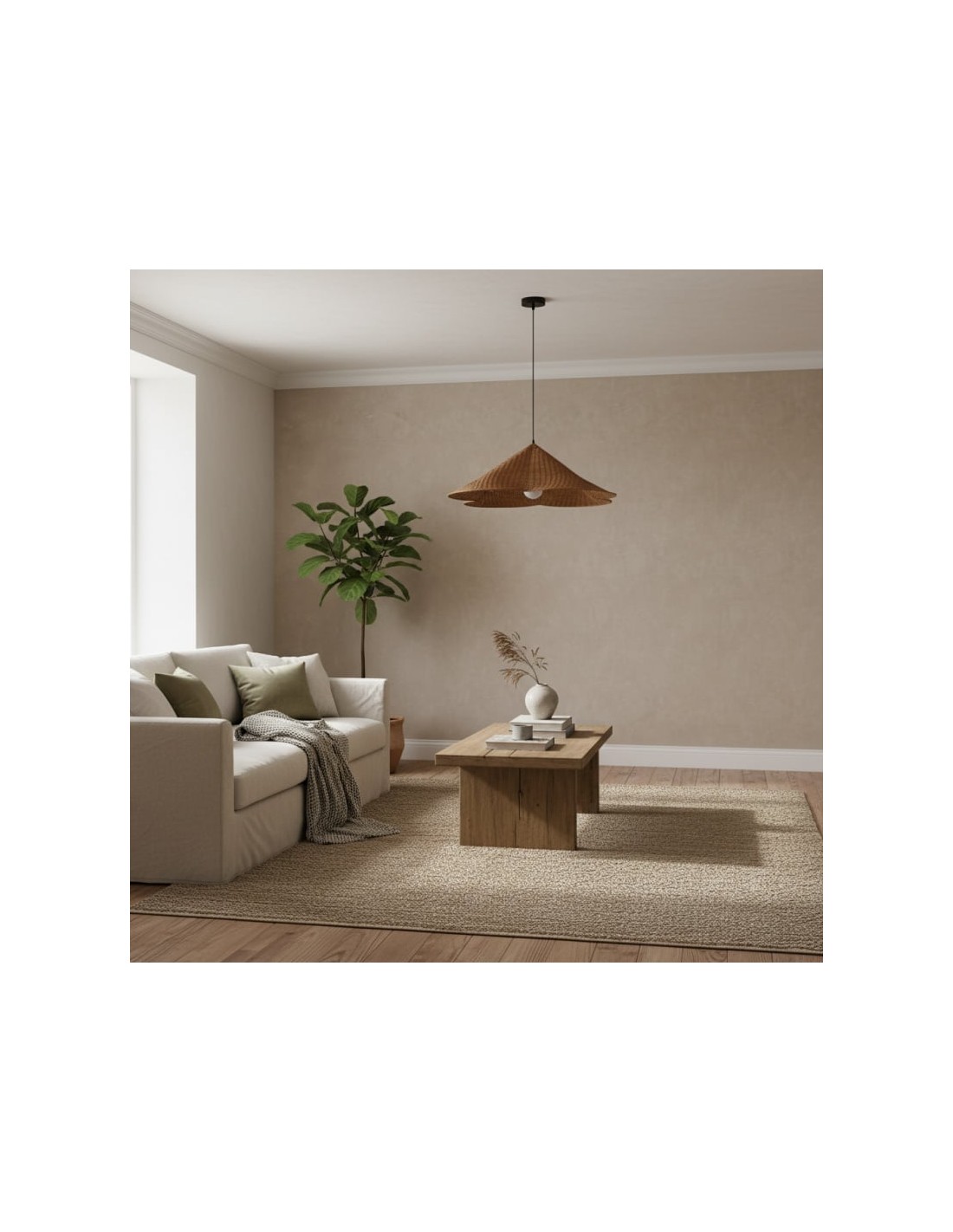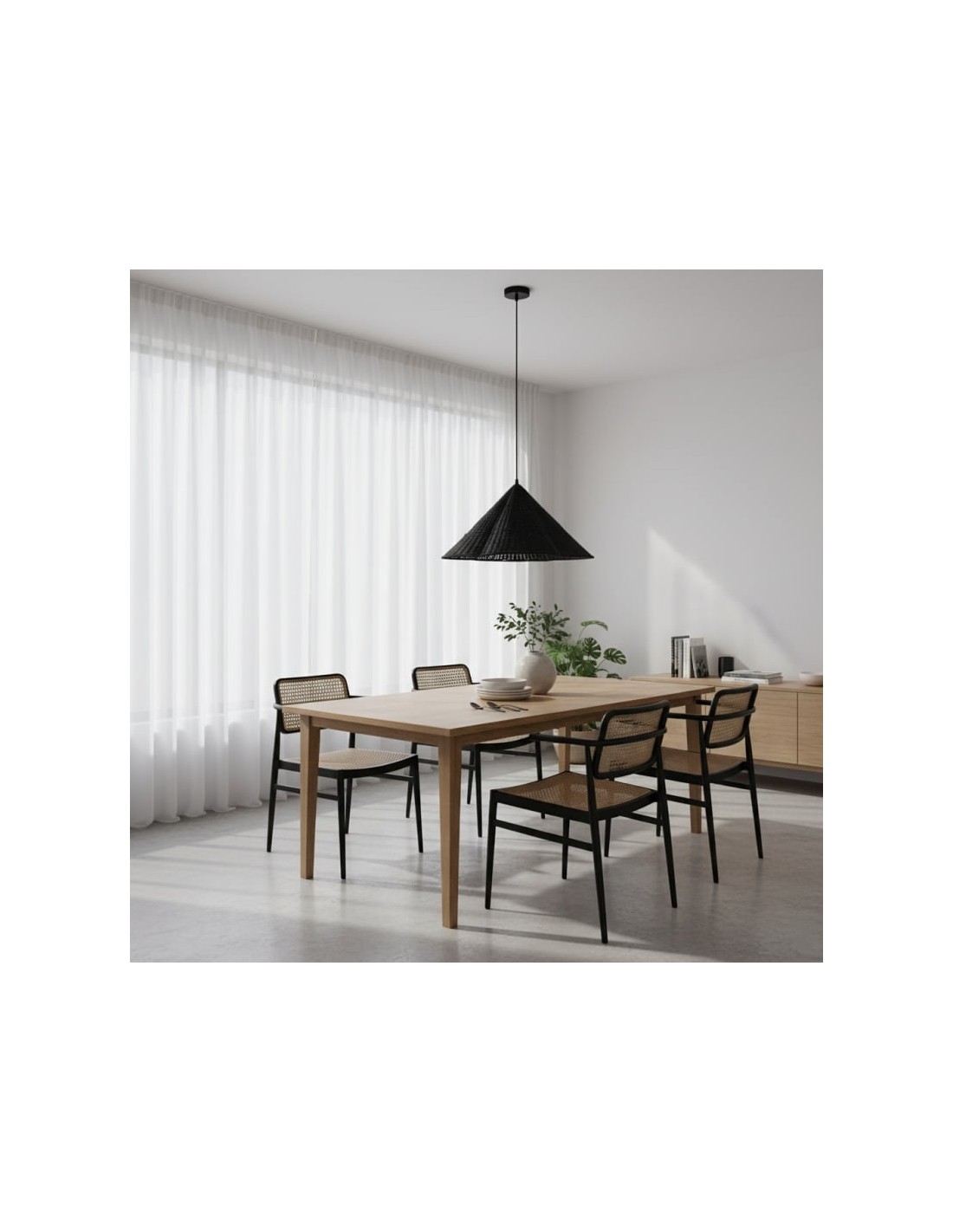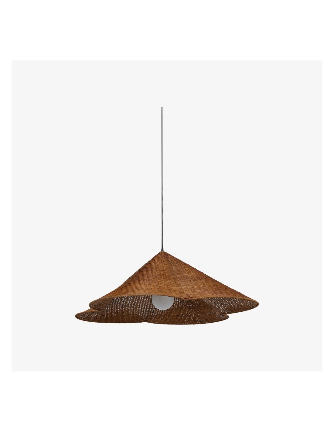 La lampada a sospensione Wickara conferisce una presenza ariosa e scultorea a qualsiasi ambiente. Il suo paralume intrecciato aggiunge una texture organica e una luce morbida e diffusa, creando un'atmosfera calda e accogliente. Ideale per sale da pranzo, soggiorni, camere da letto o ingressi.