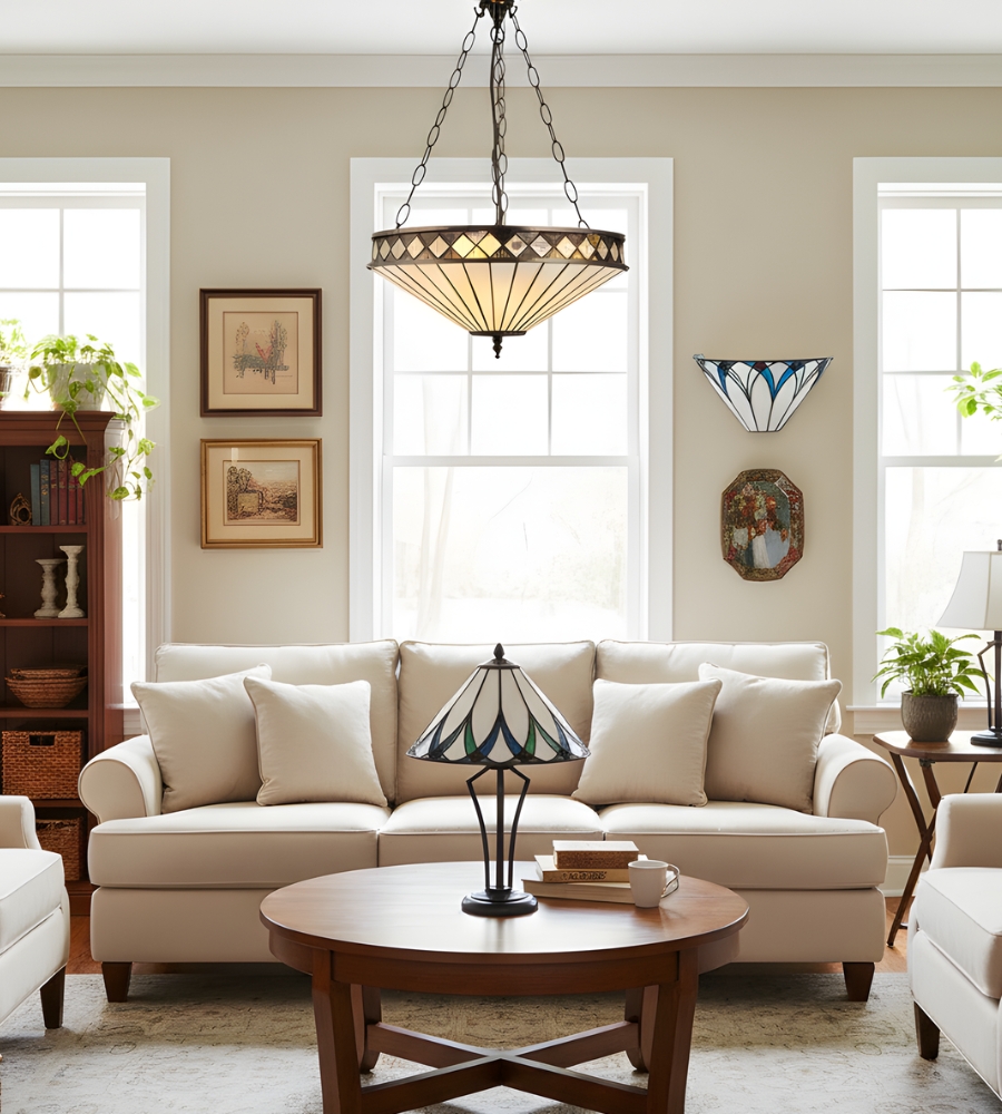Vintage Tiffany-geïnspireerde artistieke glazen hanglamp voor keukeneiland en hal KL2075