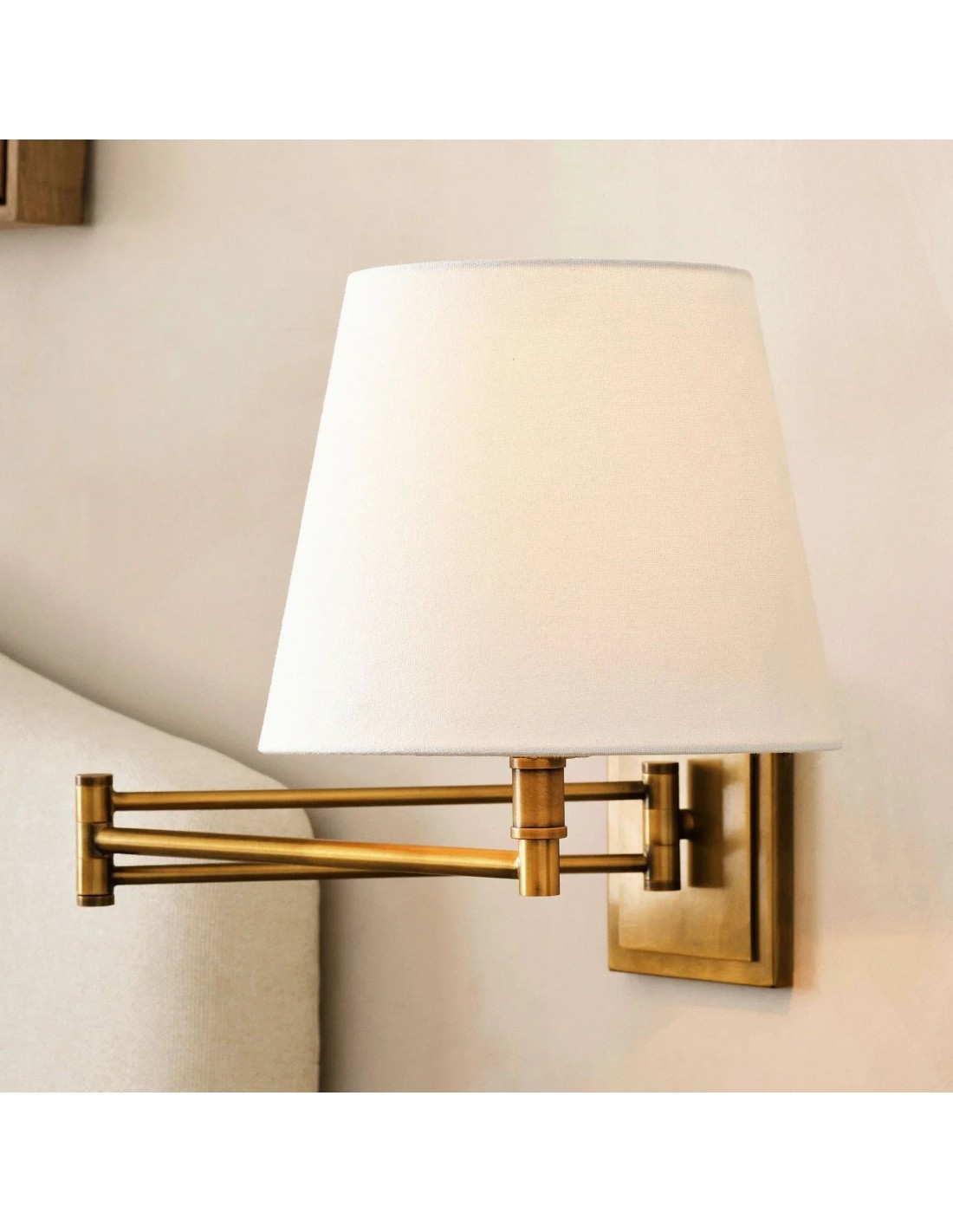 Een moderne zwenkarm wandlamp met een strakke linnen kap en verstelbare arm voor flexibele verlichting. Ideaal voor slaapkamers, leeshoekjes, woonkamers of hallen. De lamp combineert zacht licht met een elegant design en versterkt zo zowel eigentijdse als overgangsstijlen.