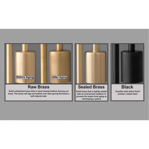 - Onze Raw Brass-afwerking bestaat uit massief, onafgewerkt messing dat met de hand wordt gereinigd voordat het onze werkplaats verlaat. Het messing zal na verloop van tijd verouderen en patineren, waardoor de afwerking een zachte, natuurlijke uitstraling krijgt.