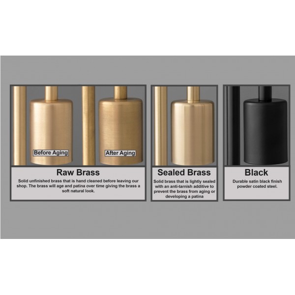 - Onze Raw Brass-afwerking bestaat uit massief, onafgewerkt messing dat met de hand wordt gereinigd voordat het onze werkplaats verlaat. Het messing zal na verloop van tijd verouderen en patineren, waardoor de afwerking een zachte, natuurlijke uitstraling krijgt.
