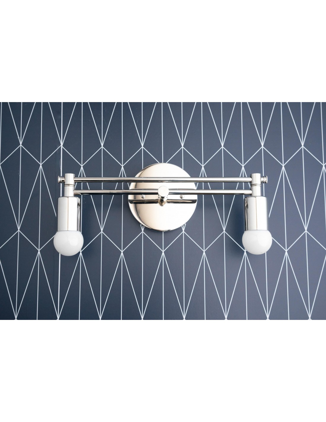 Voeg een vleugje Art Deco charme toe aan je badkamer met deze geometrische wastafellamp. Met zijn strakke lijnen en moderne metalen frame biedt hij zowel stijlvolle details als praktische verlichting. Deze wandlamp is ontworpen om te passen bij moderne interieurs en is perfect voor het opwaarderen van wastafels.