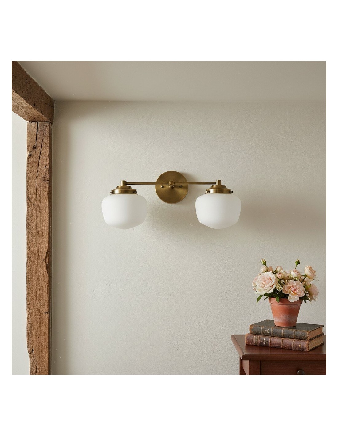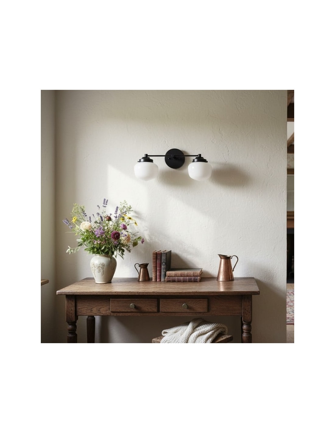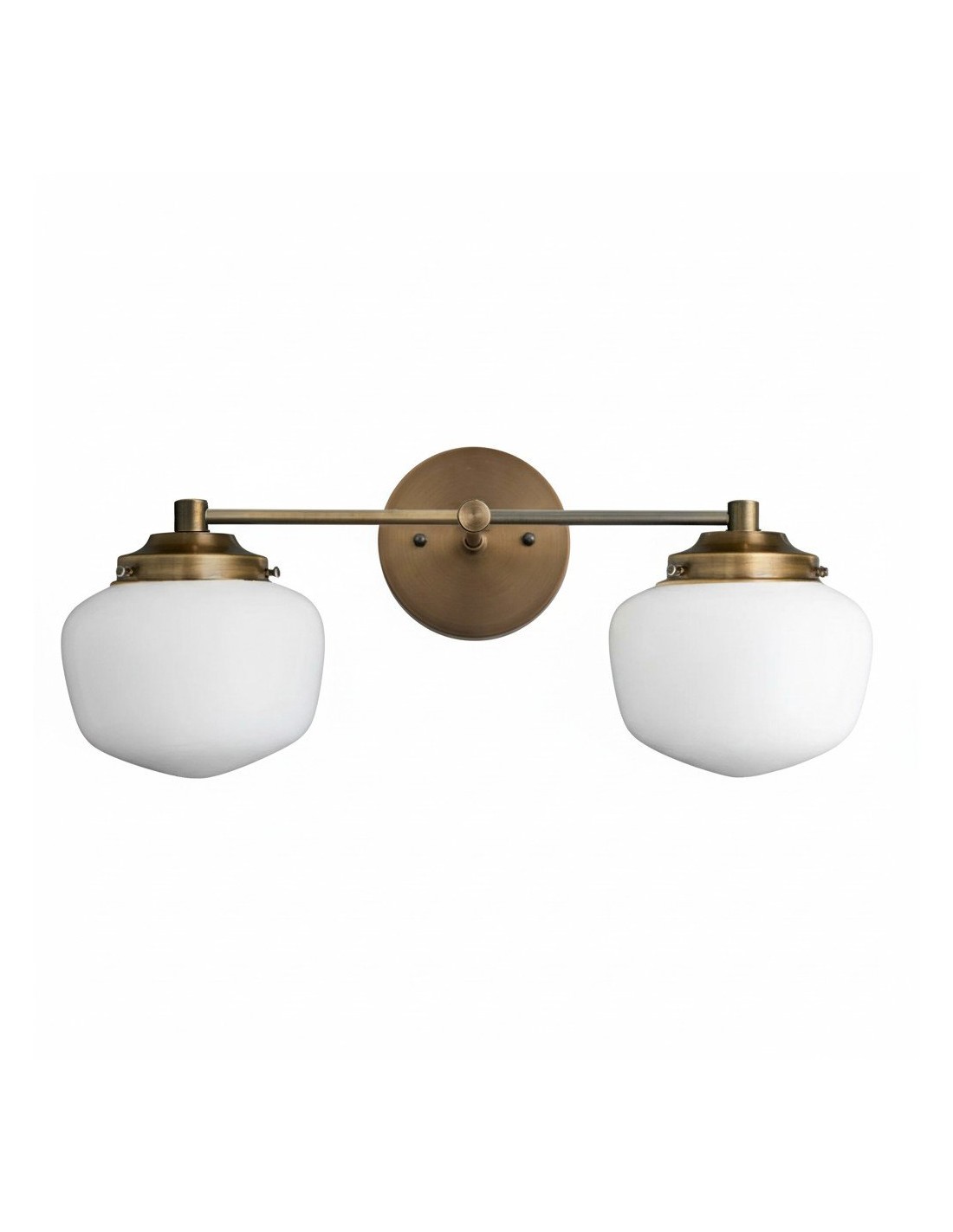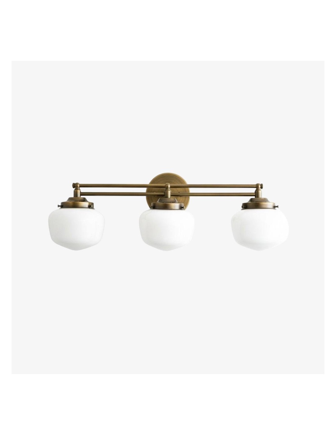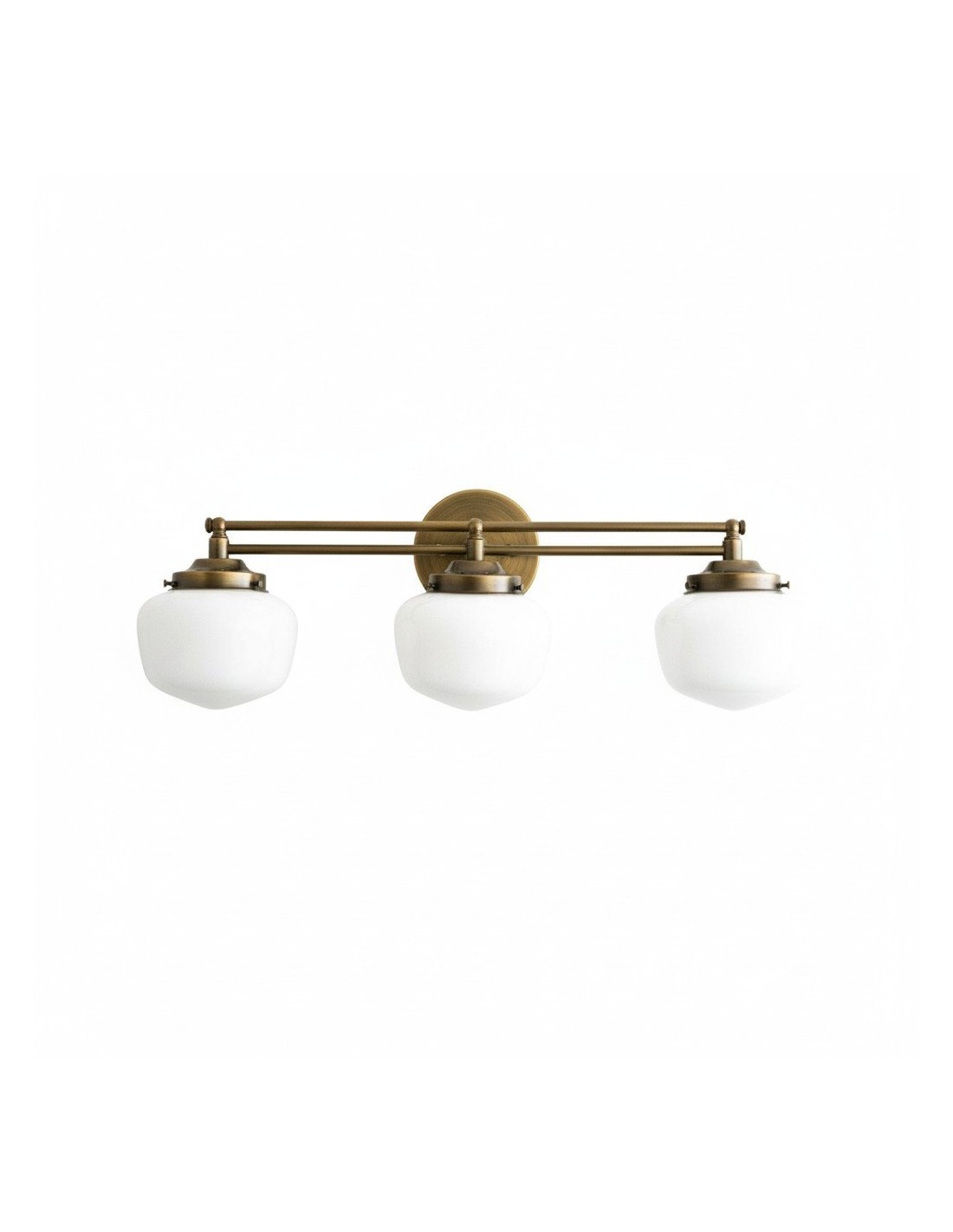 Verfraai uw badkamerinterieur met deze Art Deco-badkamerlamp, vervaardigd met elegante glazen bollen in schoolgebouwstijl en een decoratief ontwerp met dubbele stang. Perfect boven een spiegel of wastafel, combineert deze tijdloze wandlamp vintage charme met moderne functionaliteit voor een verfijnde touch.