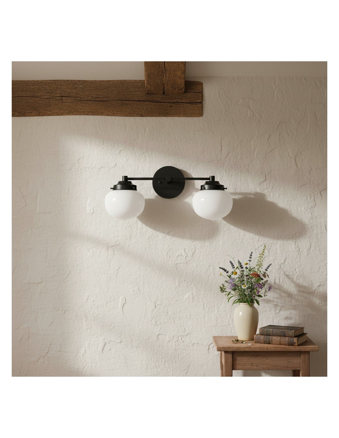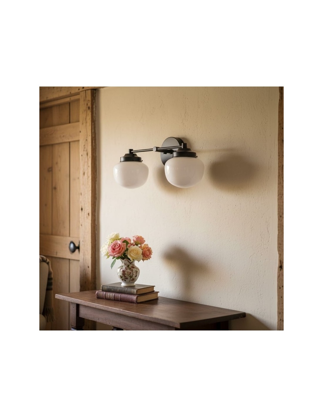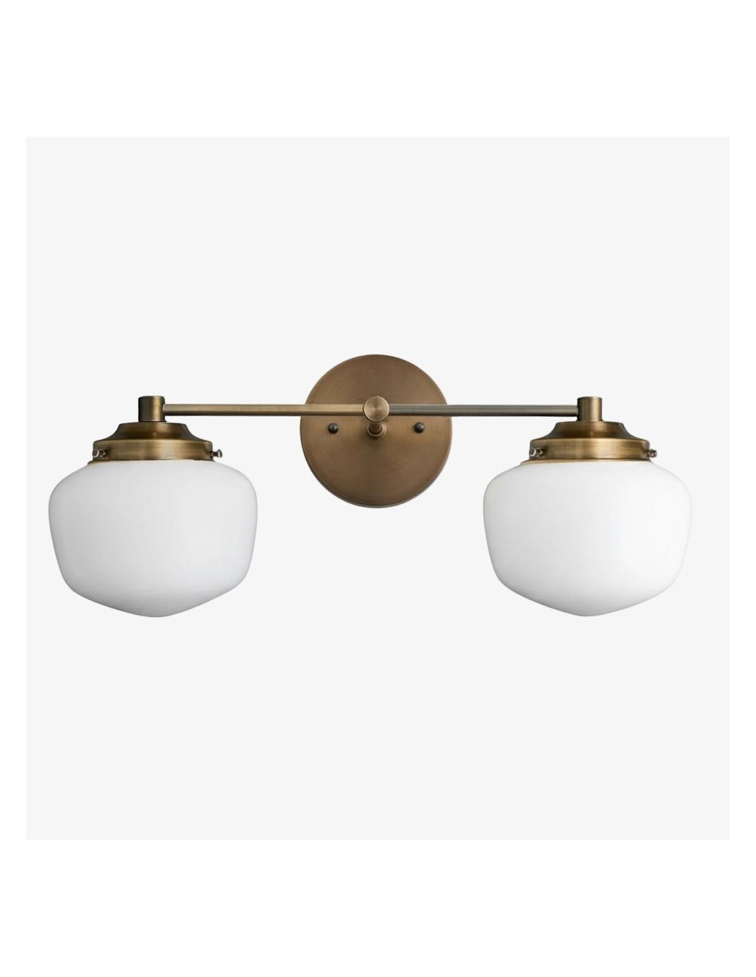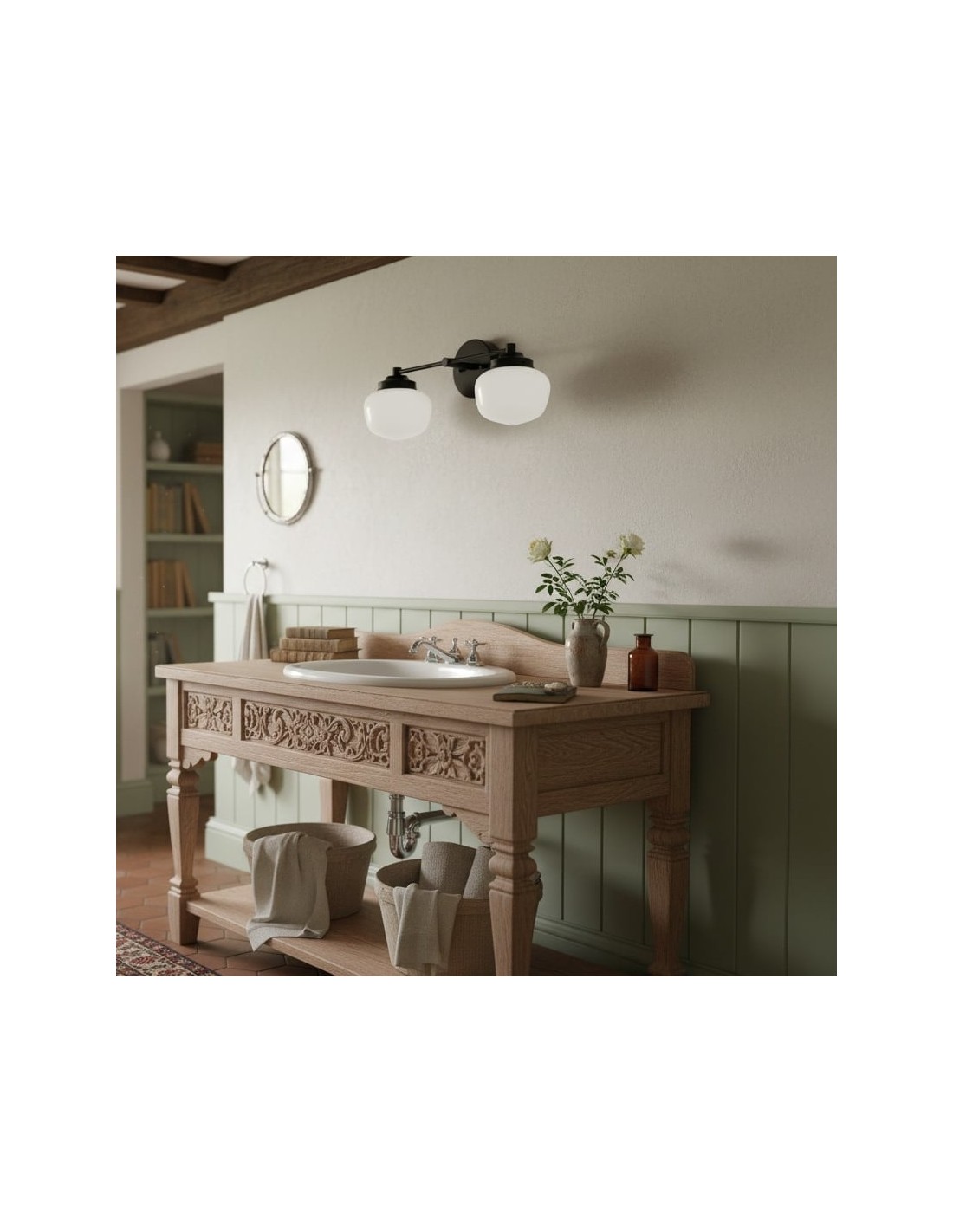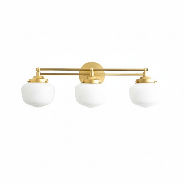 Verfraai uw badkamerinterieur met deze Art Deco-badkamerlamp, vervaardigd met elegante glazen bollen in schoolgebouwstijl en een decoratief ontwerp met dubbele stang. Perfect boven een spiegel of wastafel, combineert deze tijdloze wandlamp vintage charme met moderne functionaliteit voor een verfijnde touch.