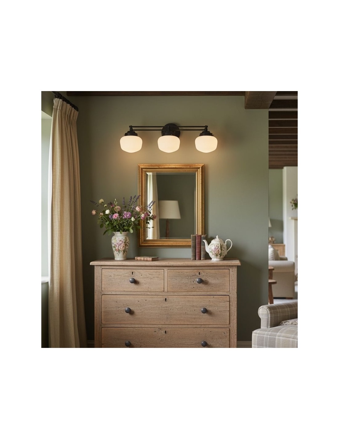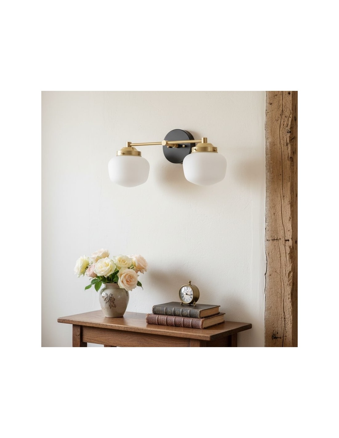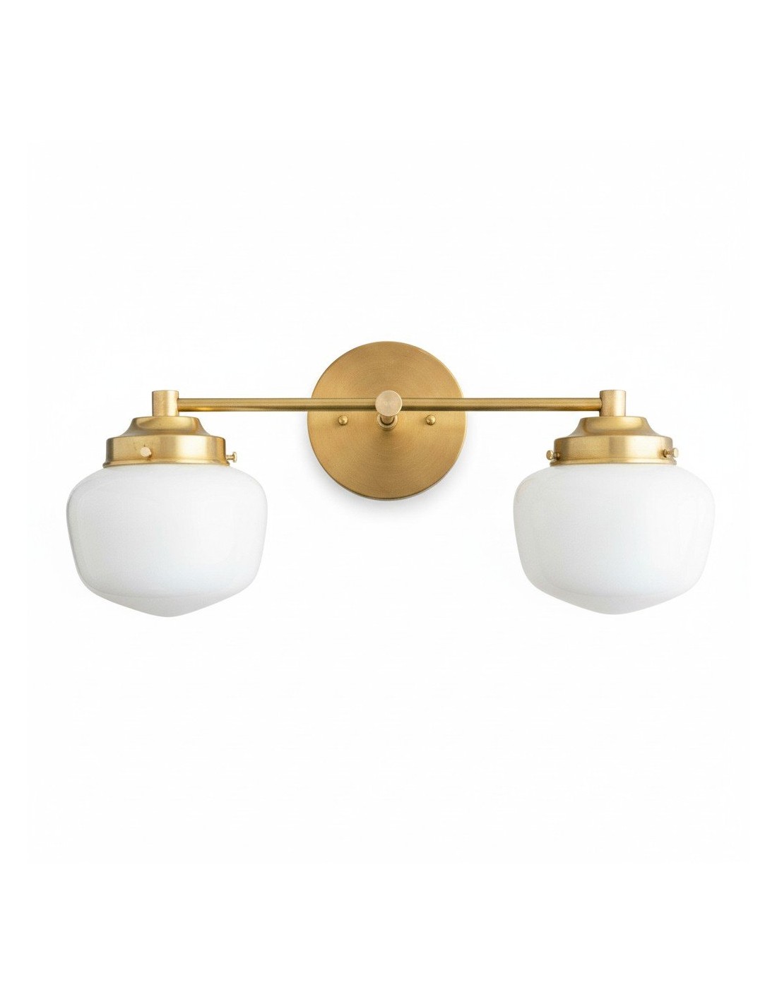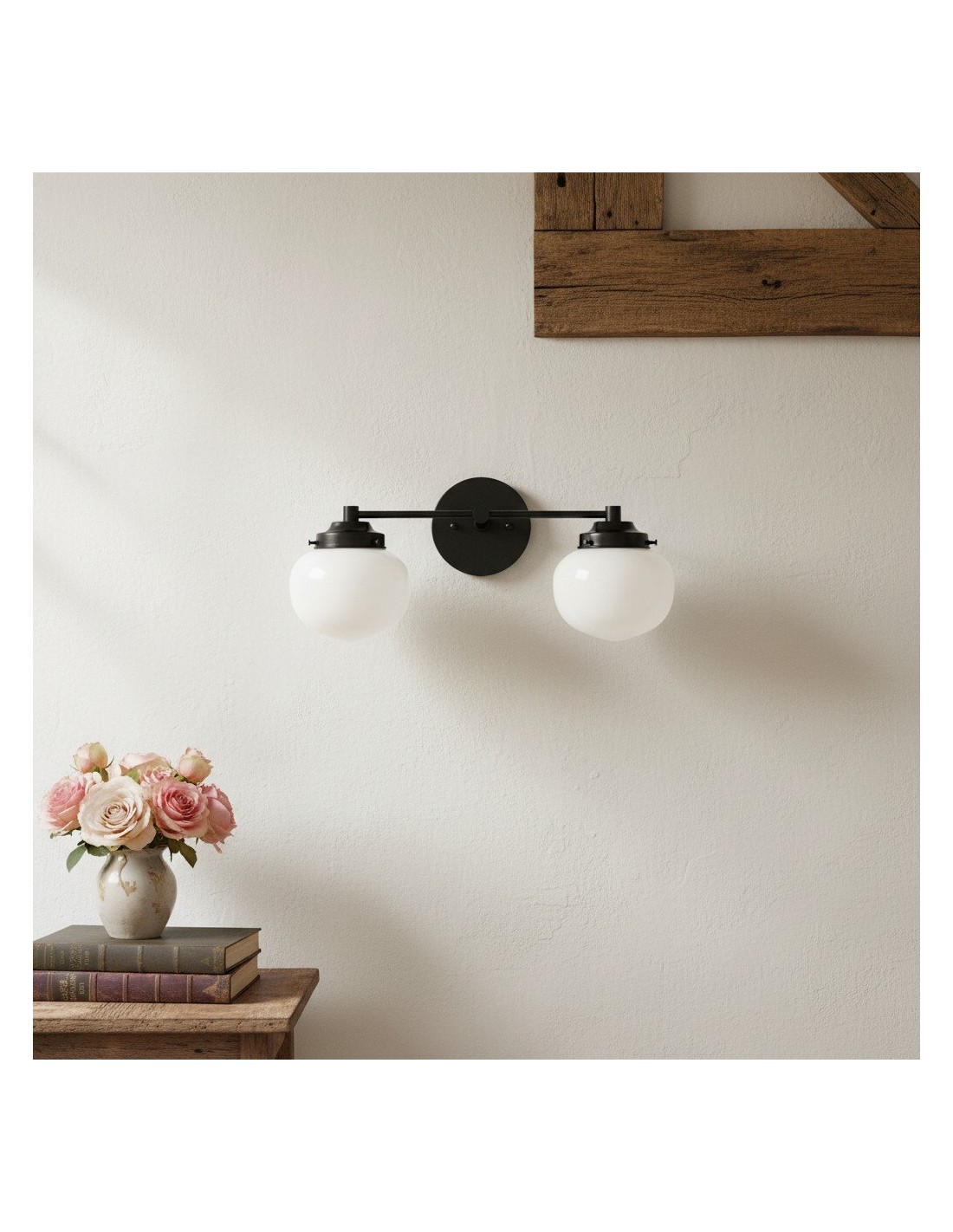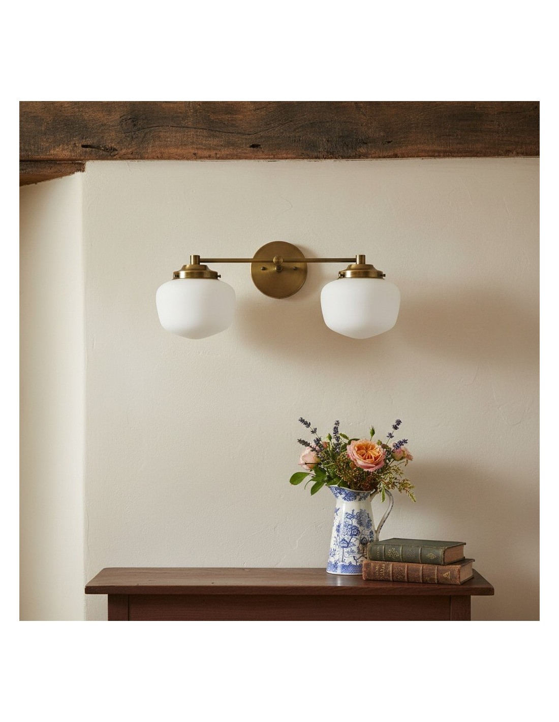 Verfraai uw badkamerinterieur met deze Art Deco-badkamerlamp, vervaardigd met elegante glazen bollen in schoolgebouwstijl en een decoratief ontwerp met dubbele stang. Perfect boven een spiegel of wastafel, combineert deze tijdloze wandlamp vintage charme met moderne functionaliteit voor een verfijnde touch.