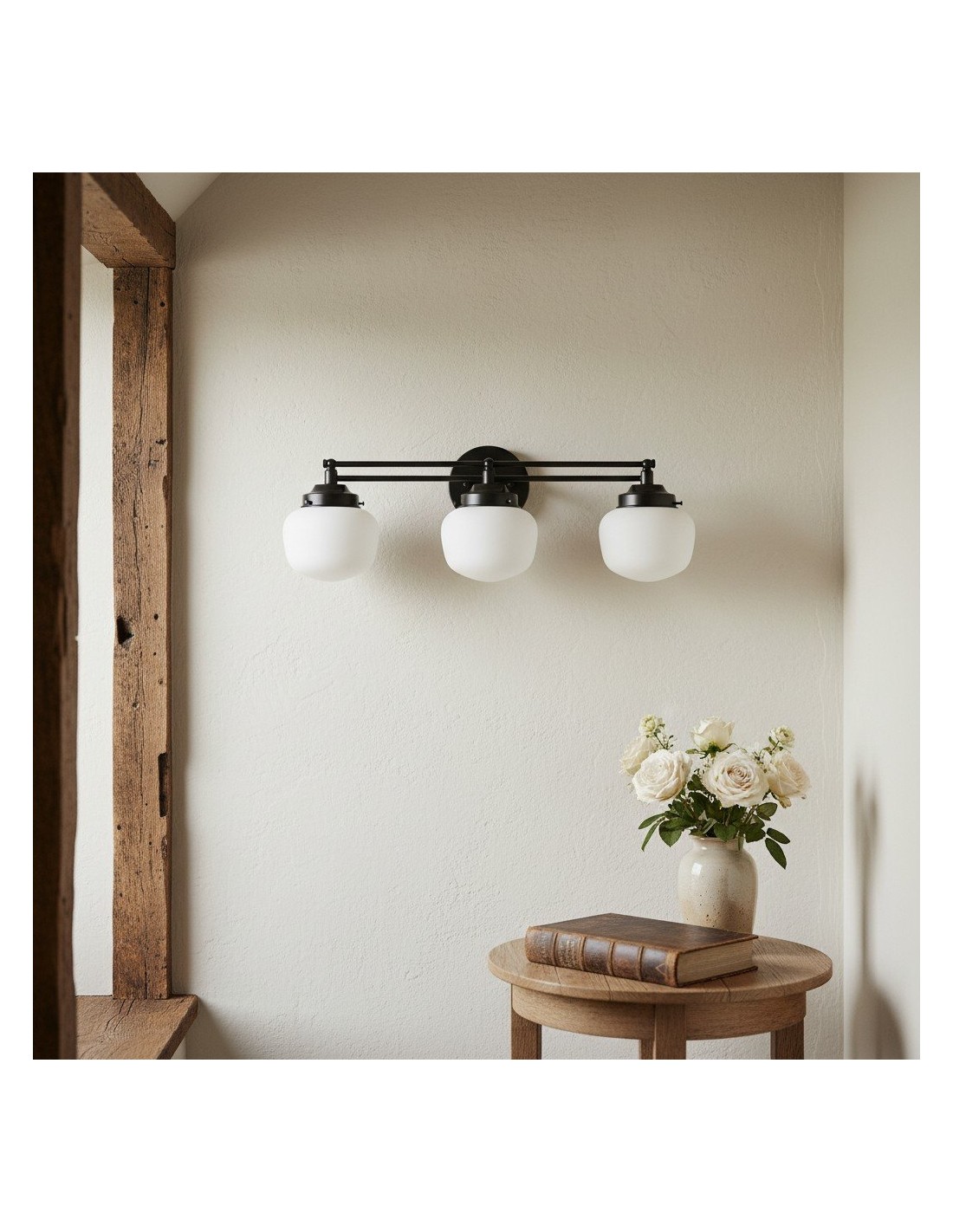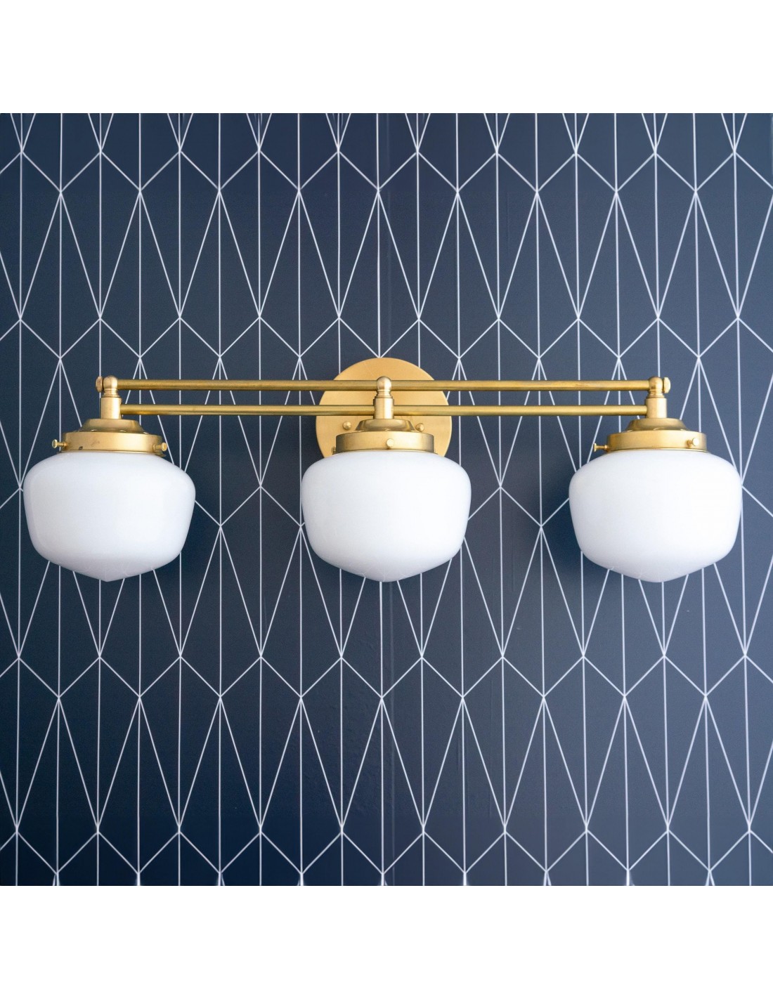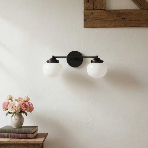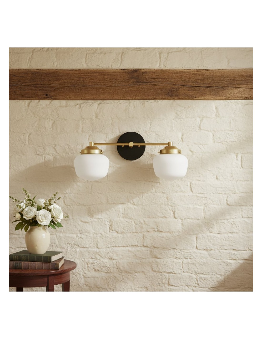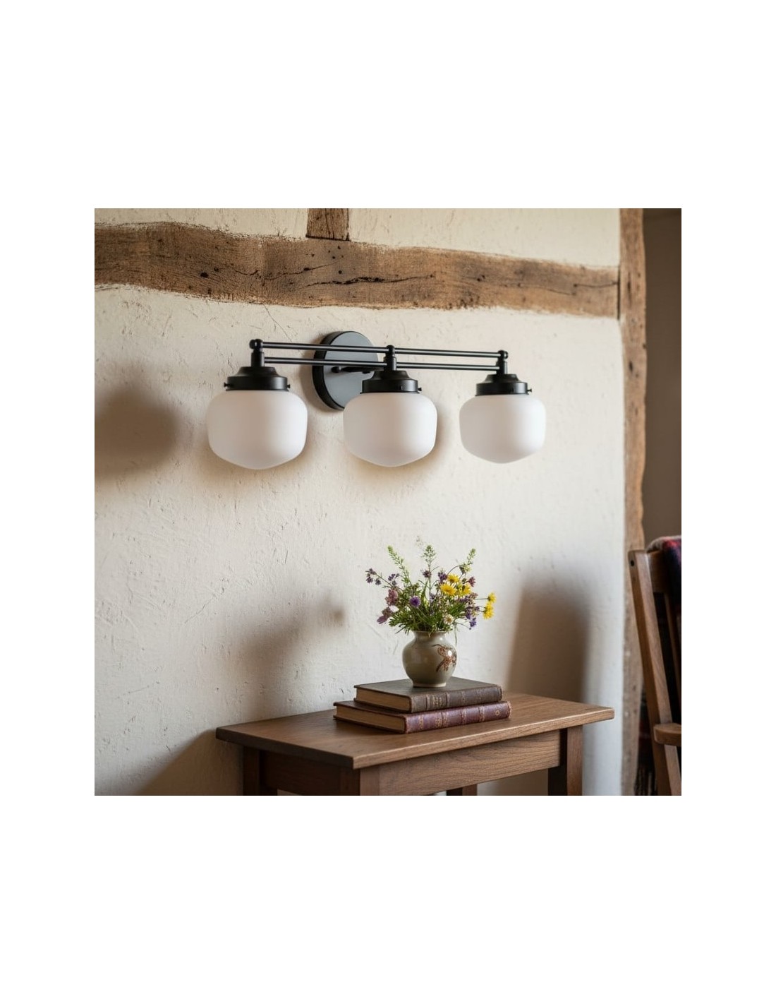 Verfraai uw badkamerinterieur met deze Art Deco-badkamerlamp, vervaardigd met elegante glazen bollen in schoolgebouwstijl en een decoratief ontwerp met dubbele stang. Perfect boven een spiegel of wastafel, combineert deze tijdloze wandlamp vintage charme met moderne functionaliteit voor een verfijnde touch.