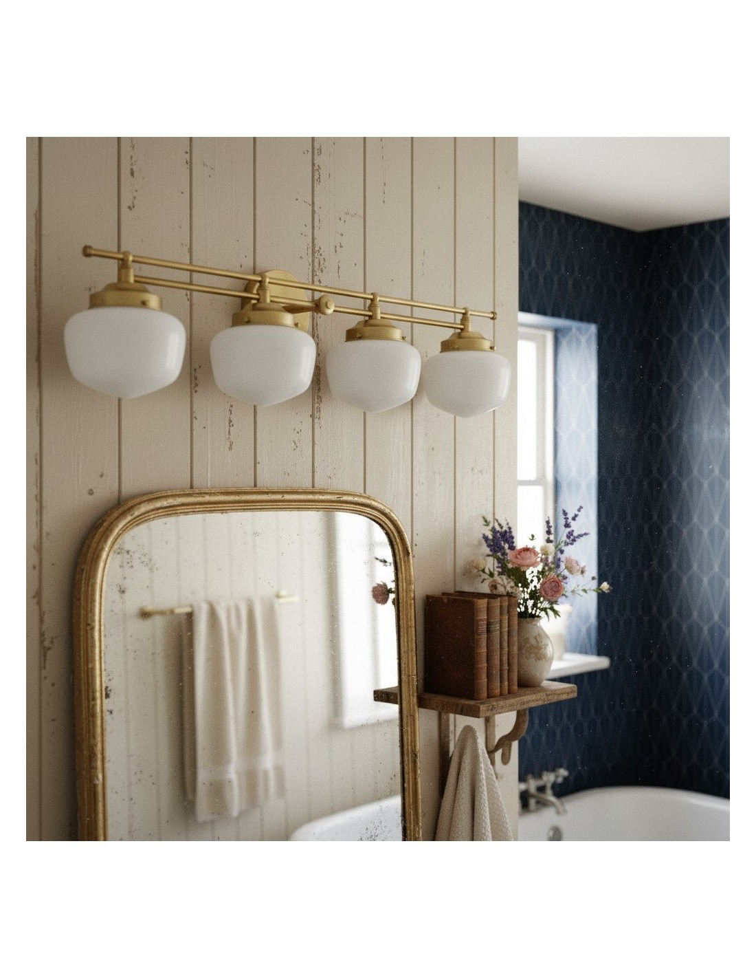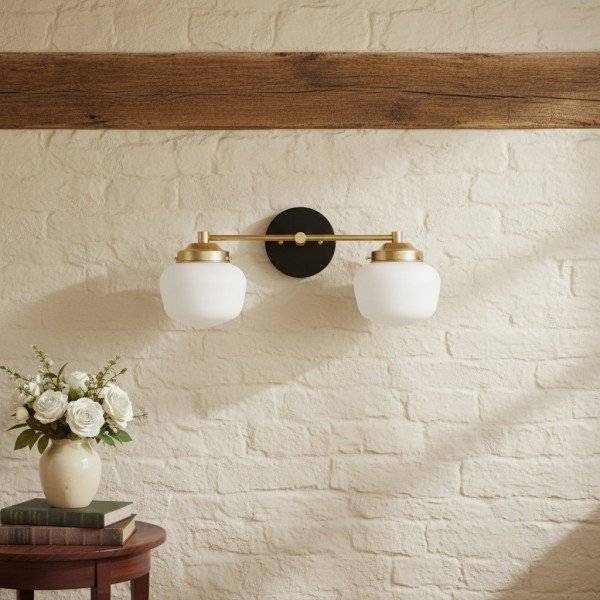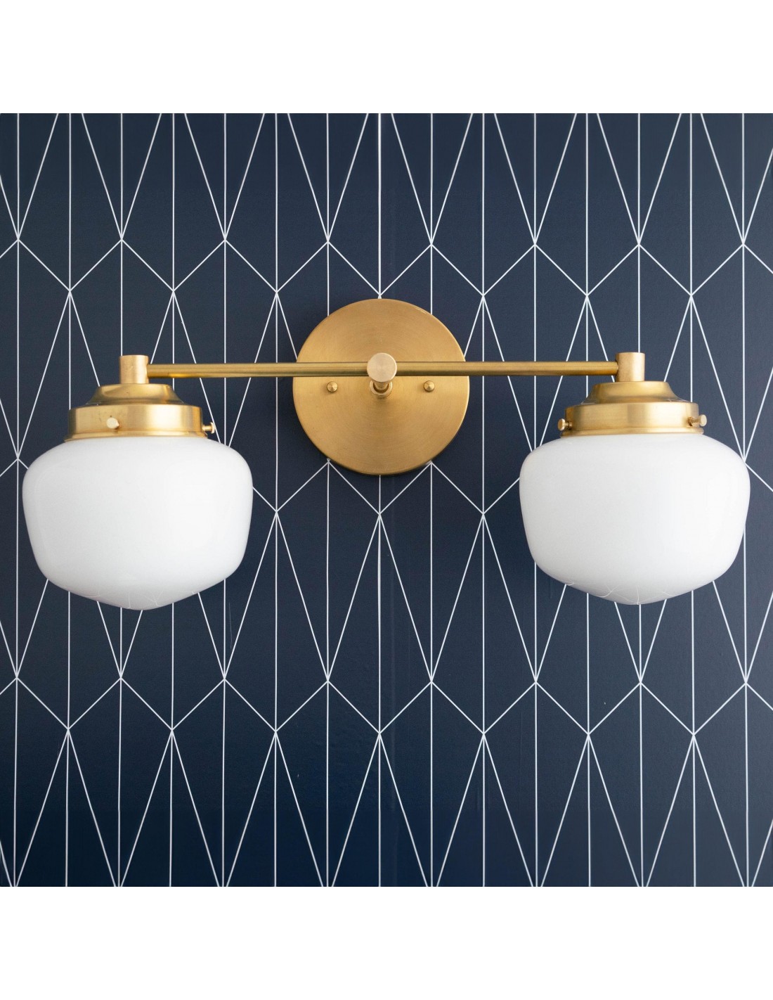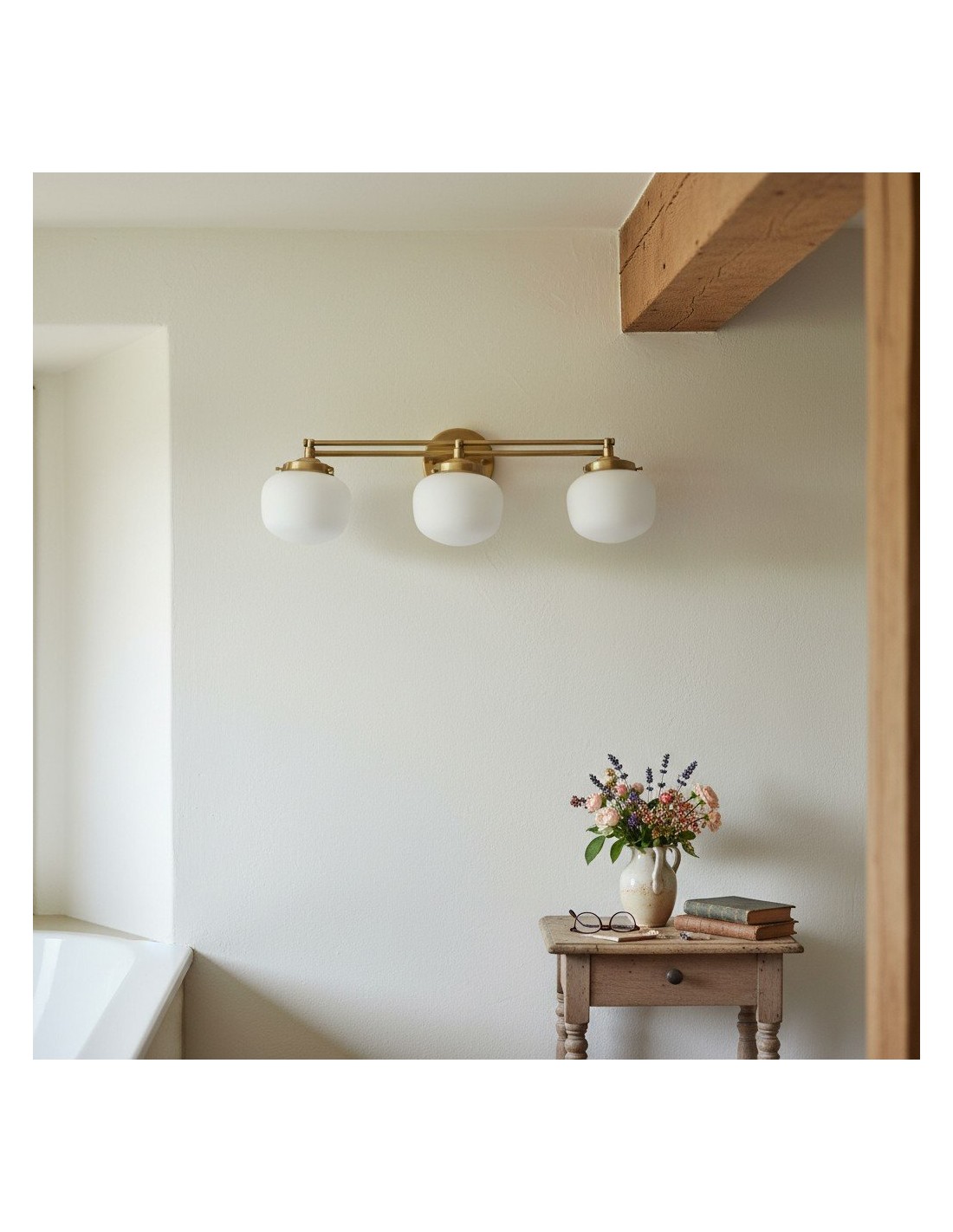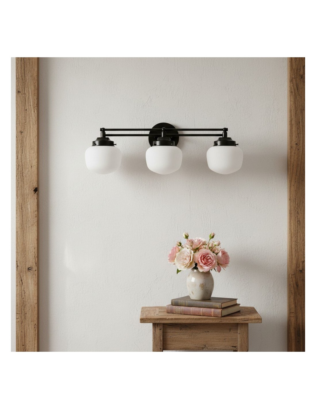 Verfraai uw badkamerinterieur met deze Art Deco-badkamerlamp, vervaardigd met elegante glazen bollen in schoolgebouwstijl en een decoratief ontwerp met dubbele stang. Perfect boven een spiegel of wastafel, combineert deze tijdloze wandlamp vintage charme met moderne functionaliteit voor een verfijnde touch.