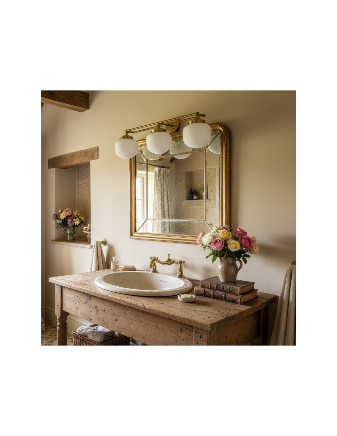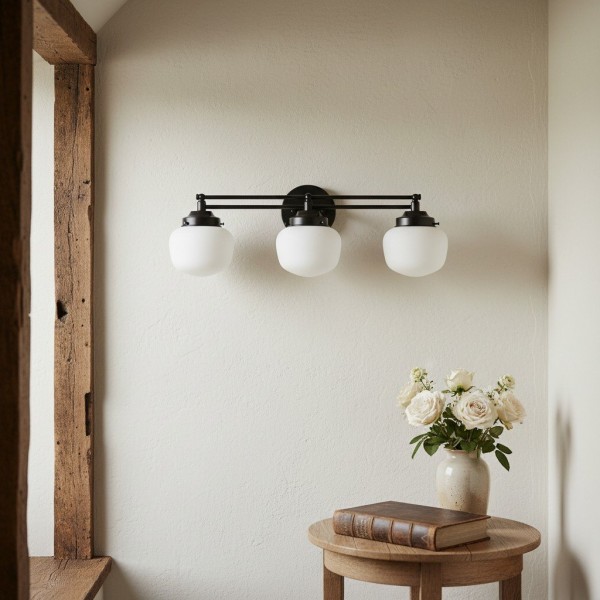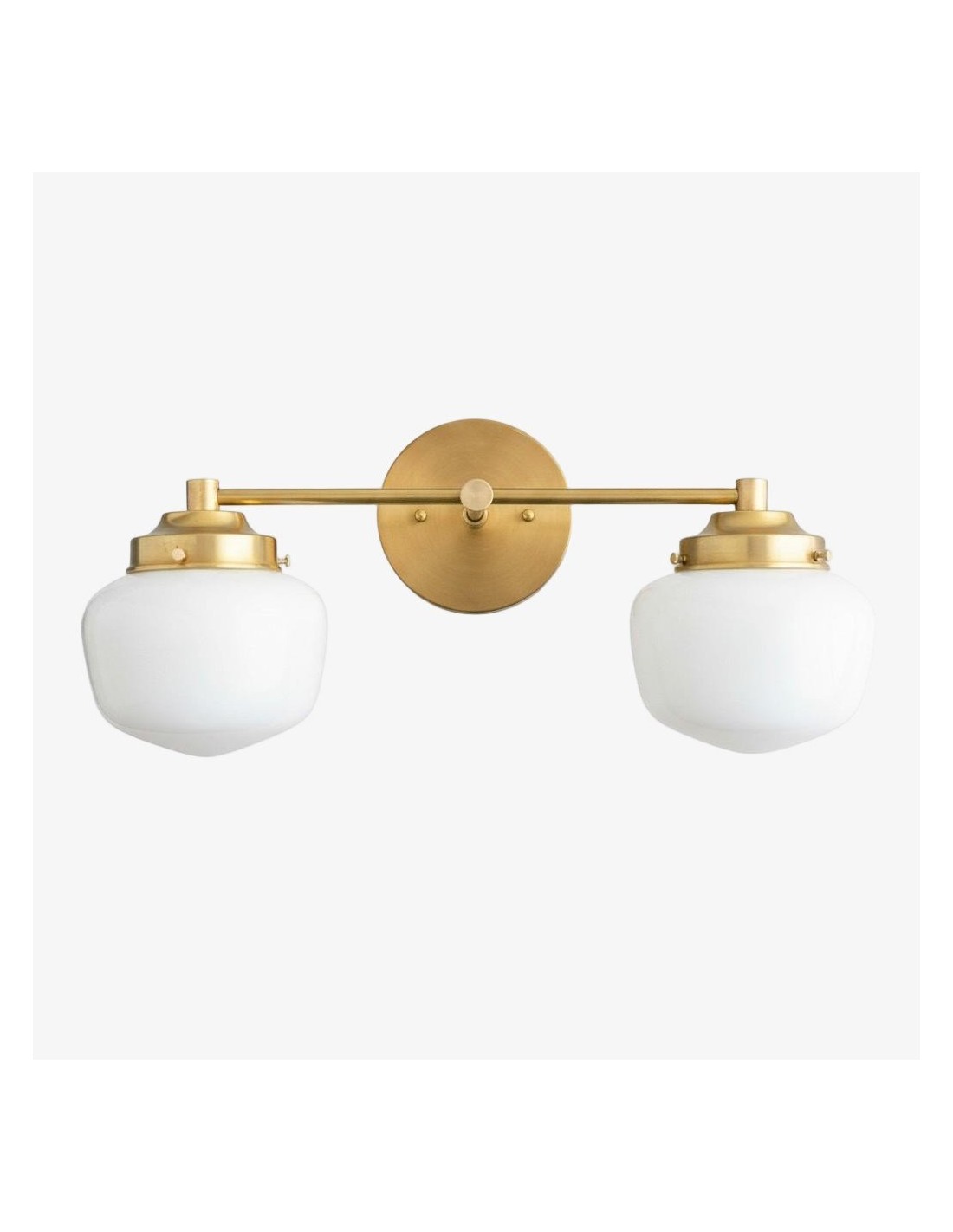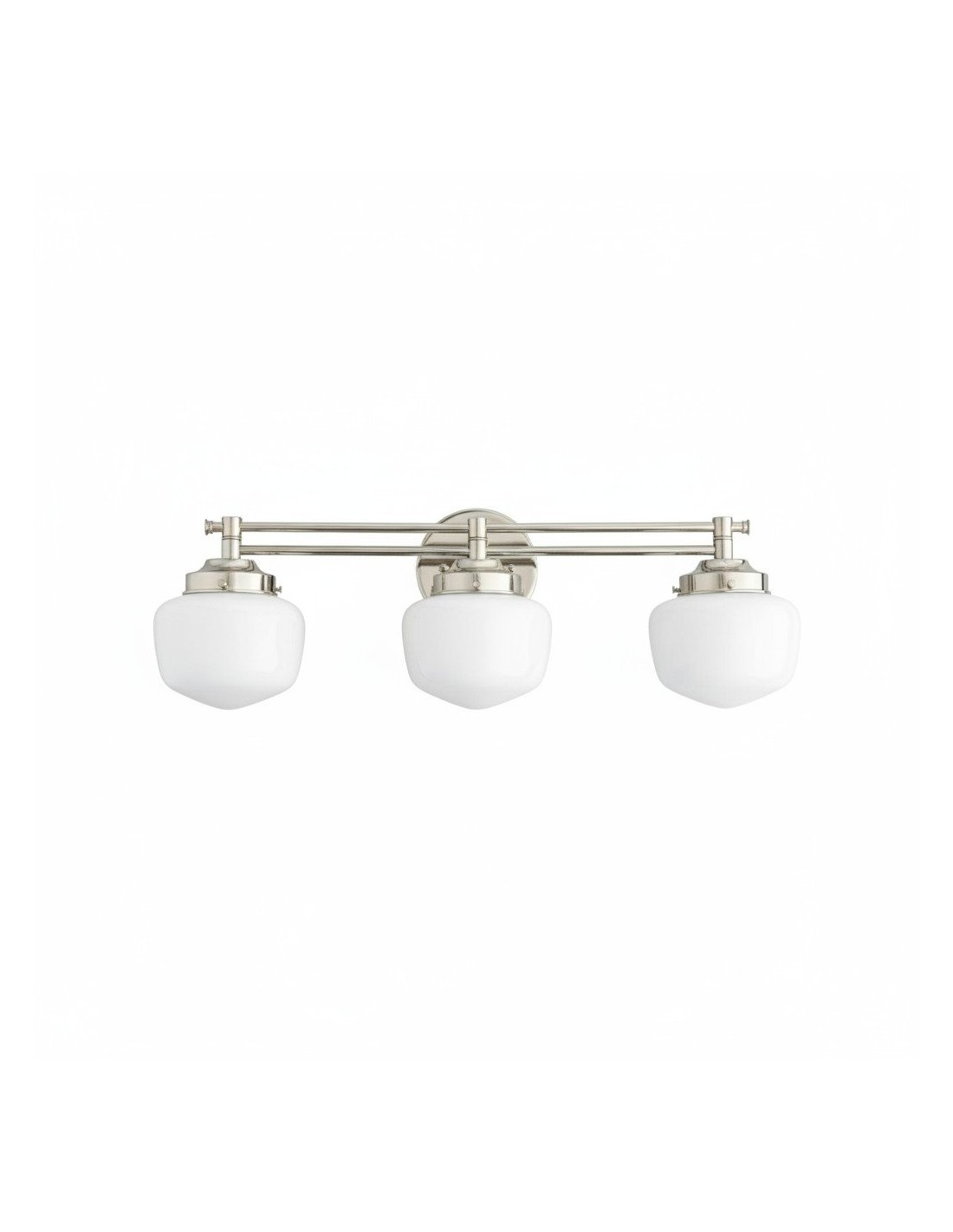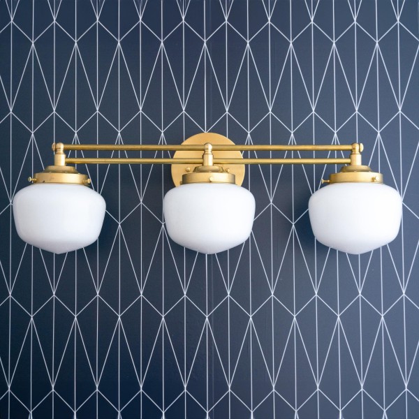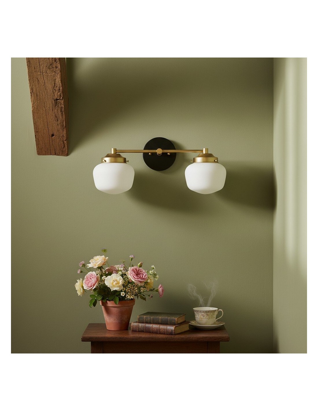 Verfraai uw badkamerinterieur met deze Art Deco-badkamerlamp, vervaardigd met elegante glazen bollen in schoolgebouwstijl en een decoratief ontwerp met dubbele stang. Perfect boven een spiegel of wastafel, combineert deze tijdloze wandlamp vintage charme met moderne functionaliteit voor een verfijnde touch.