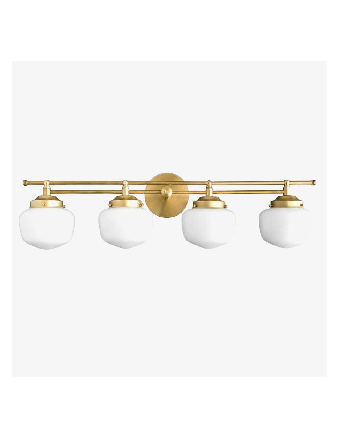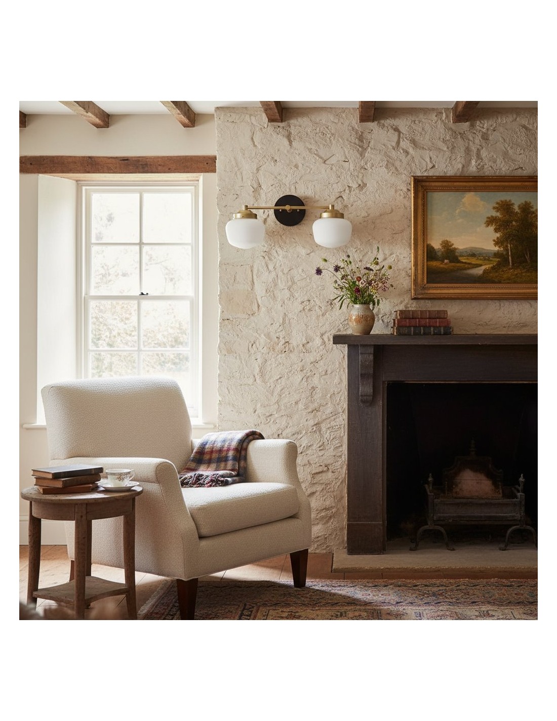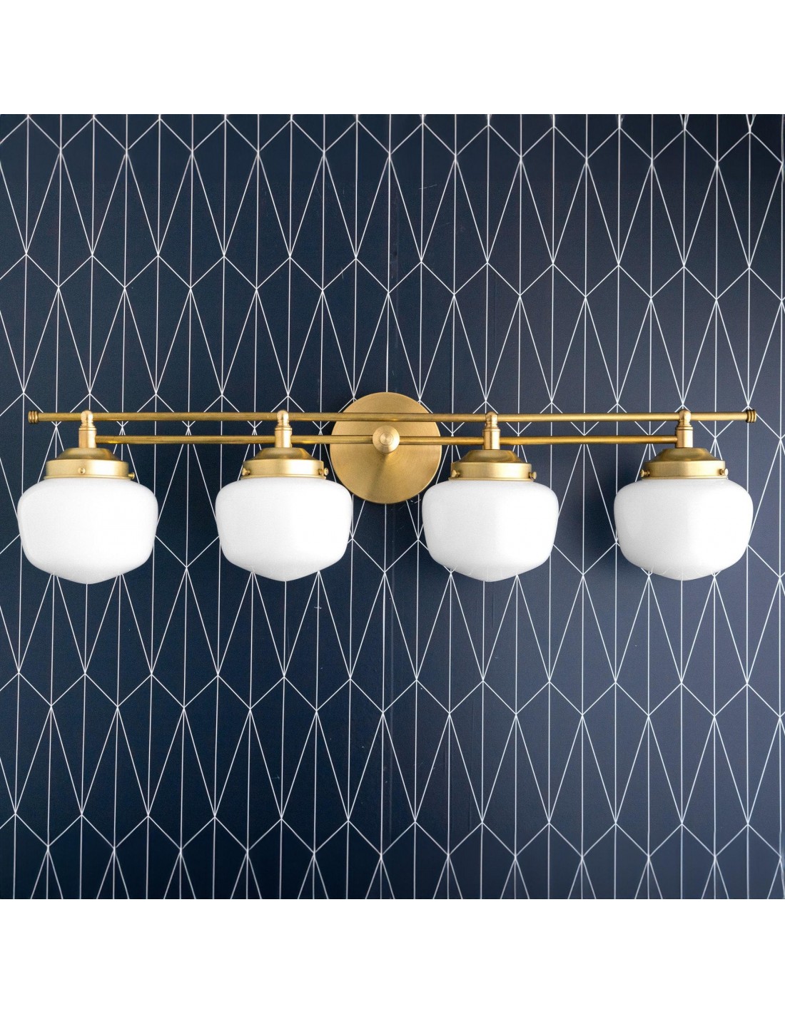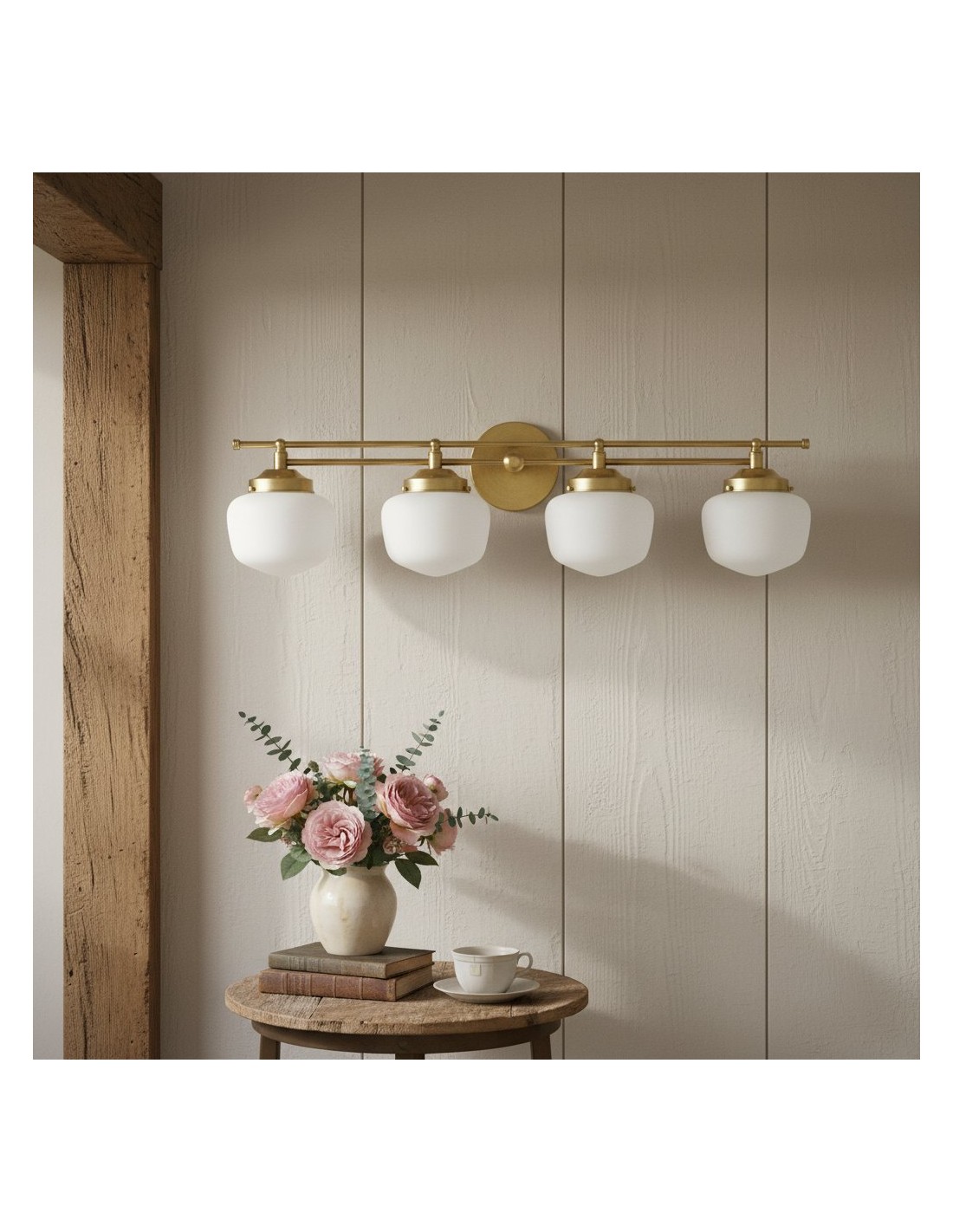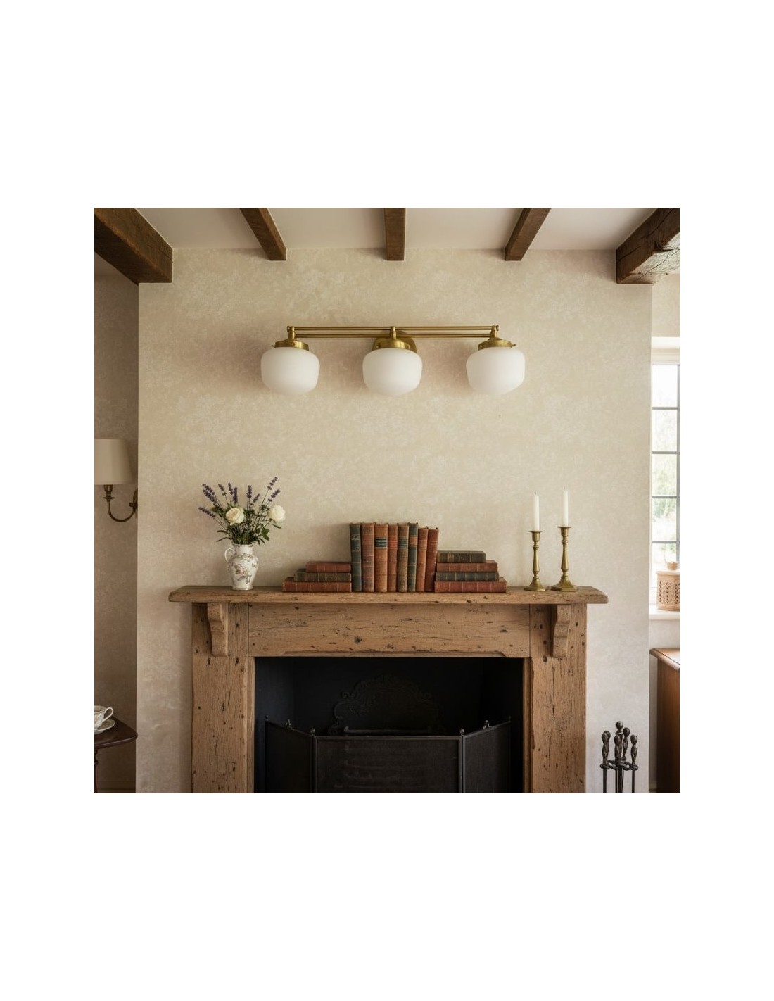 Verfraai uw badkamerinterieur met deze Art Deco-badkamerlamp, vervaardigd met elegante glazen bollen in schoolgebouwstijl en een decoratief ontwerp met dubbele stang. Perfect boven een spiegel of wastafel, combineert deze tijdloze wandlamp vintage charme met moderne functionaliteit voor een verfijnde touch.