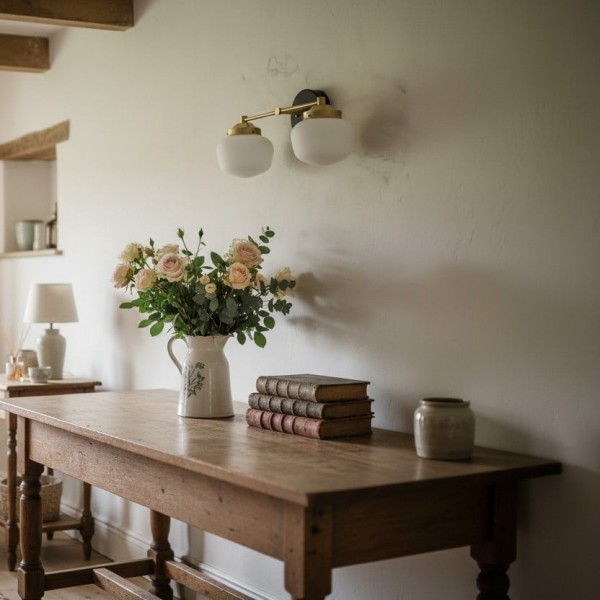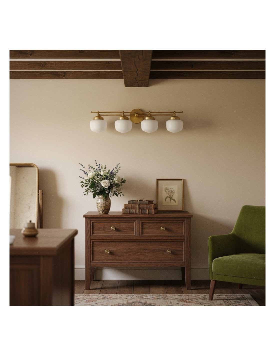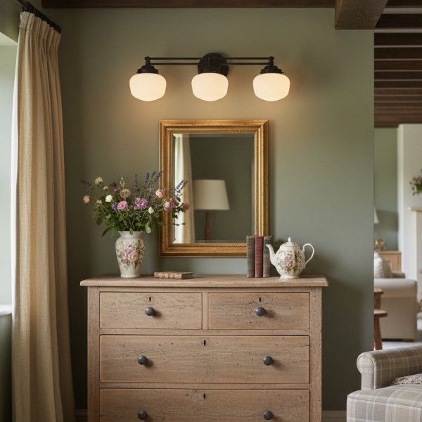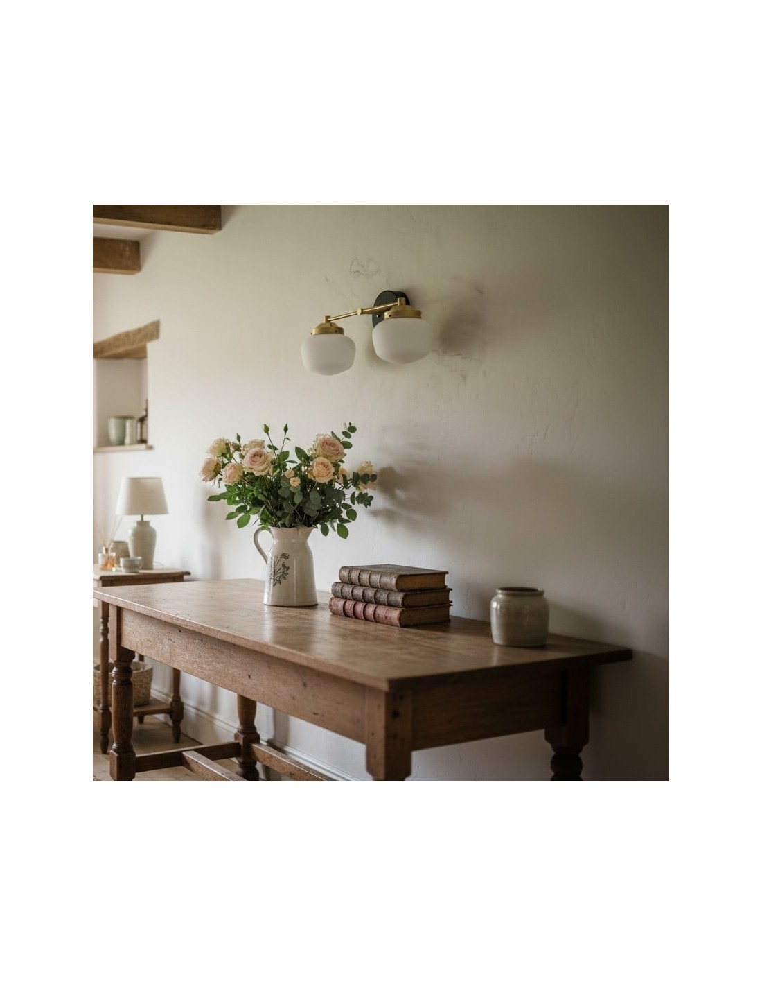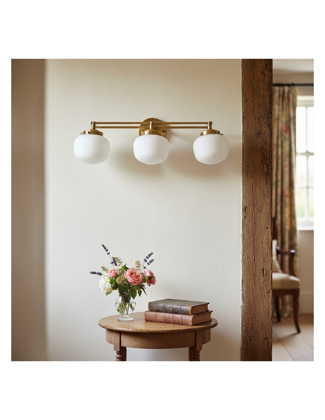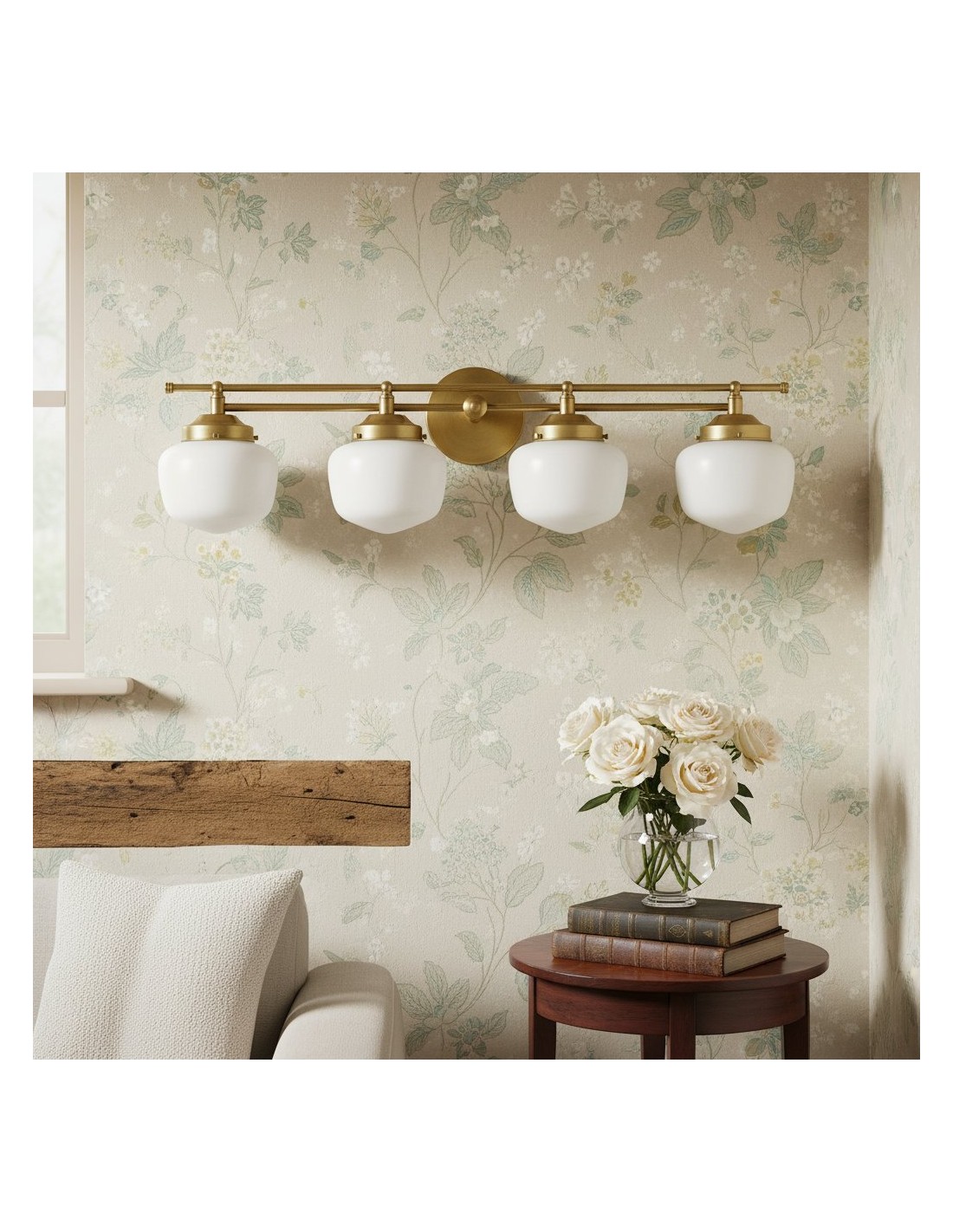 Verfraai uw badkamerinterieur met deze Art Deco-badkamerlamp, vervaardigd met elegante glazen bollen in schoolgebouwstijl en een decoratief ontwerp met dubbele stang. Perfect boven een spiegel of wastafel, combineert deze tijdloze wandlamp vintage charme met moderne functionaliteit voor een verfijnde touch.