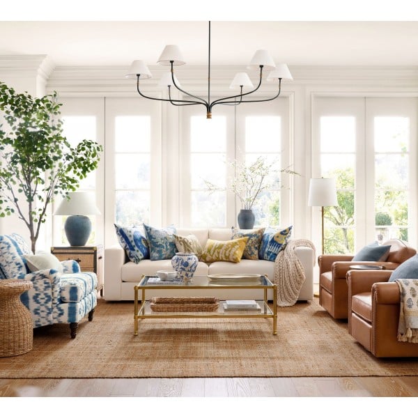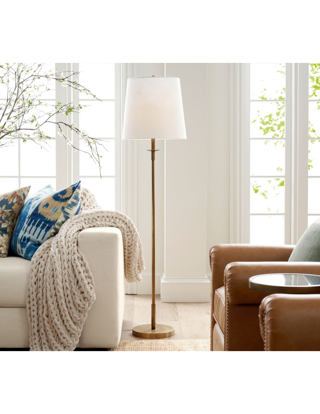 - H 61″ / H 153,7 cm: Inclusief witte linnen lampenkap.
