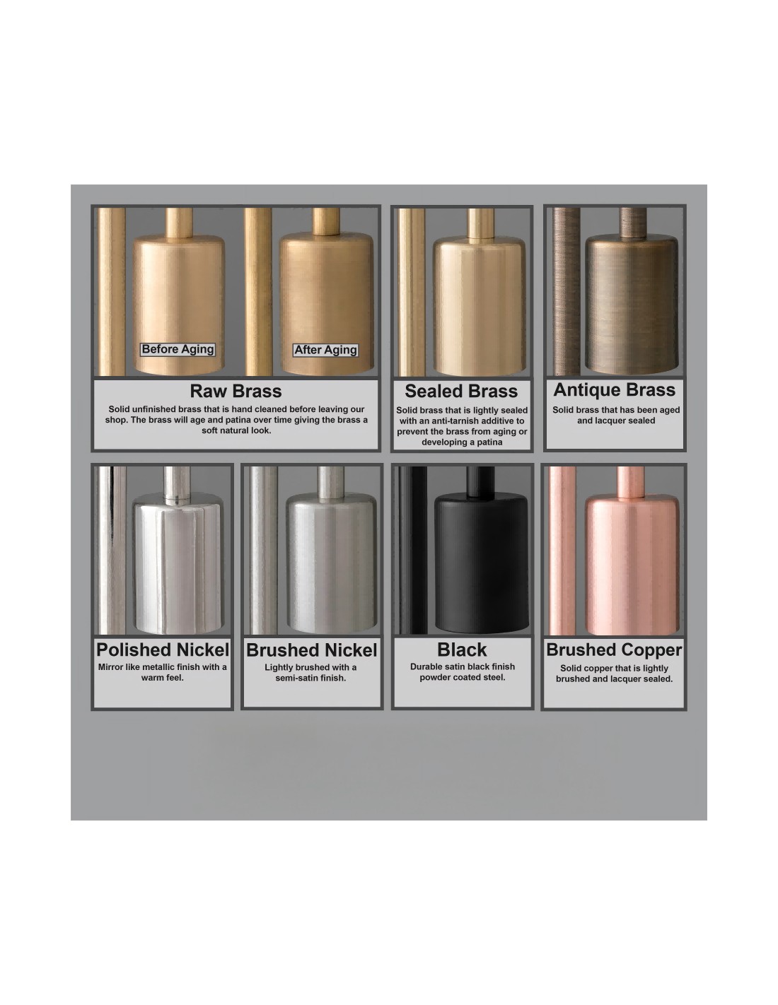 - Verzegeld messing - Massief messing dat licht is verzegeld met een anti-aanslagadditief om te voorkomen dat het messing veroudert of een patina ontwikkelt.