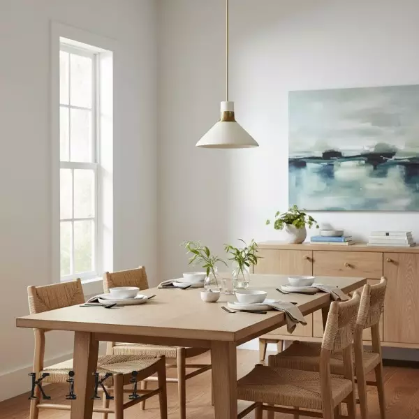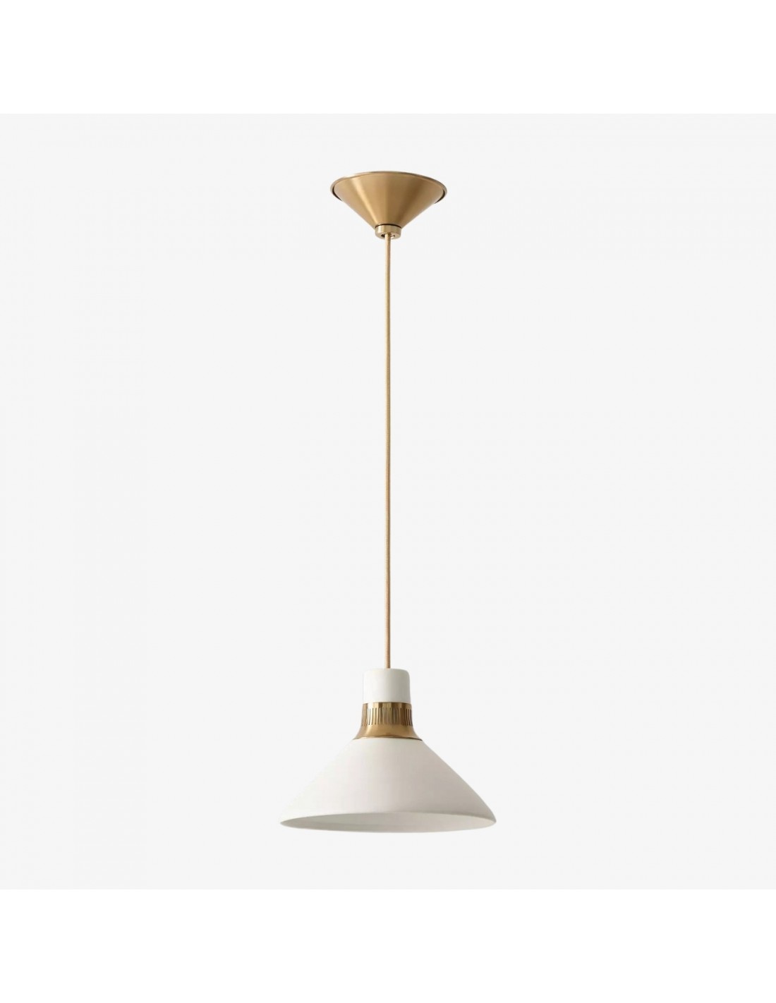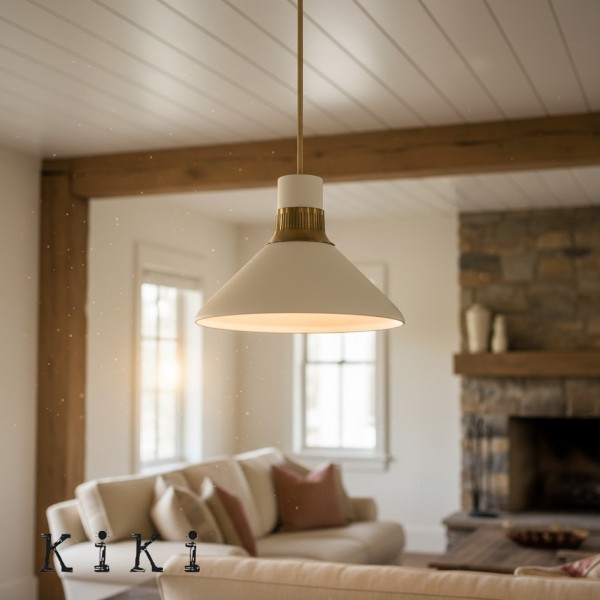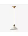 De Calvor porseleinen hanglamp belichaamt verfijnde elegantie en combineert een gladde ivoorkleurige porseleinen kap met een warme champagnebronzen kap en accenten. Het sculpturale silhouet geeft elke ruimte een tijdloze maar toch eigentijdse uitstraling.