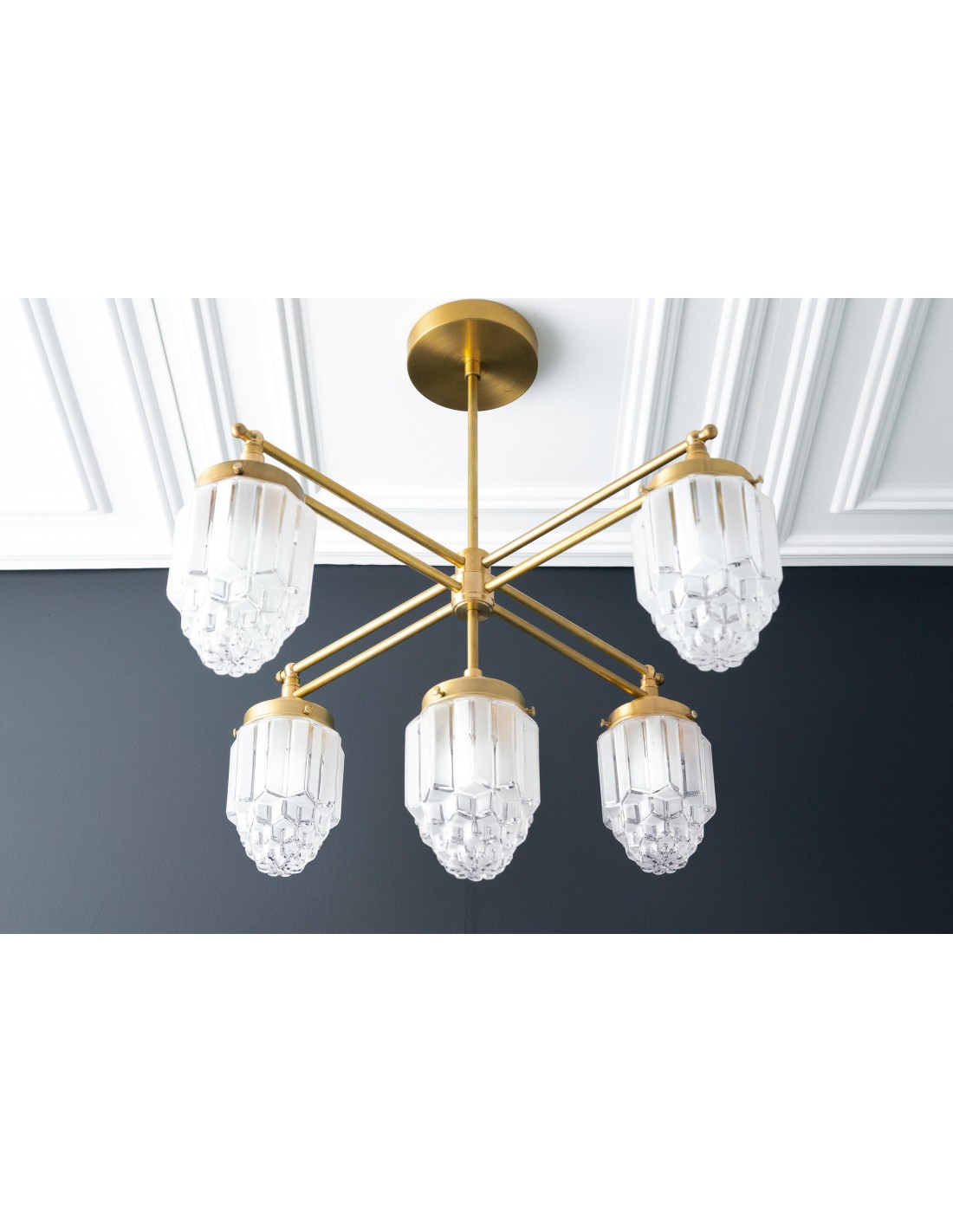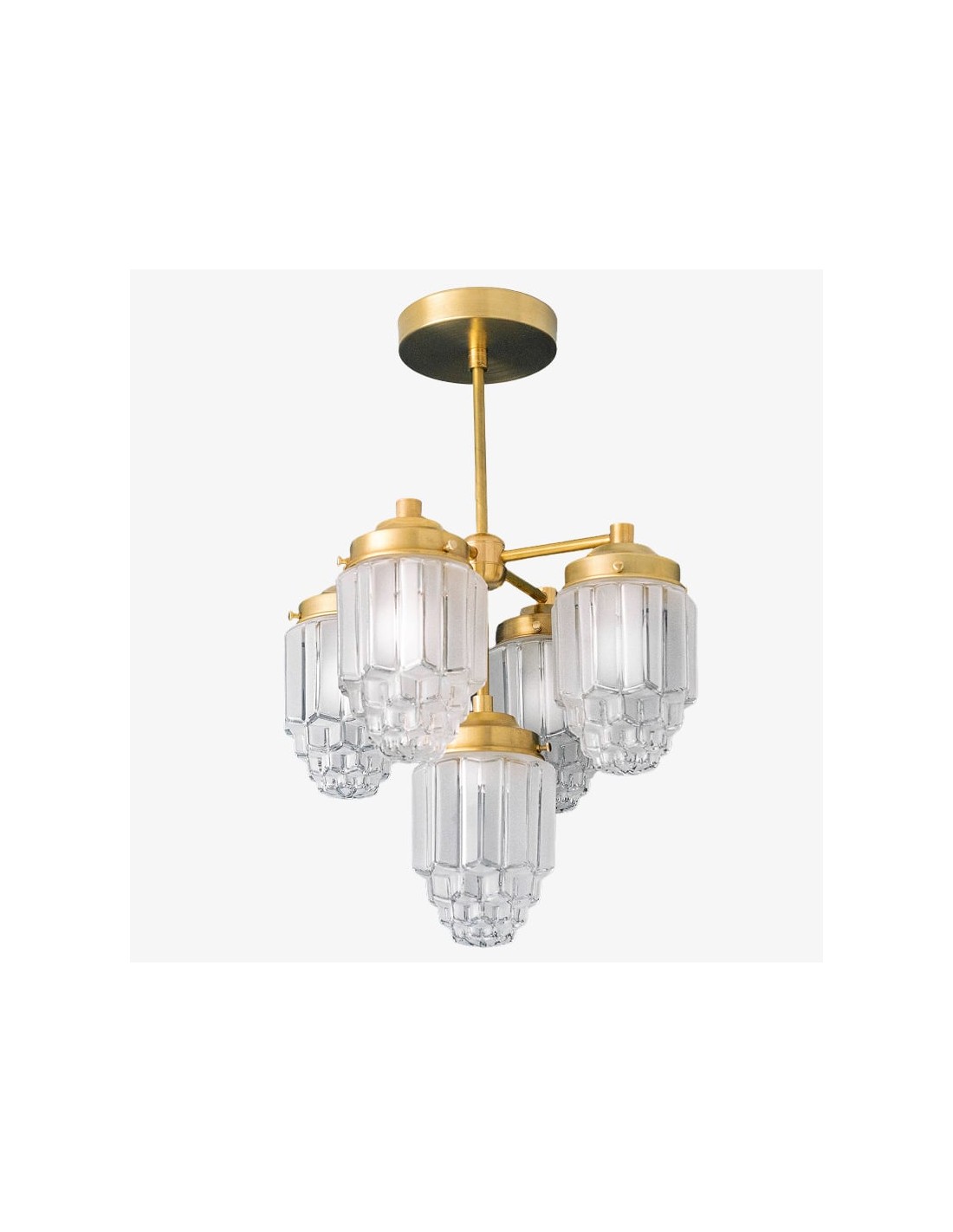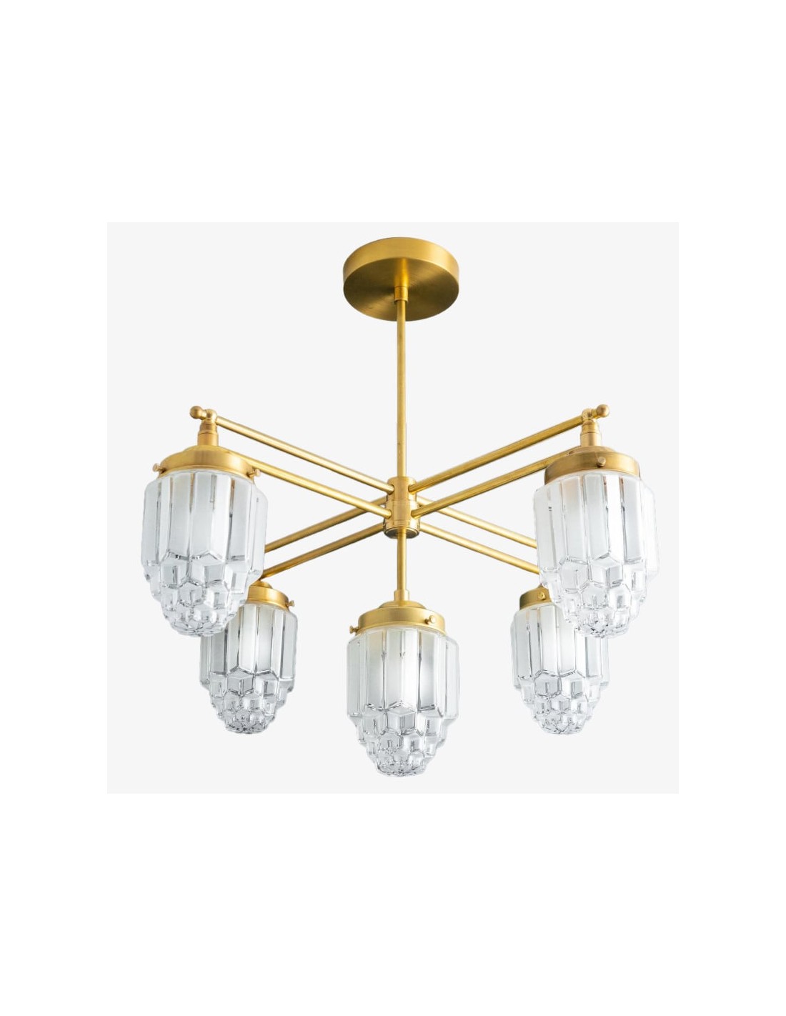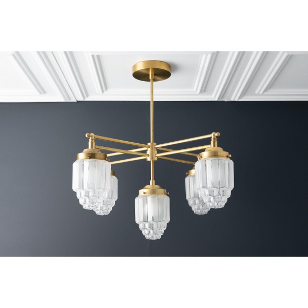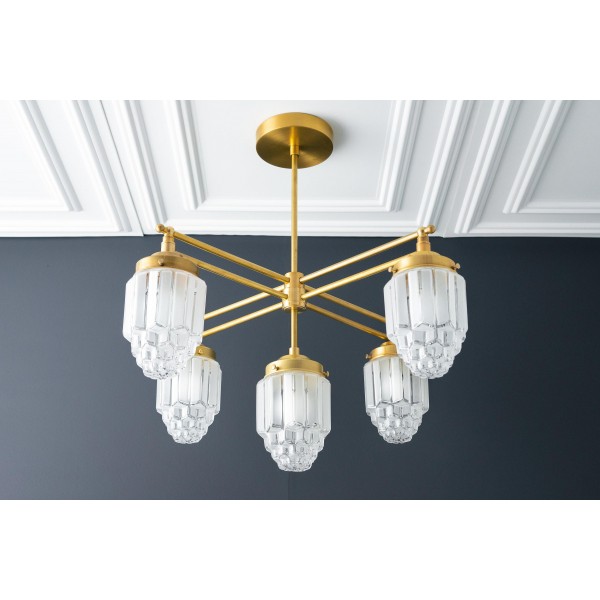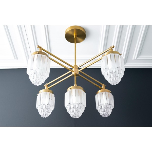 Tierlux glazen kroonluchter - vintage messing bolvormige verlichtingsarmatuur KL1471