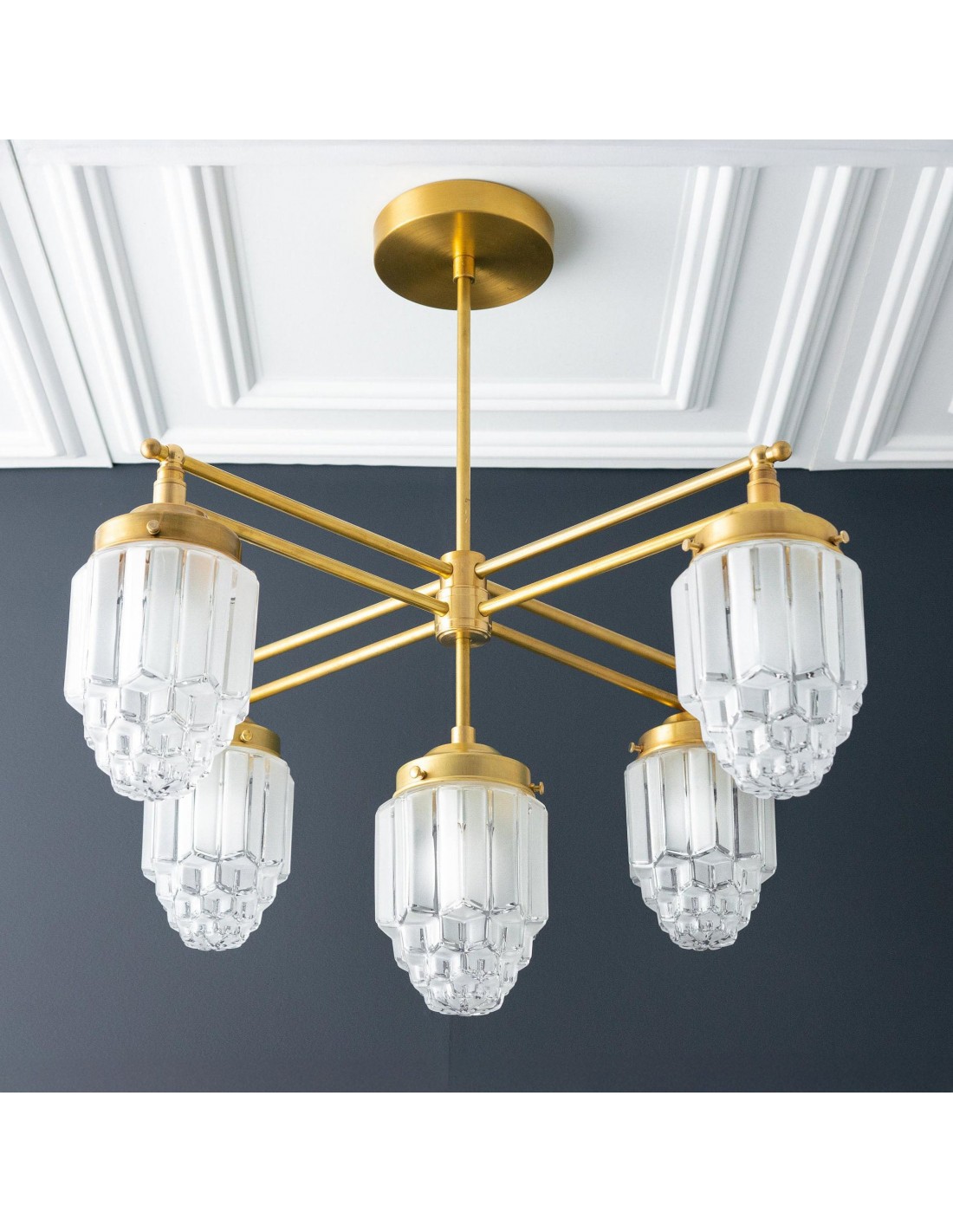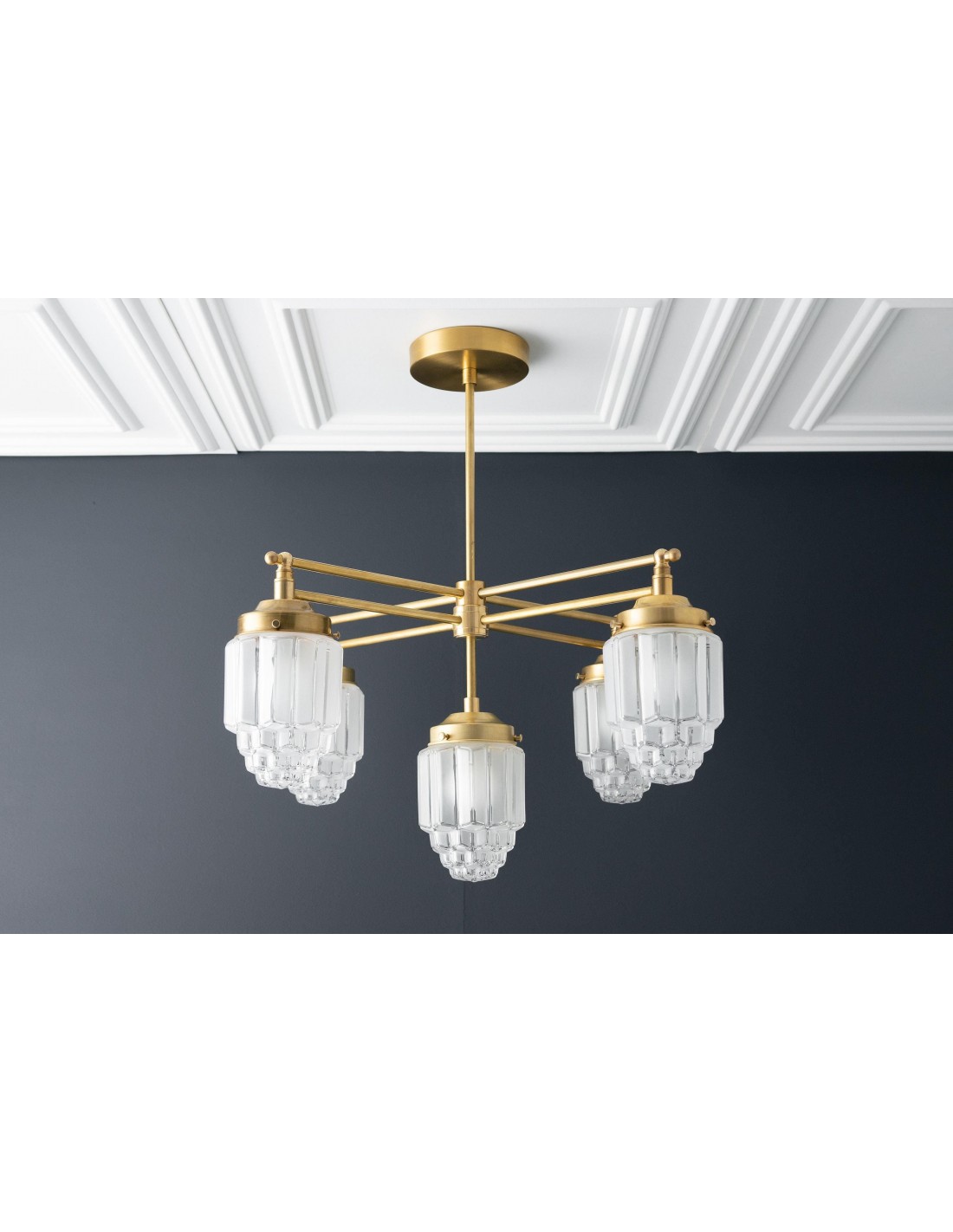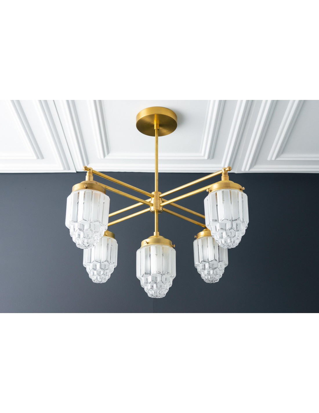Tierlux glazen kroonluchter - vintage messing bolvormige verlichtingsarmatuur KL1471