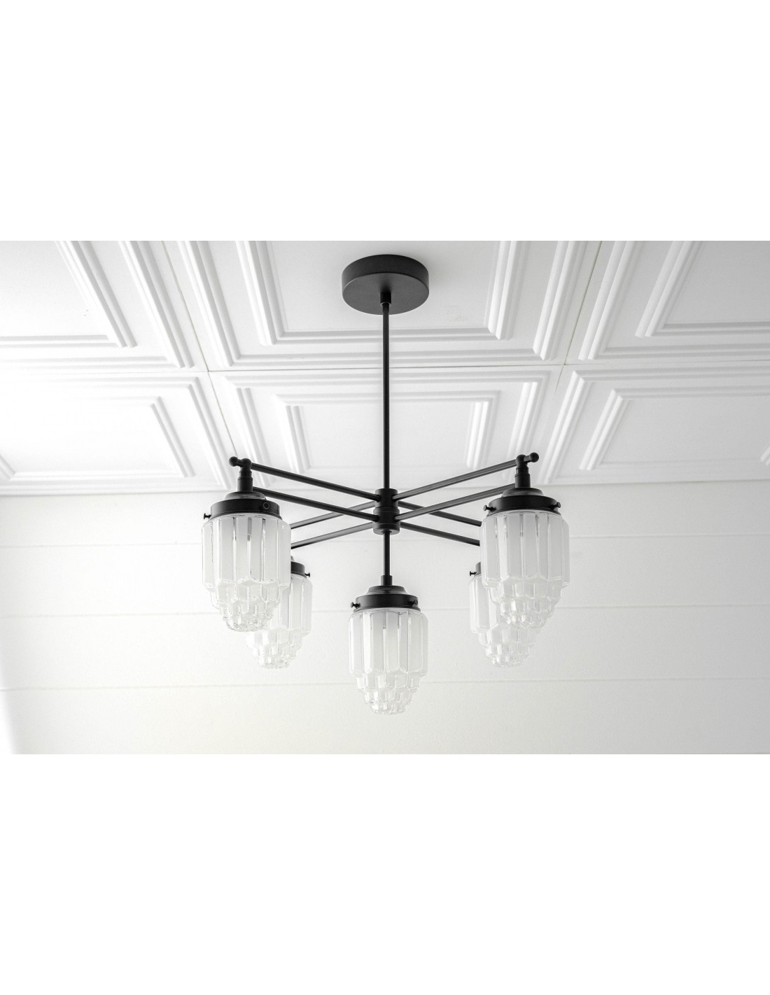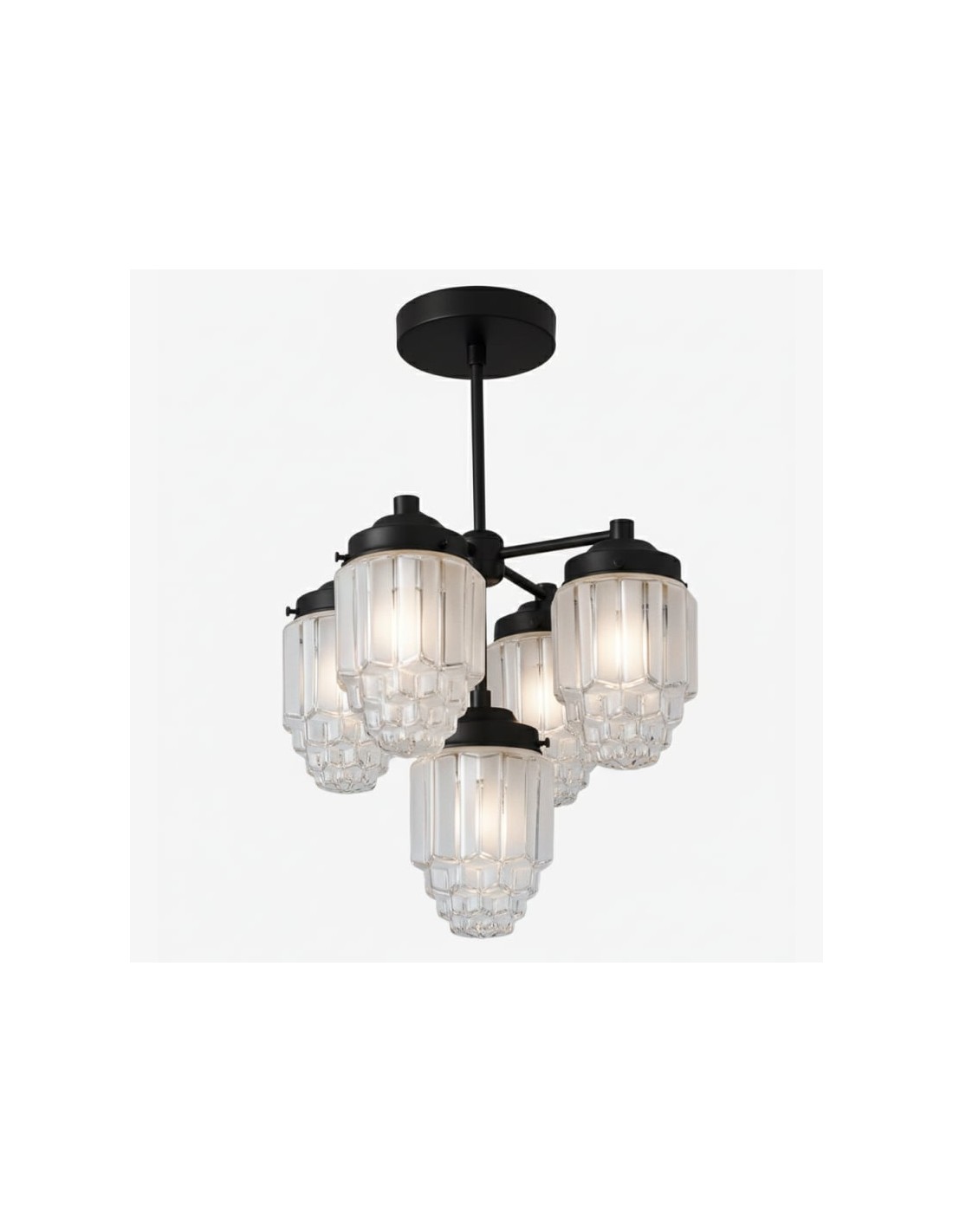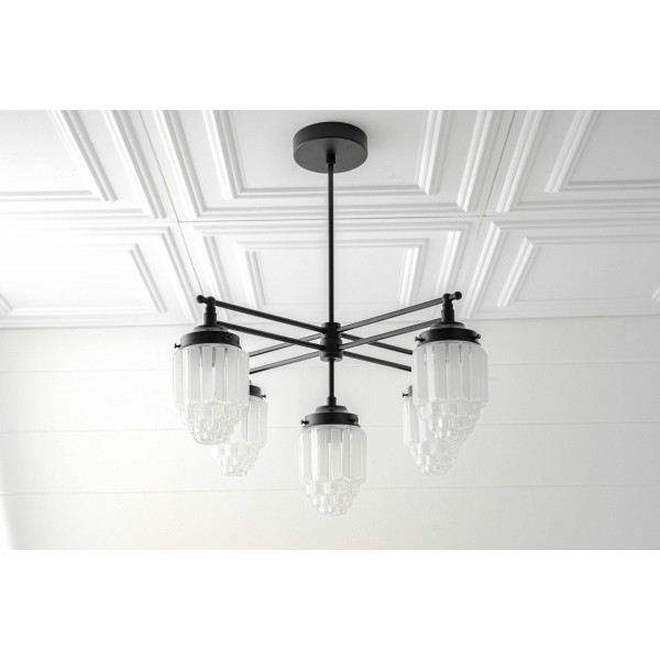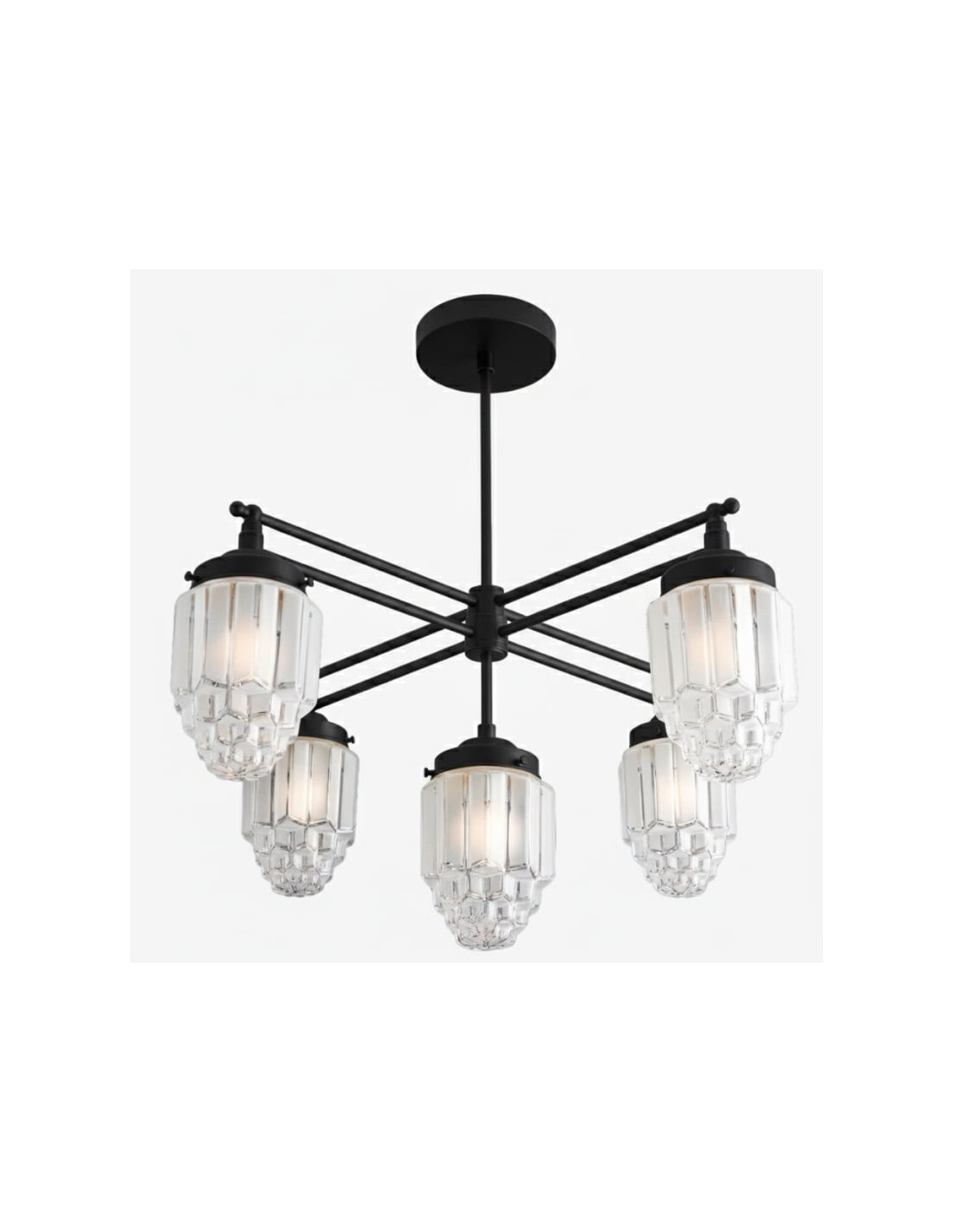 Geïnspireerd door art-decoarchitectuur combineert de Tierlux Glass-kroonluchter gematteerde glazen bollen met delicate, heldere glazen randen voor een stralende, kristalachtige gloed. Verkrijgbaar in messing, antiek messing of strak zwart, vormt deze kroonluchter een betoverend middelpunt voor elegante interieurs.