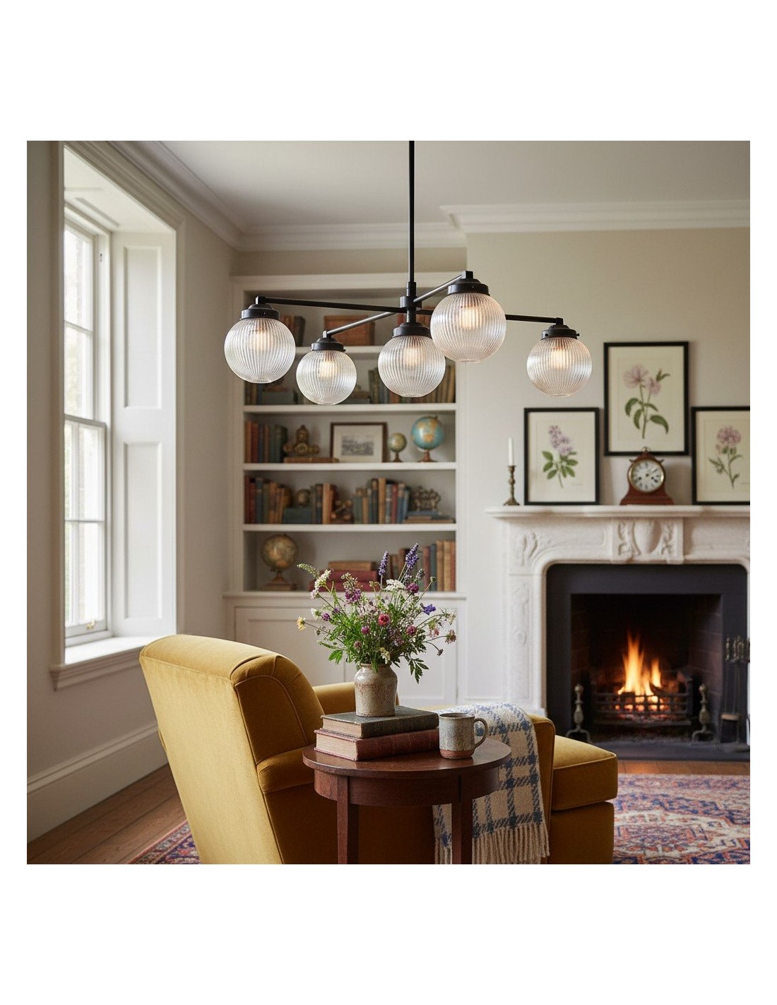 Glorica Glazen Kroonluchter met Gematteerde Glazen Bol - Moderne Verlichting van Messing voor Woonkamer KL1474