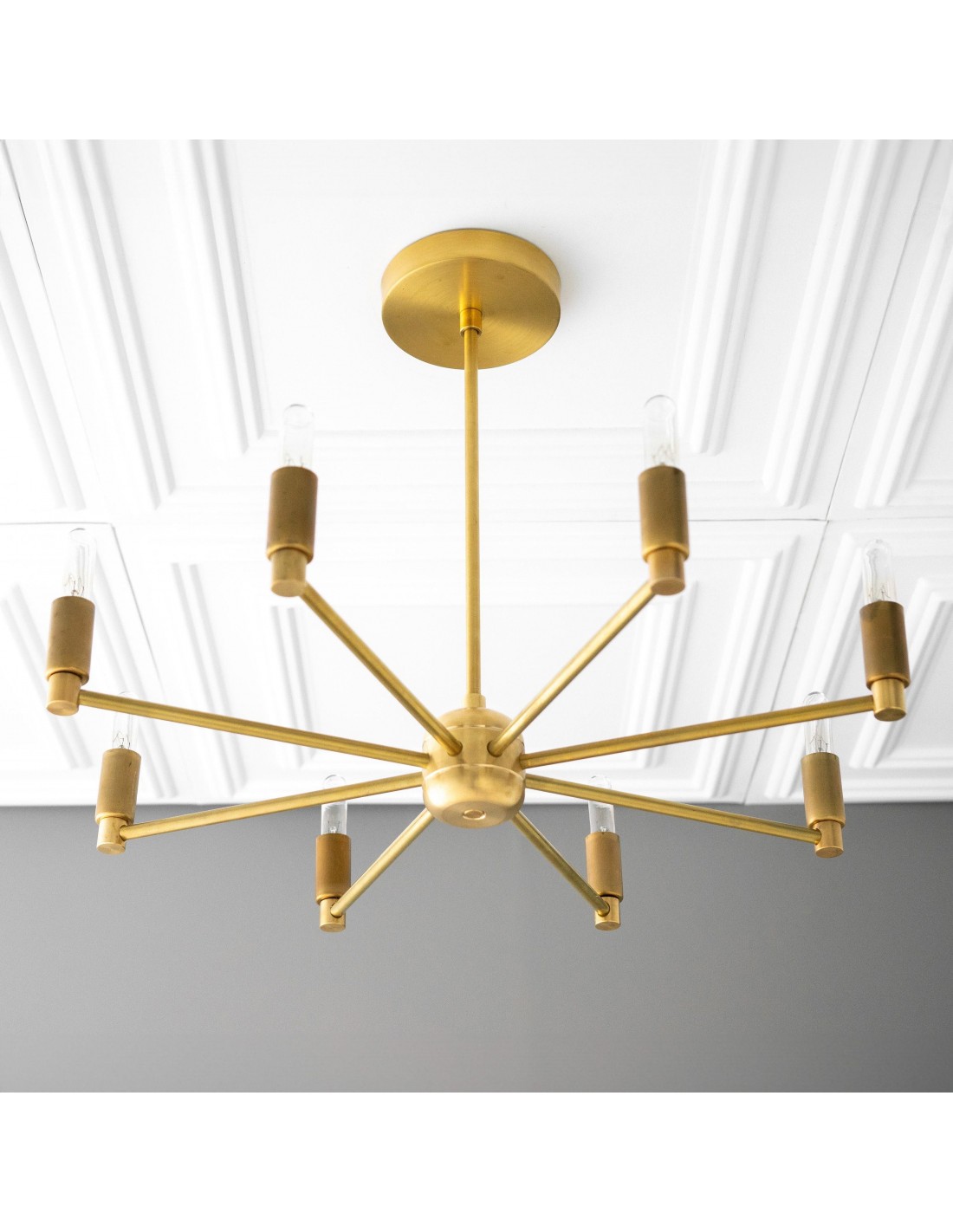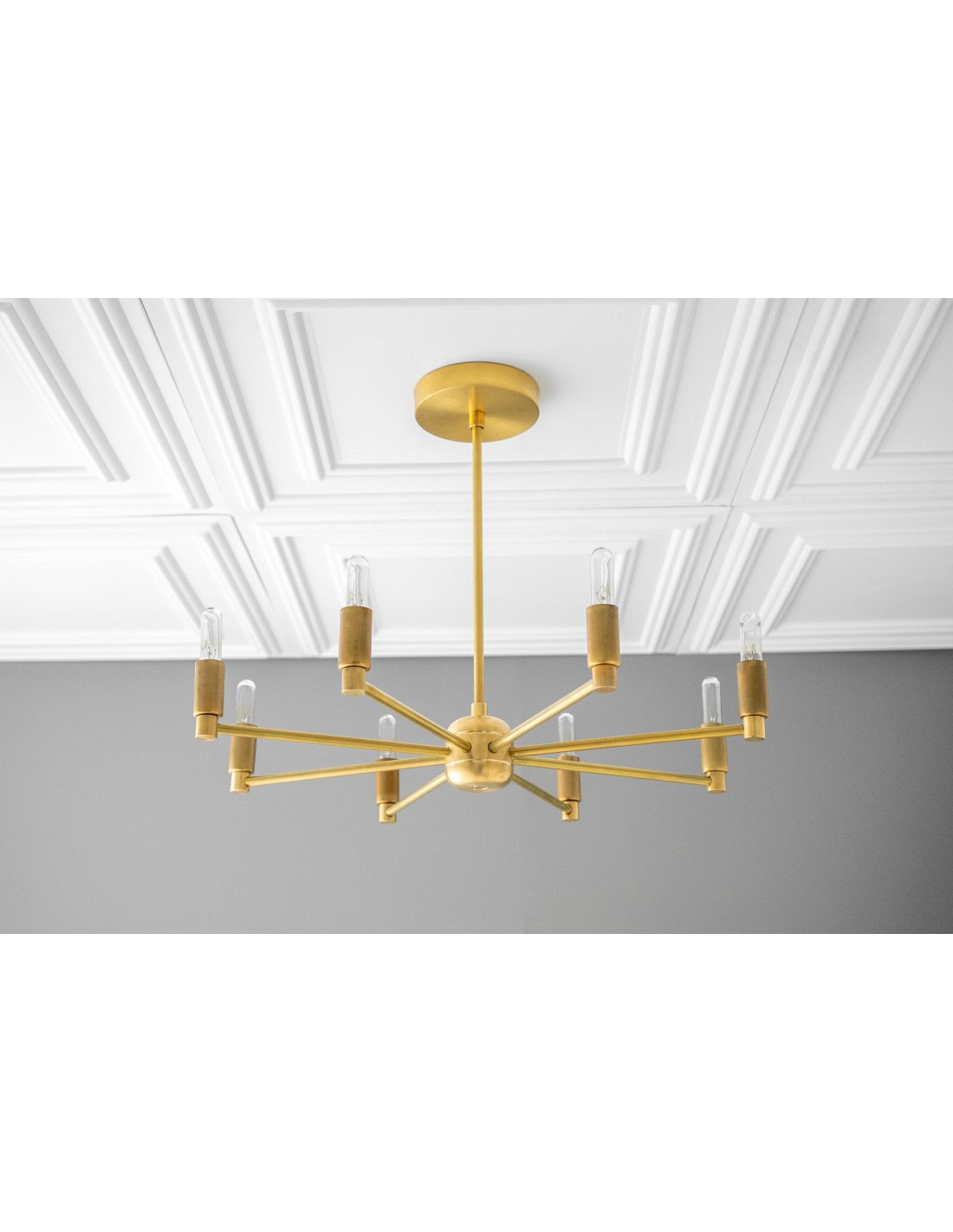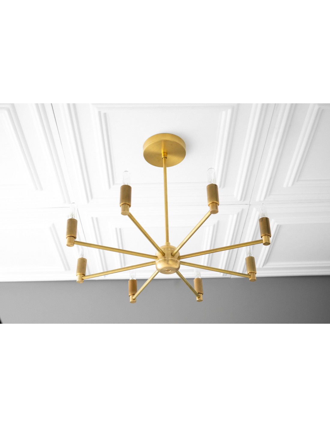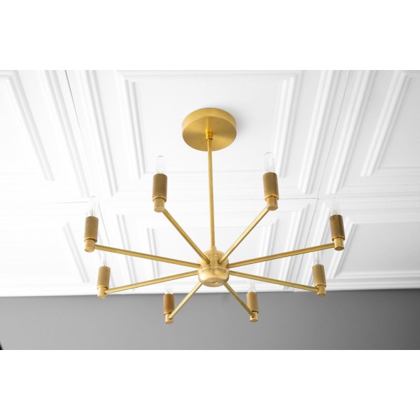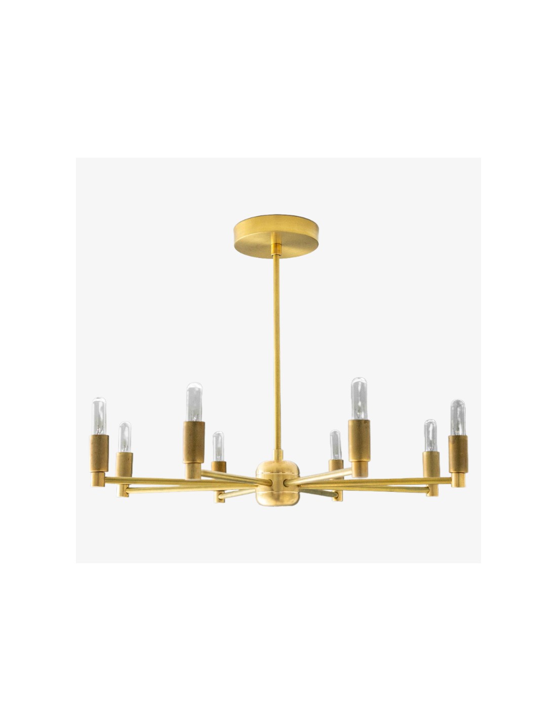 Verfraai uw ruimte met deze Mobilux Line kroonluchter met 8-armig design. De strakke geometrie en warme metallic afwerking geven eetkamers, woonkamers en entrees een mid-century tintje. Deze plafondlamp is perfect voor moderne woningen en voegt verfijning en een tijdloze uitstraling toe aan uw interieur.