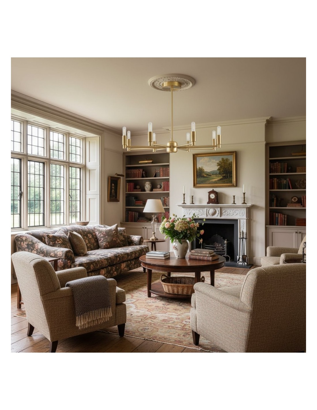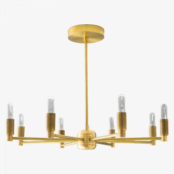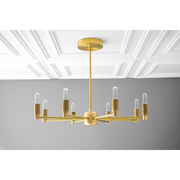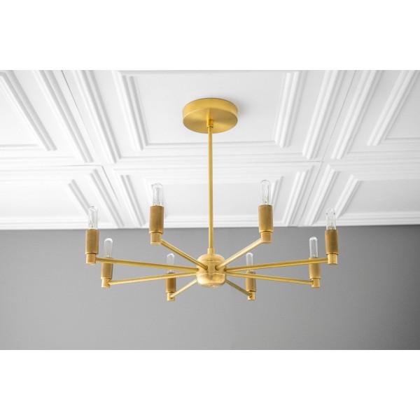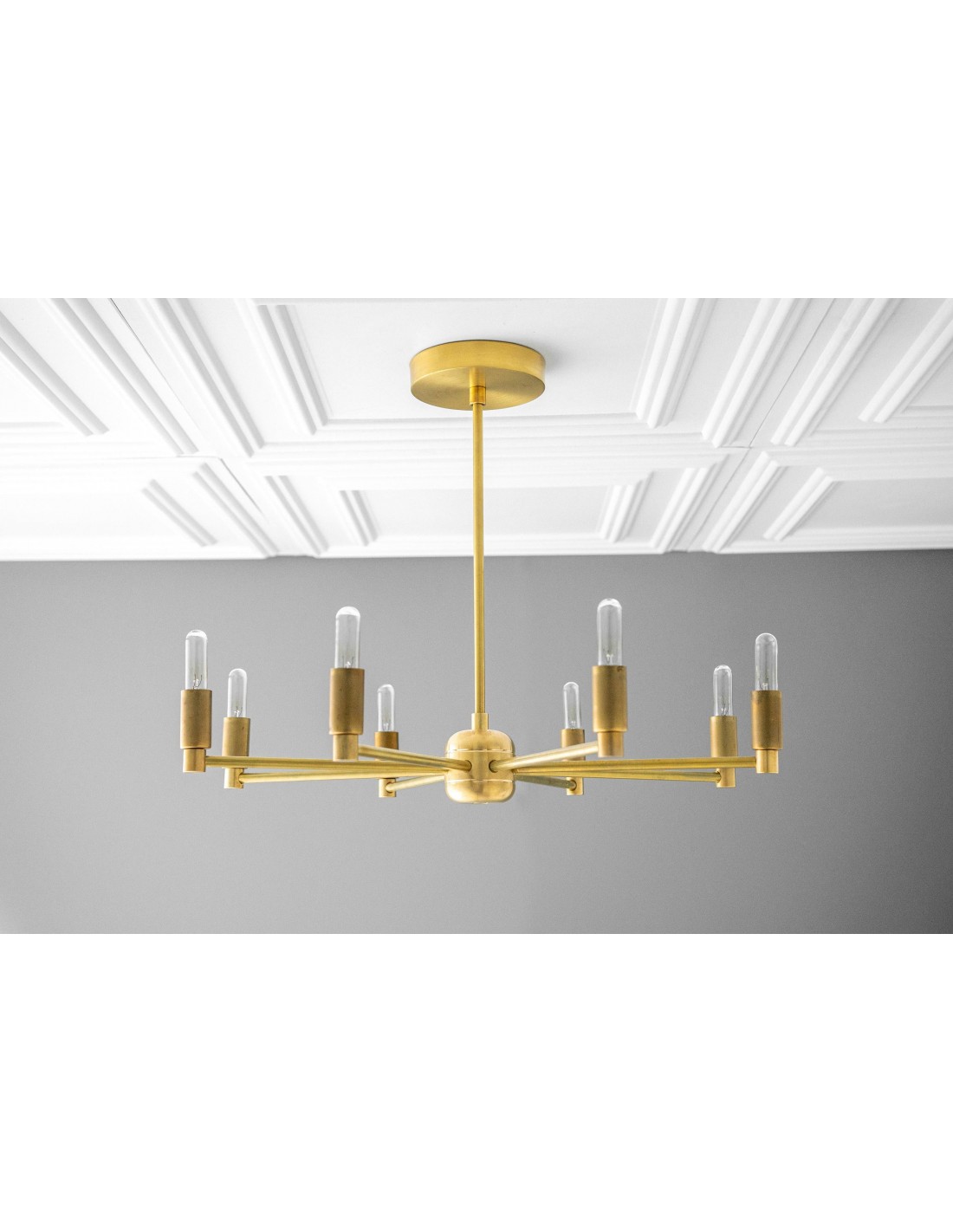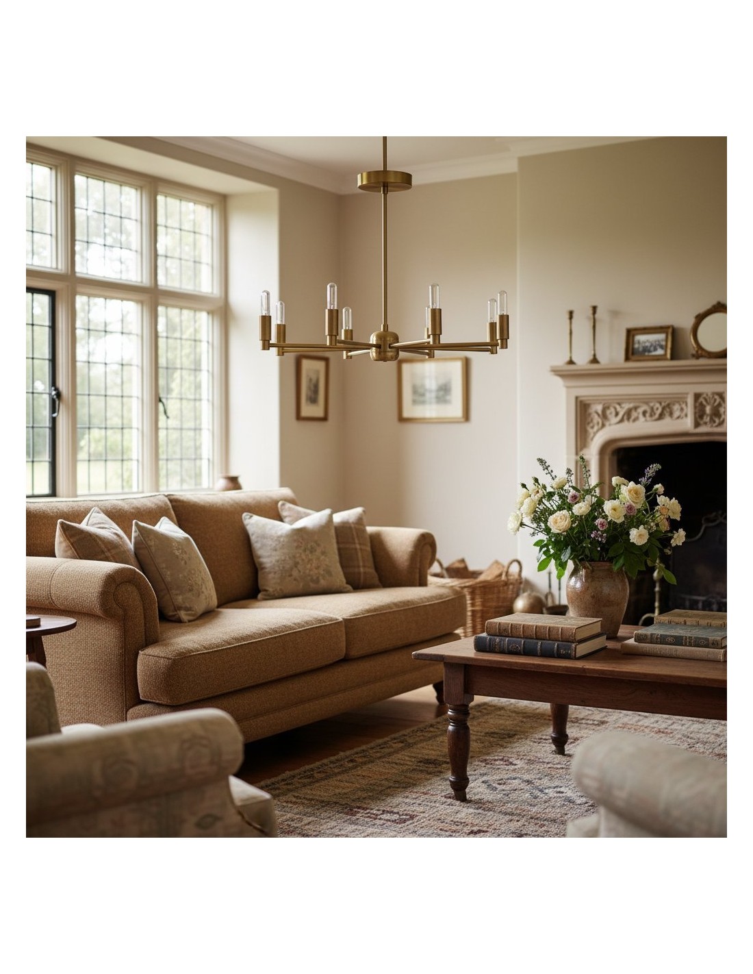Verfraai uw ruimte met deze Mobilux Line kroonluchter met 8-armig design. De strakke geometrie en warme metallic afwerking geven eetkamers, woonkamers en entrees een mid-century tintje. Deze plafondlamp is perfect voor moderne woningen en voegt verfijning en een tijdloze uitstraling toe aan uw interieur.