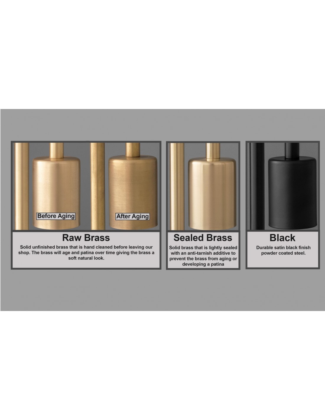 - Onze Raw Brass-afwerking bestaat uit massief, onafgewerkt messing dat met de hand wordt gereinigd voordat het onze werkplaats verlaat. Het messing zal na verloop van tijd verouderen en patineren, waardoor de afwerking een zachte, natuurlijke uitstraling krijgt.
