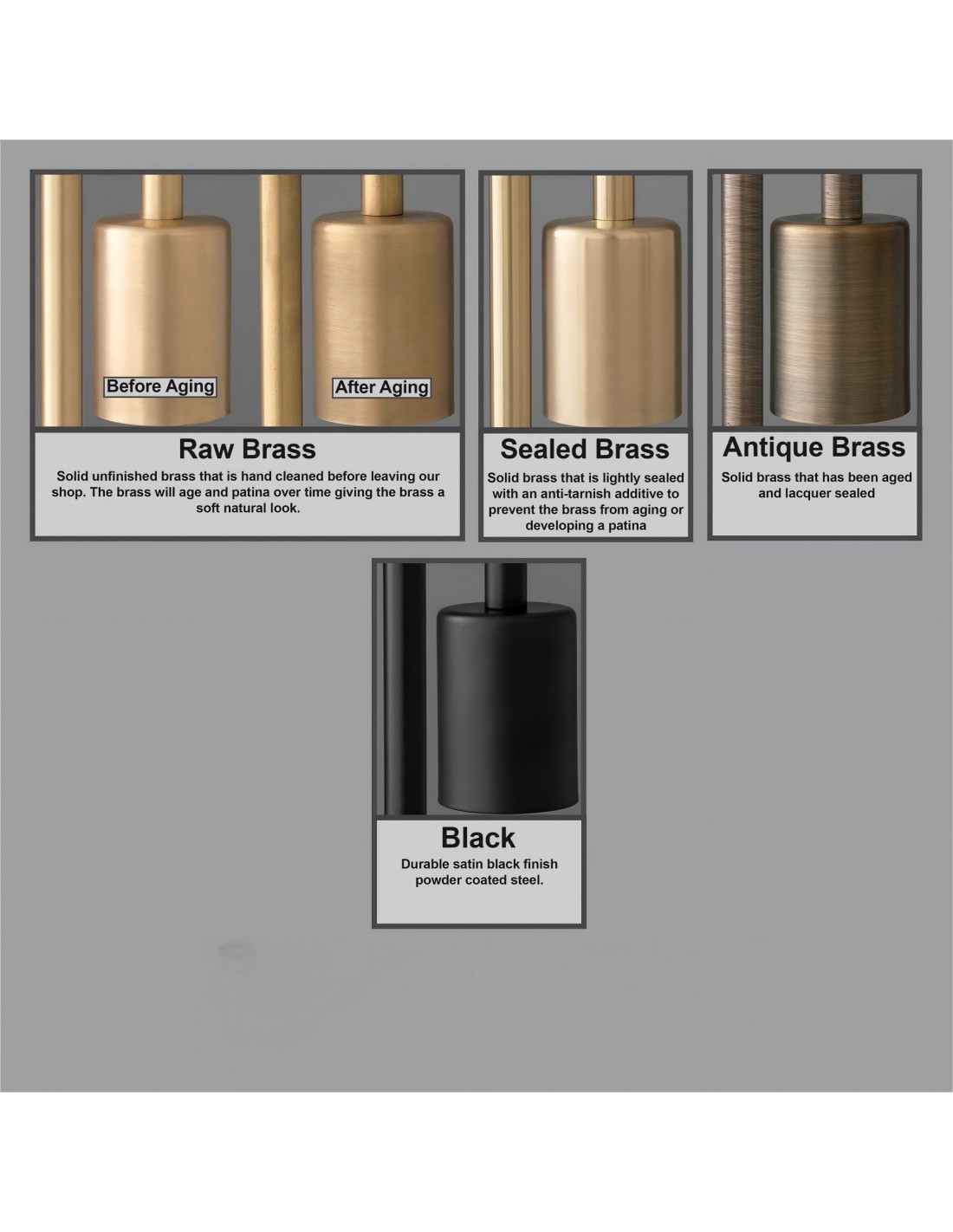 - Ruw messing - bestaat uit massief, onafgewerkt messing dat met de hand wordt gereinigd voordat het onze werkplaats verlaat. Het messing zal na verloop van tijd verouderen en patineren, waardoor de afwerking een zachte, natuurlijke uitstraling krijgt.