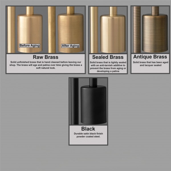 - Ruw messing - bestaat uit massief, onafgewerkt messing dat met de hand wordt gereinigd voordat het onze werkplaats verlaat. Het messing zal na verloop van tijd verouderen en patineren, waardoor de afwerking een zachte, natuurlijke uitstraling krijgt.