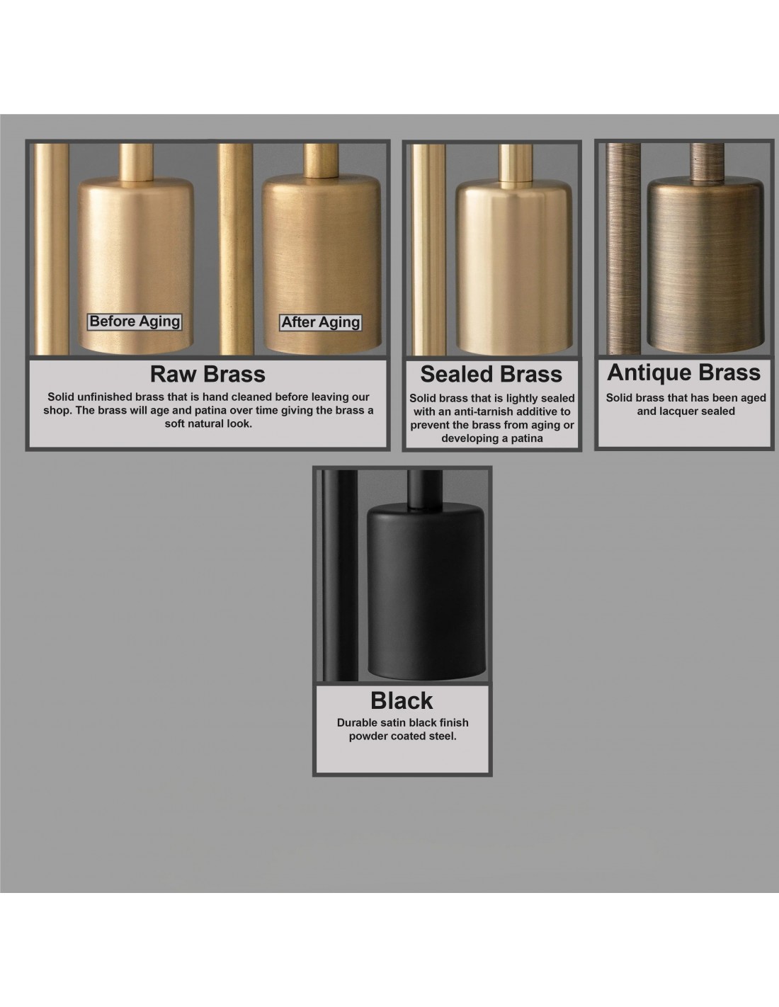 - Verzegeld messing - Massief messing dat licht is verzegeld met een anti-aanslagadditief om te voorkomen dat het messing veroudert of een patina ontwikkelt.