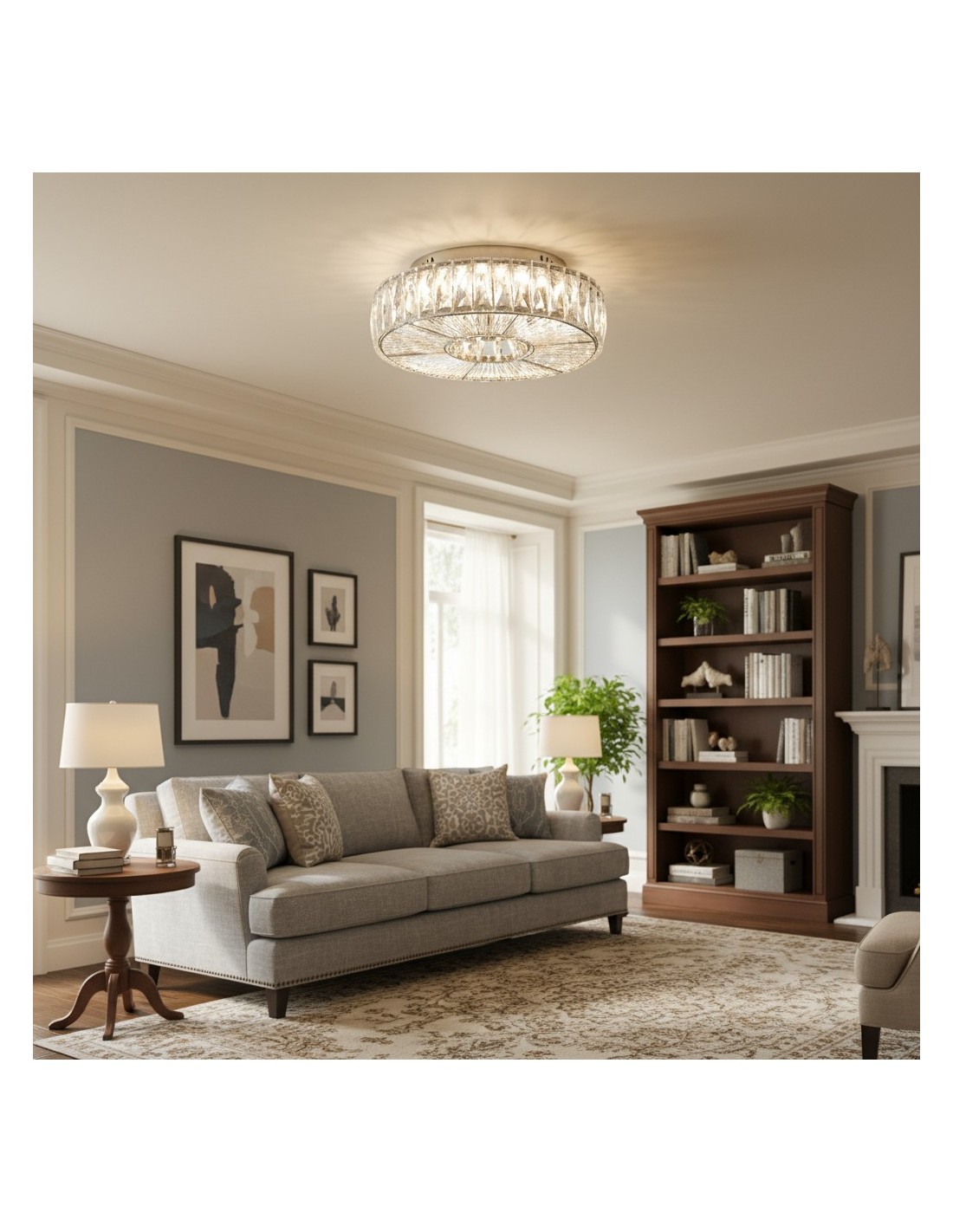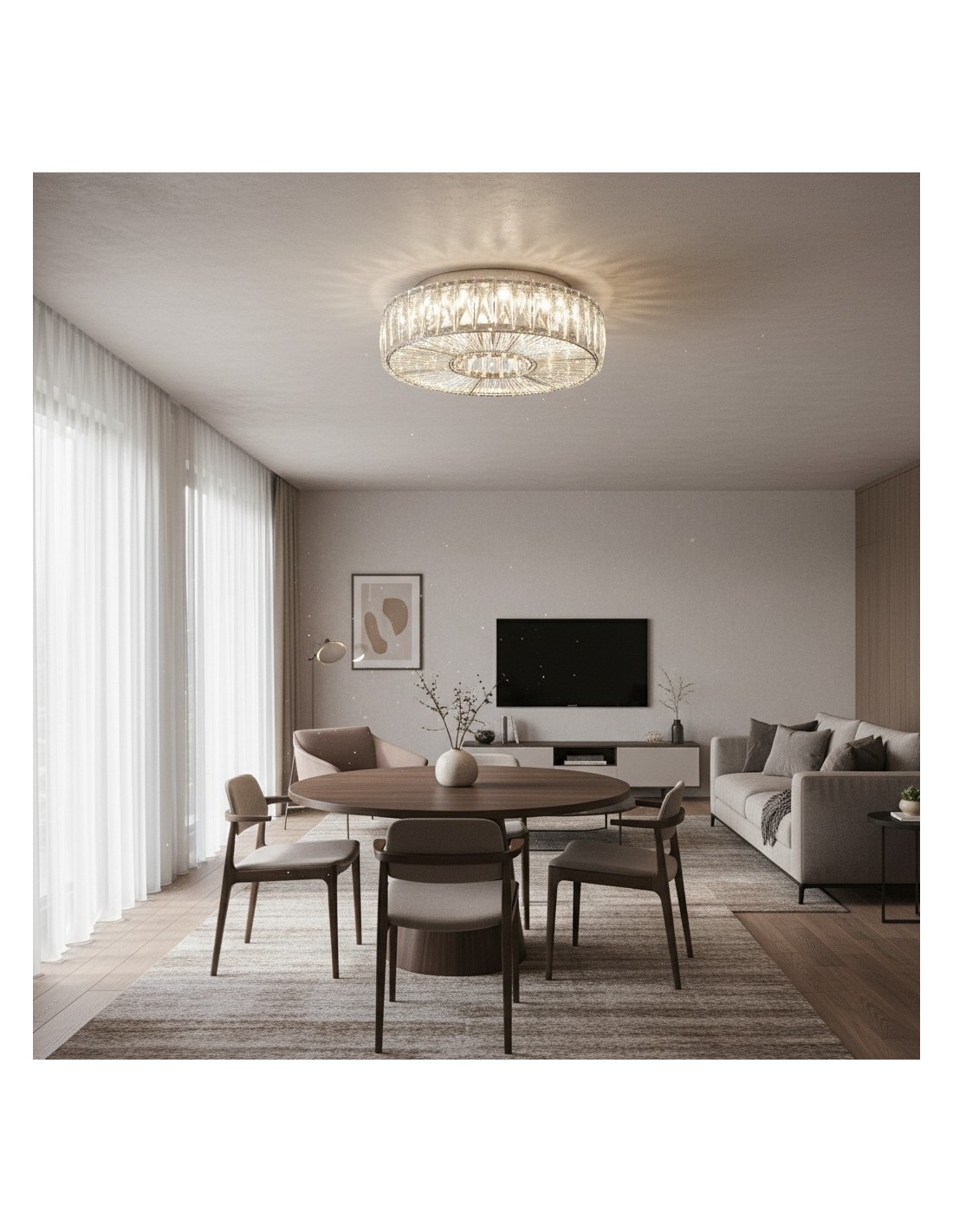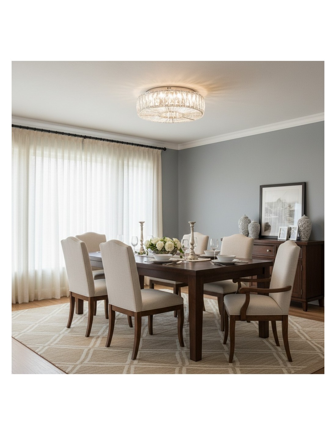 De Clereon Modern Glass Round Flush Ceiling Light heeft een strak en minimalistisch design, perfect voor eigentijdse interieurs. Met zijn ronde glazen kap en vlakke montage biedt hij een cleane, moderne uitstraling en tegelijkertijd voldoende licht. Ideaal voor woonkamers, eetkamers of hallen, deze lamp voegt een vleugje elegantie toe aan elke ruimte.