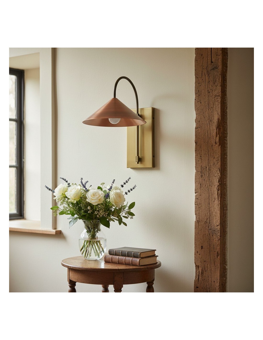 Conique Metalen Minimalistische Wandlamp - Sculpturale Messing Booglamp voor Moderne Interieurs KL1480