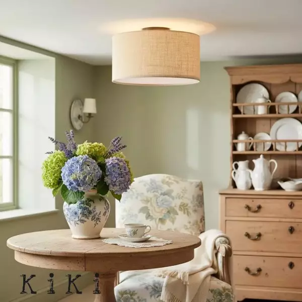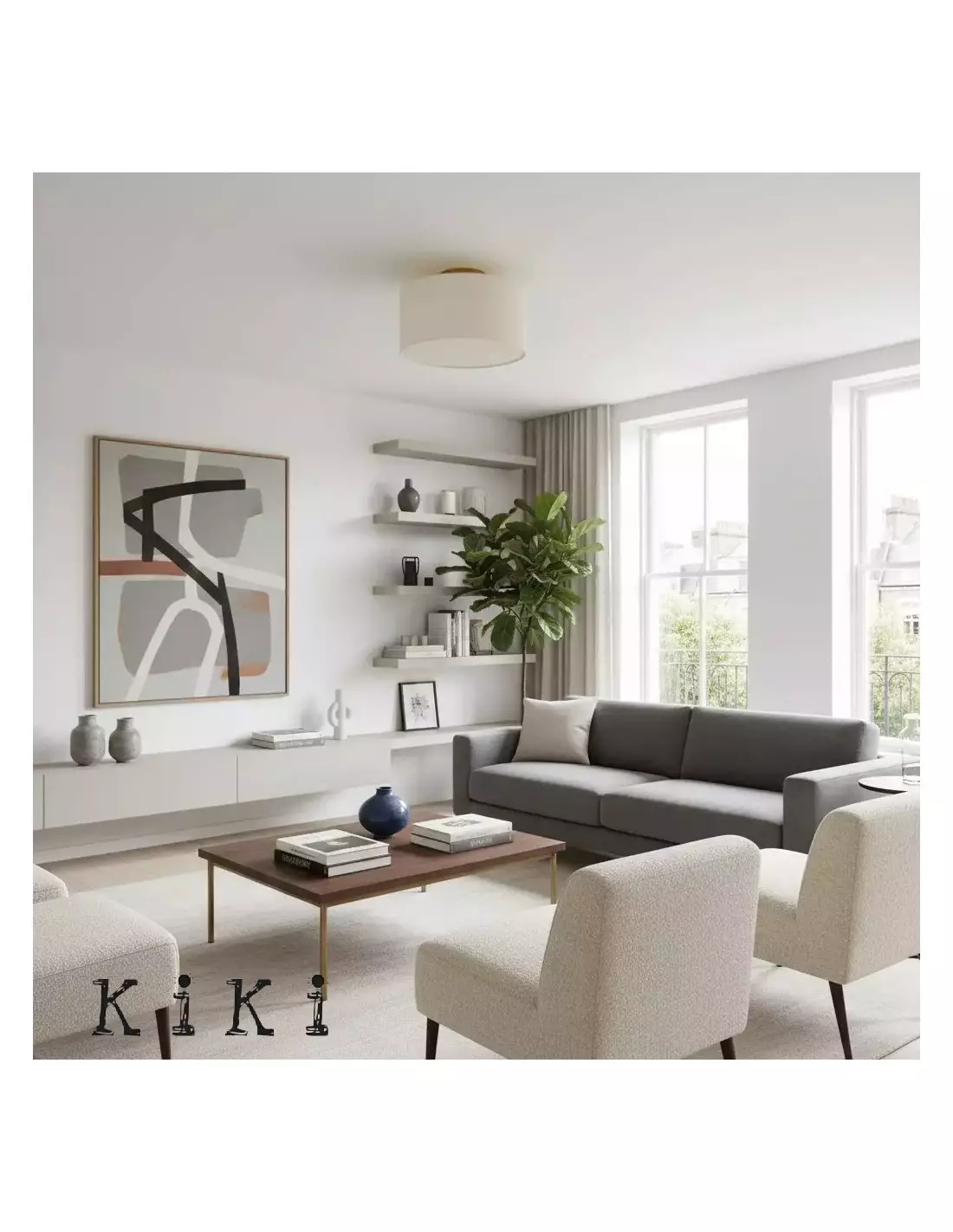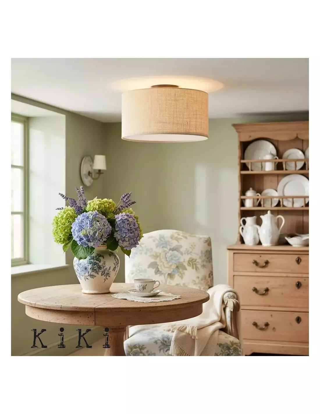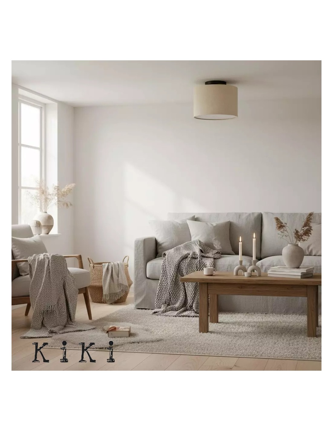Transformeer uw ruimte met deze elegante plafondlamp in drumvorm, die een verfijnde stijl combineert met functionele verlichting. Met een licht taps toelopende stoffen lampenkap en een slanke metalen kap, verspreidt de lamp een zachte, sfeervolle gloed die kamers met een laag plafond accentueert zonder de ruimte te domineren.
