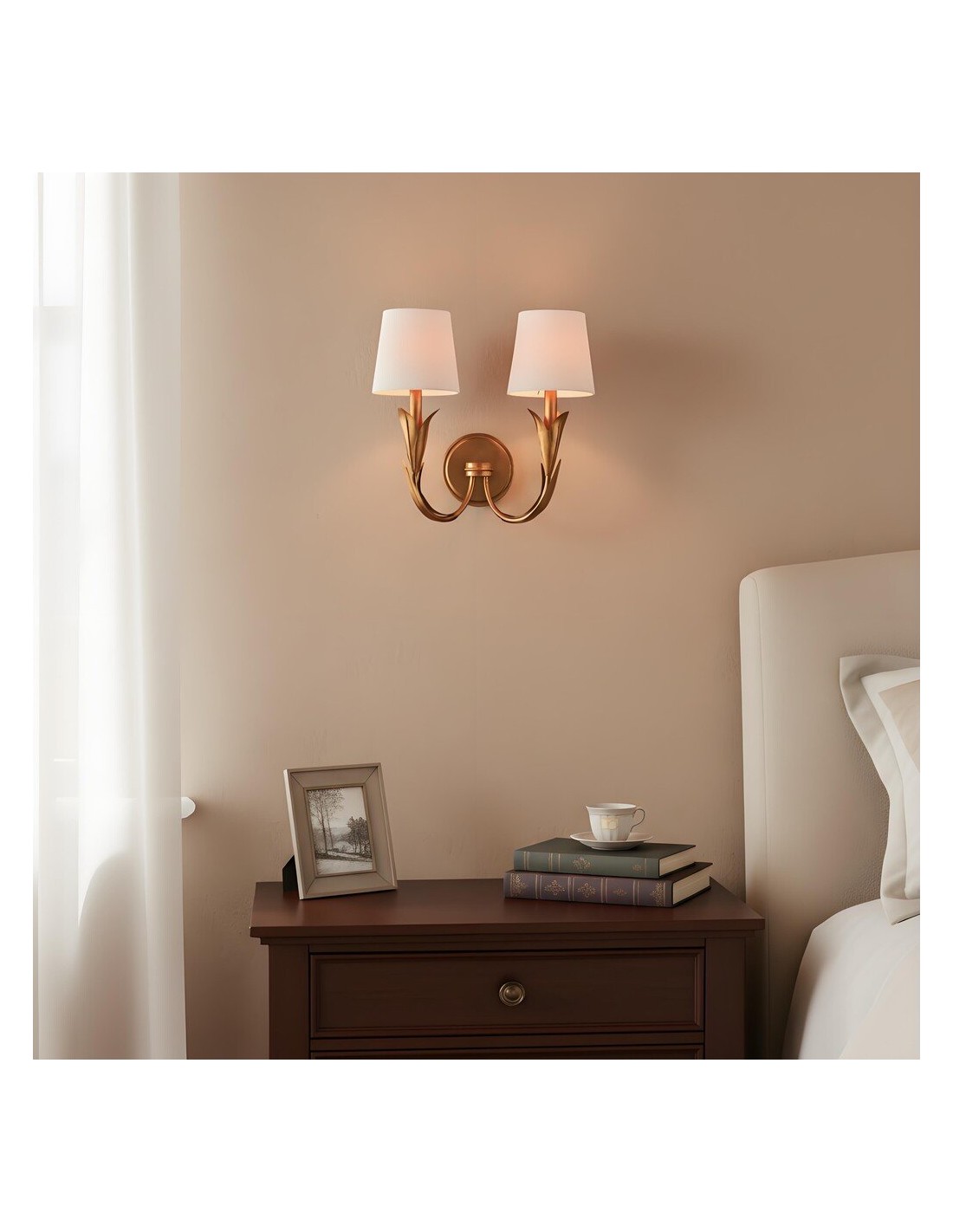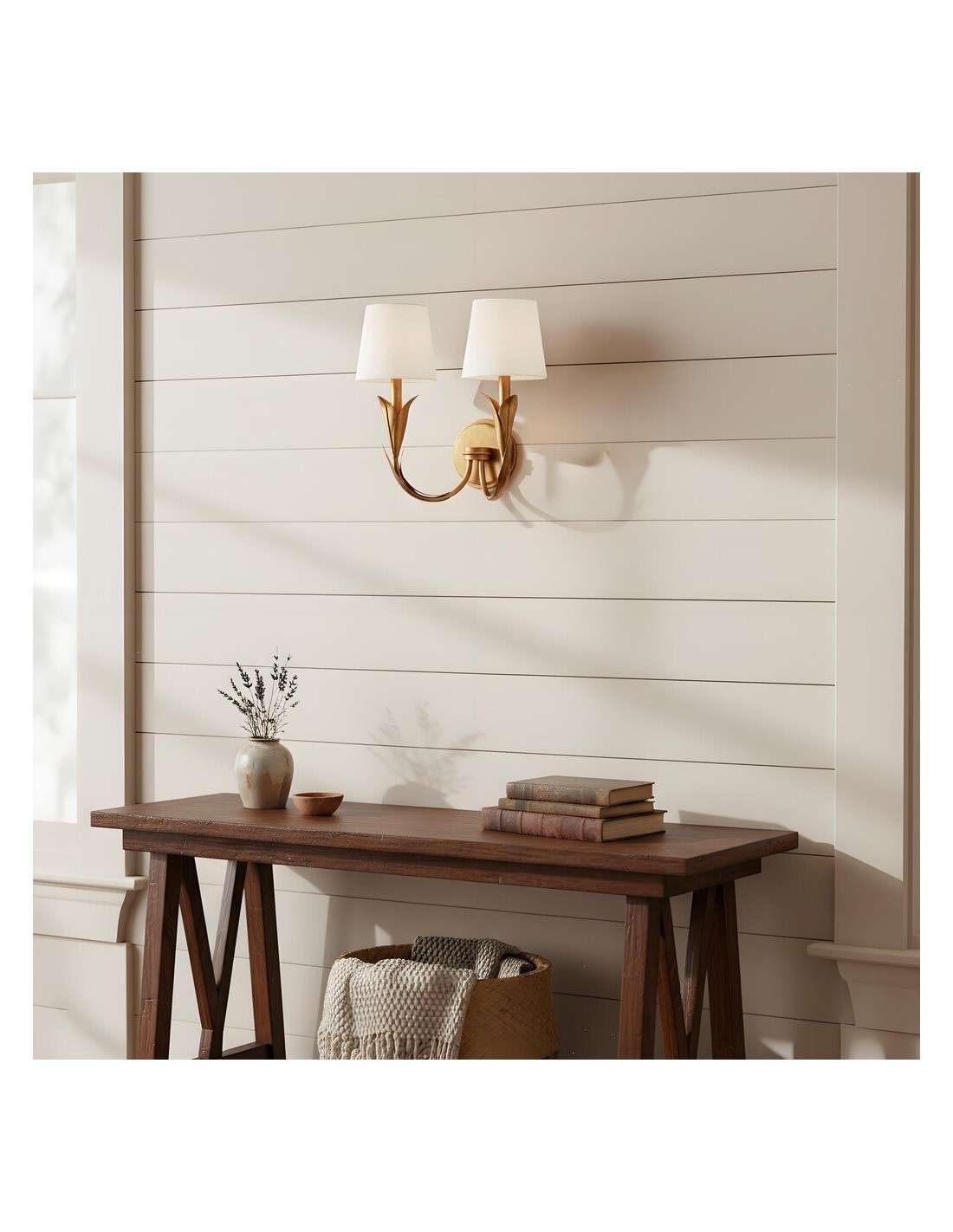 Deze wandlamp brengt botanische inspiratie in huis met zijn verfijnde ontwerp. Hij heeft een rietvormige arm en een eenvoudige, ronde voet. Deze wandlamp met twee koppen is bijzonder geschikt voor badkamers, woonkamers, slaapkamers of elke andere ruimte met een multifunctionele inrichting die waarde hecht aan harmonieuze verlichting en natuurlijke details.