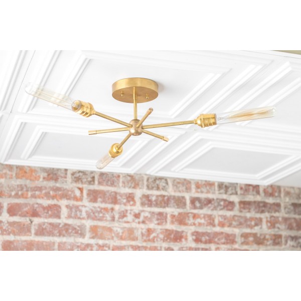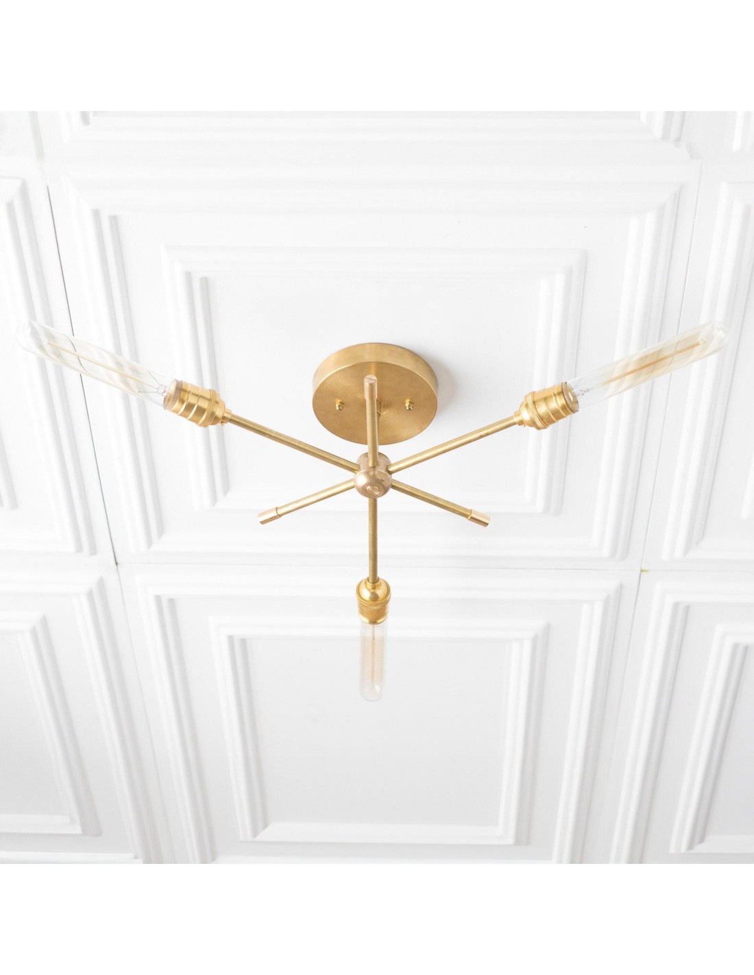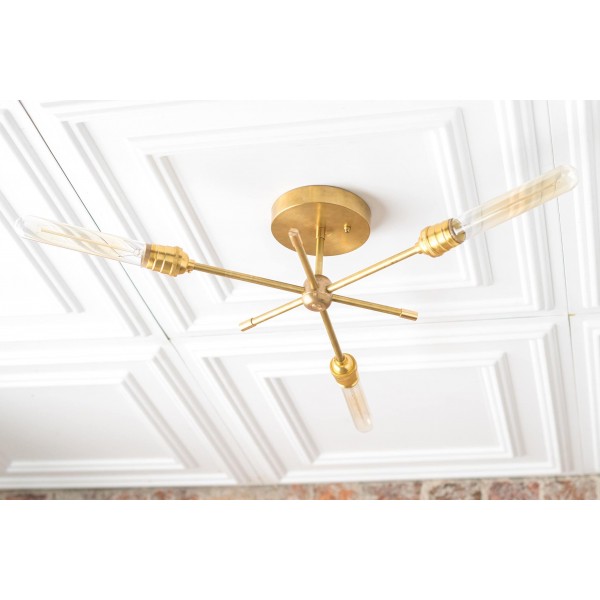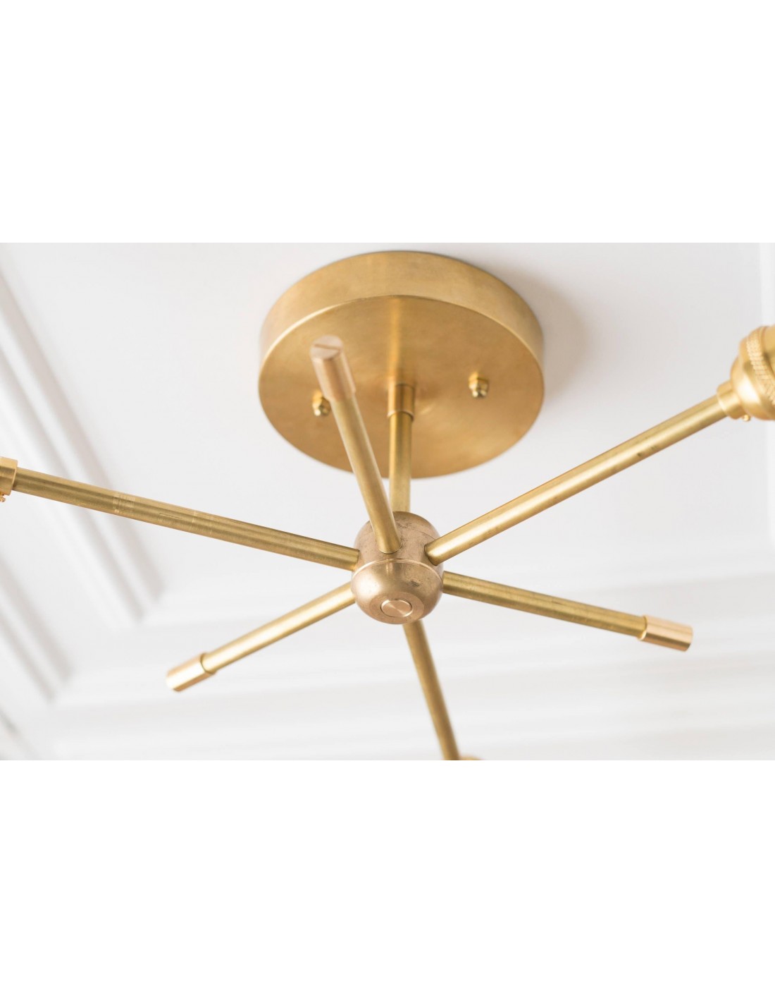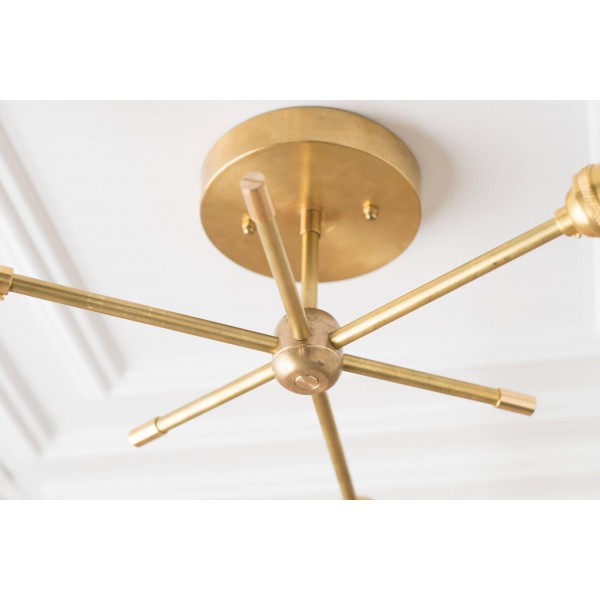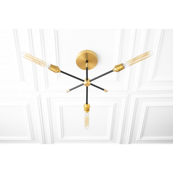 Deze moderne kroonluchter van messing combineert een strak design met industriële invloeden. De dynamische armen creëren een sculpturale look die eetkamers, hal en woonkamers verfraait. Deze plafondlamp is speciaal ontworpen voor moderne interieurs en biedt zowel praktische verlichting als een verfijnd design.