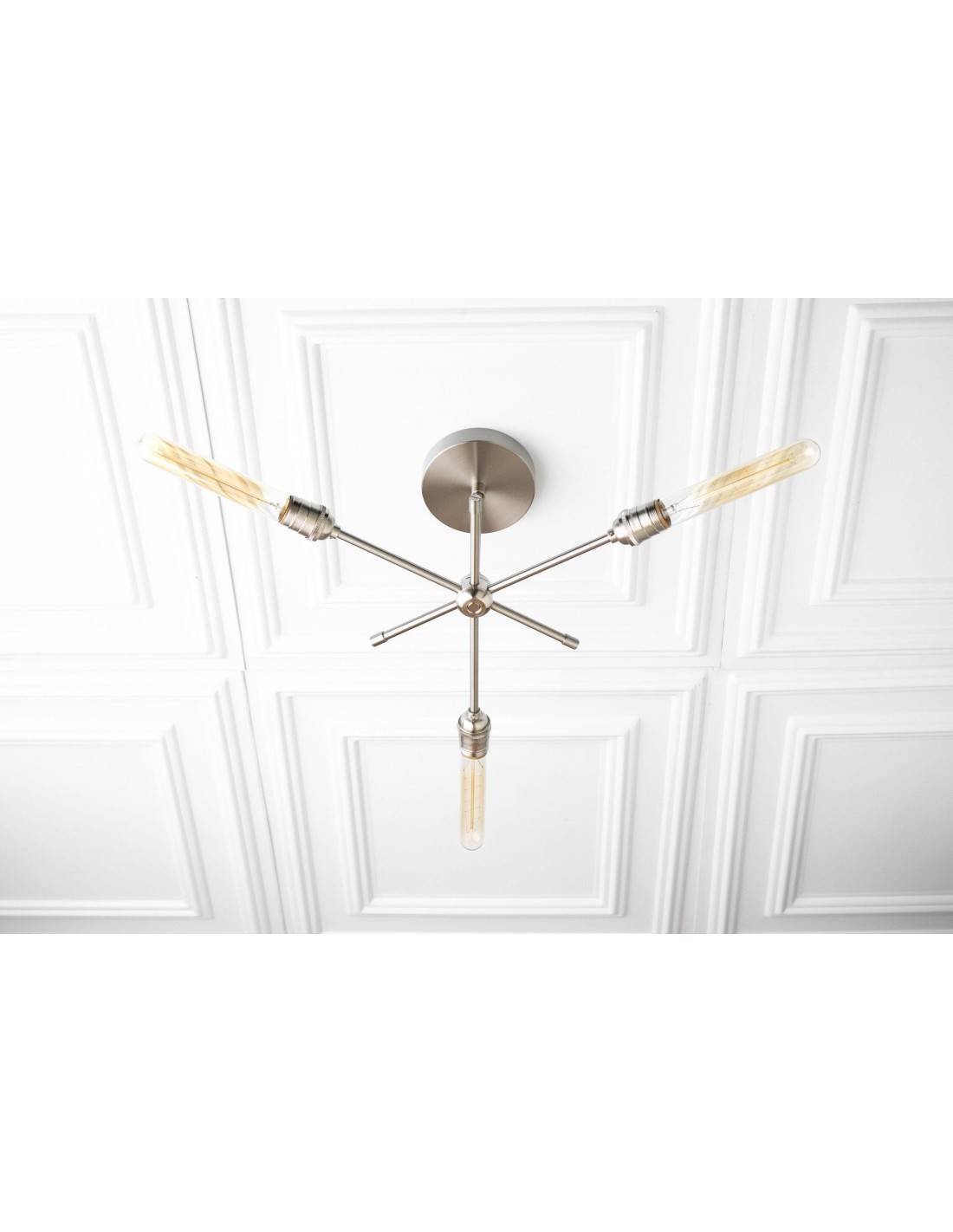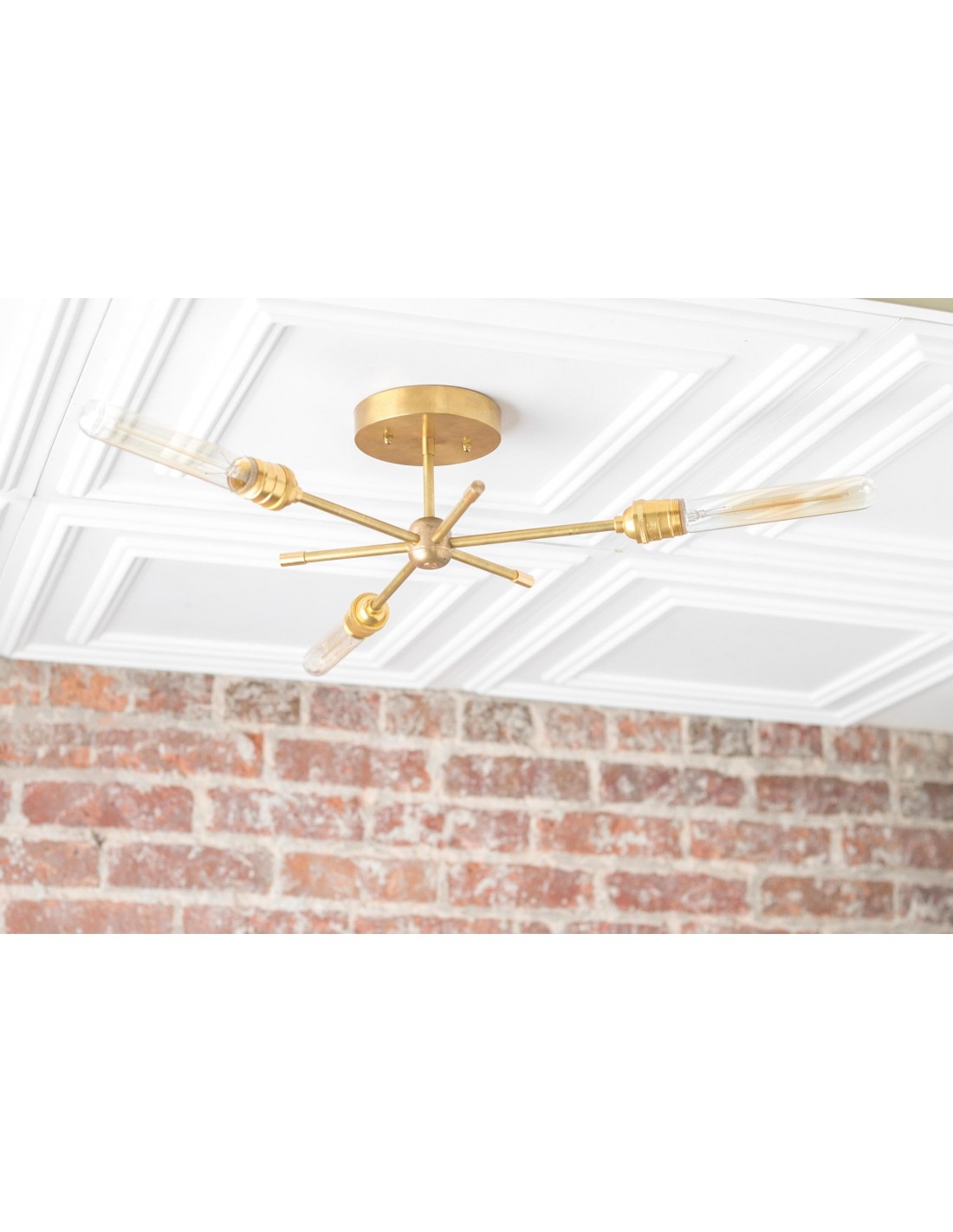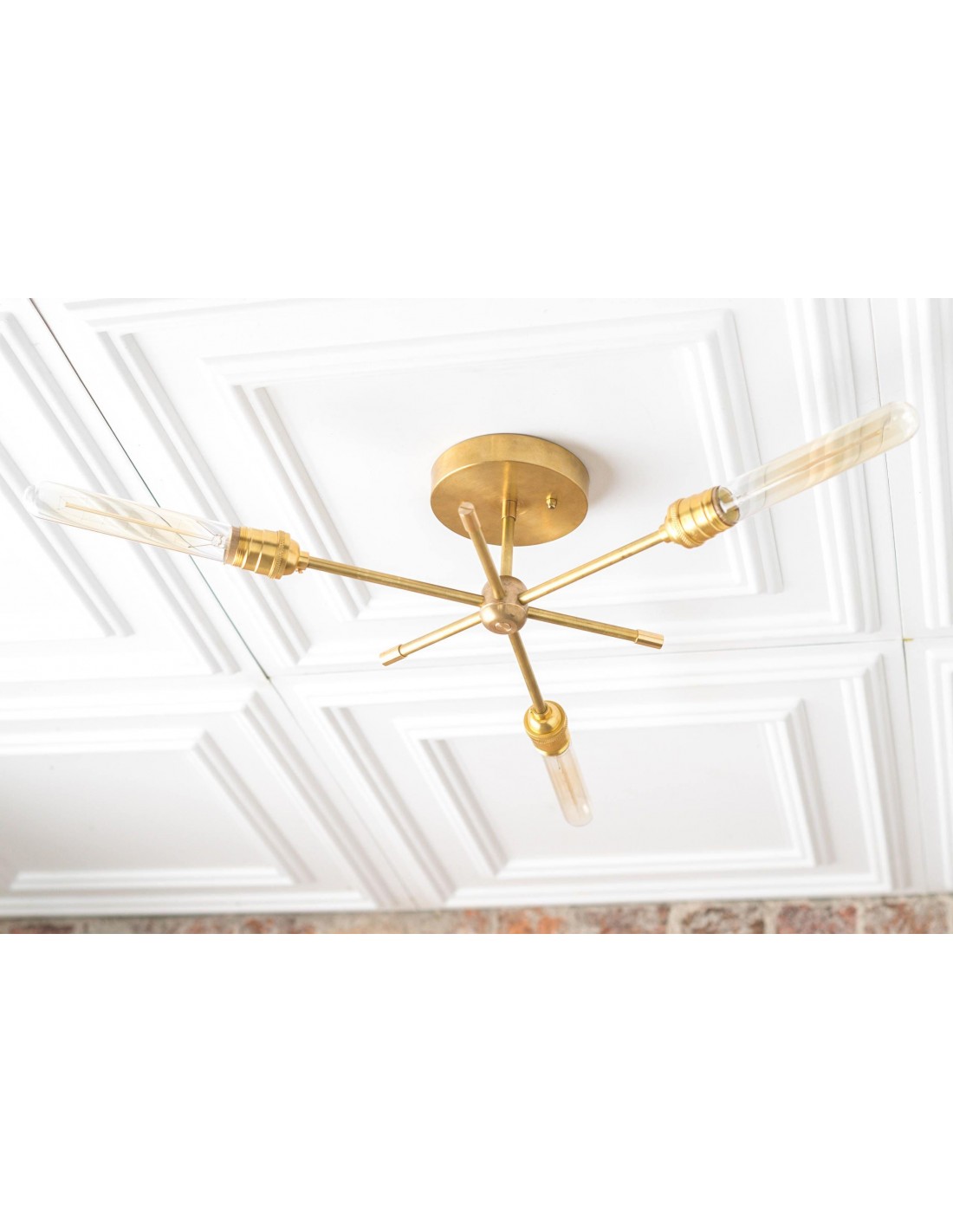 Deze moderne kroonluchter van messing combineert een strak design met industriële invloeden. De dynamische armen creëren een sculpturale look die eetkamers, hal en woonkamers verfraait. Deze plafondlamp is speciaal ontworpen voor moderne interieurs en biedt zowel praktische verlichting als een verfijnd design.